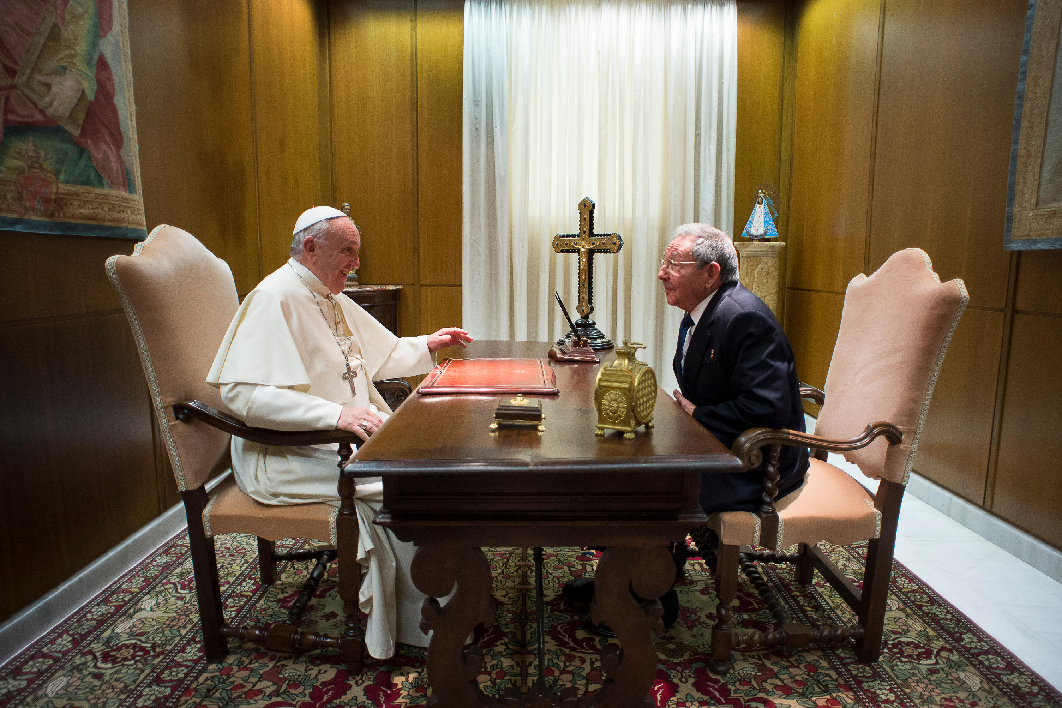 “Sono uscito da questo colloquio profondamente segnato dalla sua saggezza, dalla sua modestia e da tutte le sue virtù che conosciamo… Se il Papa continua a parlare così, un giorno ricomincerò a pregare e tornerò nella Chiesa cattolica, e non scherzo”. Così il presidente di Cuba Raùl Castro, ha commentato con i giornalisti l’incontro di 55 minuti avuto ieri mattina in Vaticano con Papa Francesco. Secondo gli ingessati media cubani il loro presidente avrebbe addirittura sussurrato all’orecchio del Papa: “Questa è la visita davvero più importante della mia vita”. Parole che vengono non da un uomo qualunque, ma da un signore che la rivoluzione (in armi) l’ha fatta davvero, più di 55 anni fa, anche se all’ombra del più famoso fratello, Fidel Castro. Parole che segnano forse un’altra “rivoluzione”, più sommessa, intima e nascosta: quella nell’anima. Dopo aver ringraziato il Papa per la mediazione con gli Stati Uniti che ha favorito lo storico accordo del 17 dicembre 2014 sul ristabilimento delle relazioni diplomatiche tra i due Paesi (con la promessa della fine dell’embargo), Castro ha anche affermato che assisterà a tutte le Messe di Papa Francesco, atteso e gradito ospite a Cuba nel mese di settembre, prima di volare negli Usa.