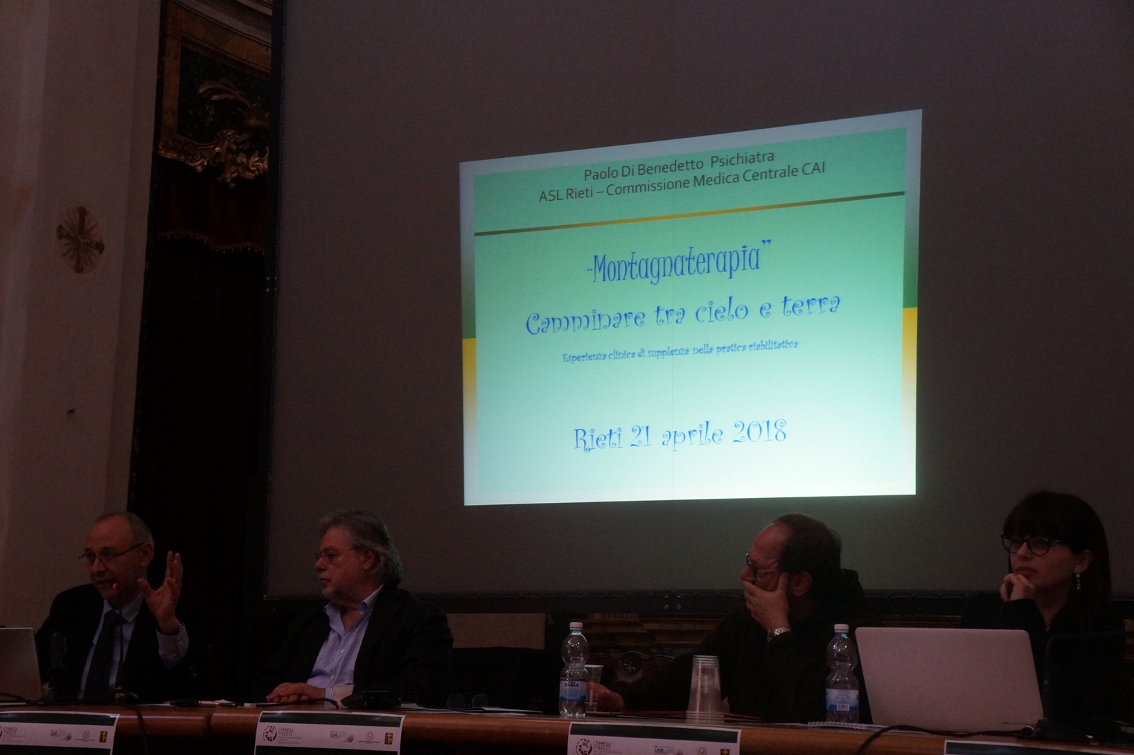 Il quarto intervento, affidato allo psichiatra Paolo Di Benedetto, è dedicato alla “Montagnaterapia” ovvero una «pratica di cammino guidato per pazienti psichiatrici».