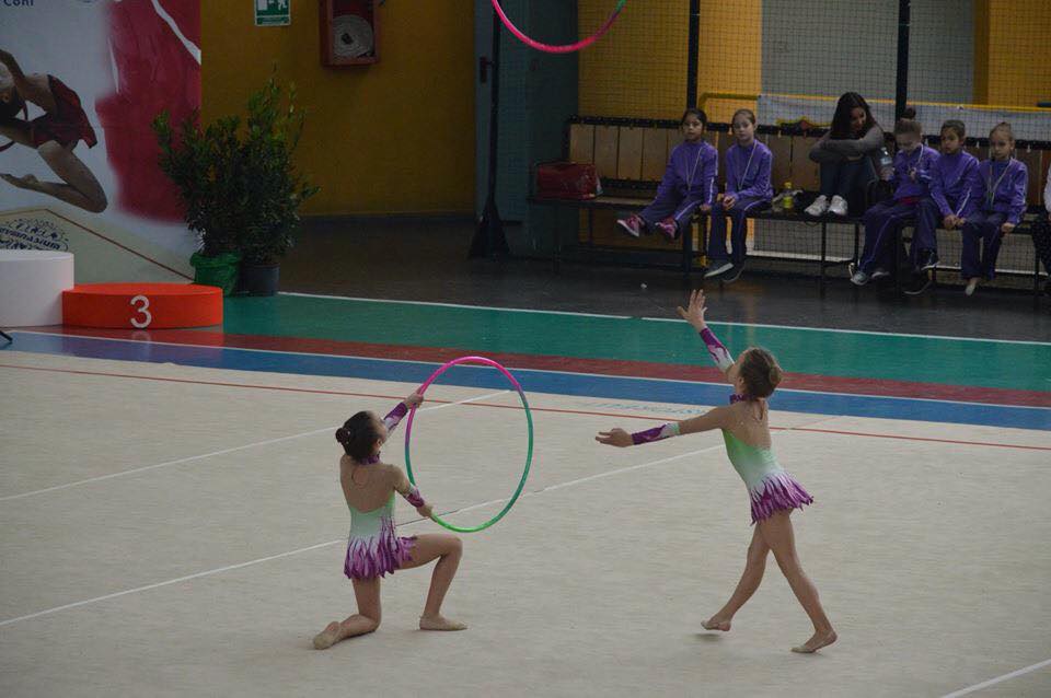 Si è svolta domenica 15 febbraio, a Colleferro, la prima prova del Trofeo Regionale di ginnastica ritmica del settore promozionale. La ASD Eos Ritmica Rieti ha partecipato a questo primo appuntamento con la squadra della preagonistica, con le giovani atlete di età compresa tra i 7 e 8 anni. Le ginnaste individualiste del 2006, nella categoria Allieve 1 fascia A, Silvia Beccarini e Giulia Leoncini hanno conquistato il gradino più alto del podio nelle specialità palla per Silvia e nella specialità cerchio per Giulia, portando a casa due splendide medaglie d’oro! Sempre nella categoria Allieve 1 fascia, Silvia Beccarini e Giulia Leoncini hanno presentato un esercizio spettacolare con i cerchi a coppia, ricco di ricercate collaborazioni e con scambi degli attrezzi molto difficili, che sicuramente ha fatto la differenza rispetto le altre coppie presenti in gara, infatti le due piccole reatine salgono di nuovo sul gradino più alto del podio, questa volta come la coppia d’oro!