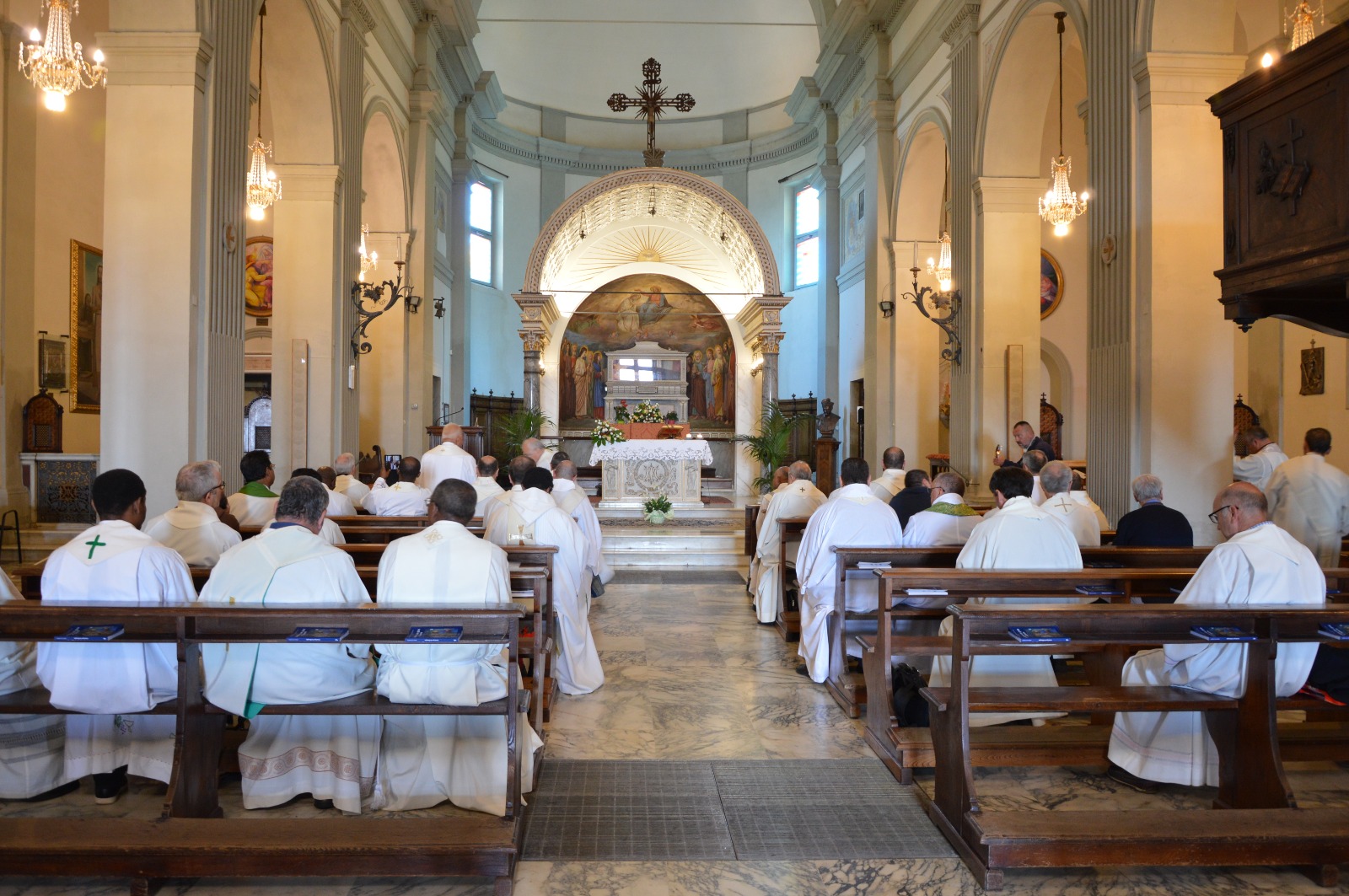 Arrivati sul posto, vescovo e sacerdoti hanno concelebrato l’Eucarestia nella memoria di San Lugi Gonzaga. Mons Pompili, nell’omelia, ha voluto sottolineare due aspetti che dovrebbero caratterizzare l’impegno pastorale. Prendendo spunto dalla prima lettura del giorno, che narra di Elia che trasmette il suo spirito profetico ad Eliseo, il vescovo ha sottolineato l’importanza di nutrire un autentico rapporto di comunione e di accoglienza reciproca tra le generazioni: anziani e giovani hanno la responsabilità di far emergere in maniera sempre più significativa la forza della comunione di cui la fede è capace, in vista di quel servizio pastorale che diventa efficace solo se è credibile. Un impegno di cui la nostra diocesi ha più che mai bisogno, soprattutto da parte dei preti e dei diaconi.