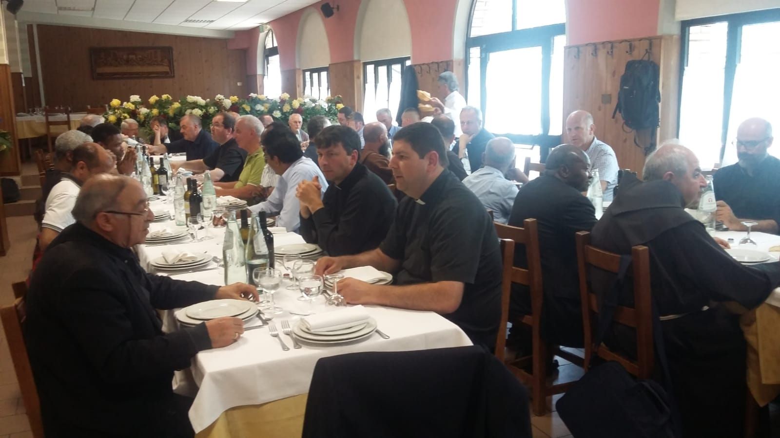 La visita al santuario si è conclusa con un ottimo pranzo nel ristorante adiacente. Essendo san Luigi sono stati festeggiati i don Luigi della diocesi, presenti e assenti. Per l’occasione il pro-vicario don Luigi Aquilini ha proposto un suo componimento poetico molto bello in onore del santo.