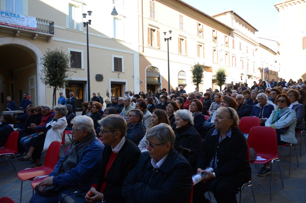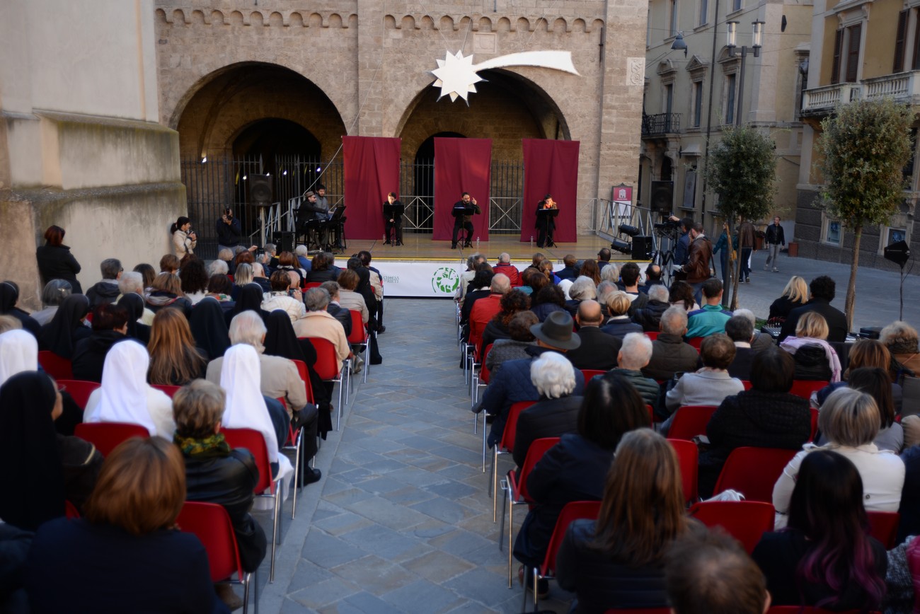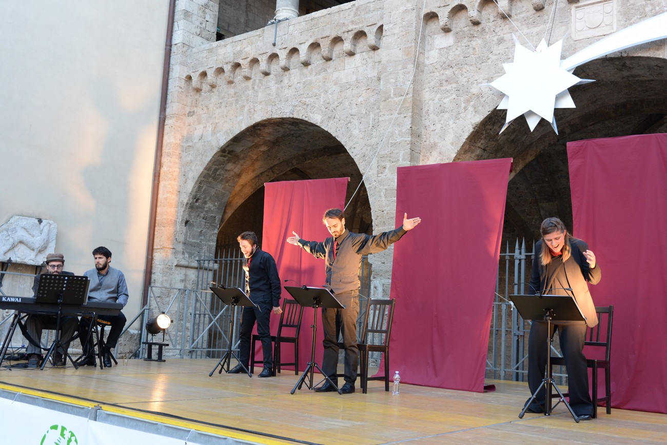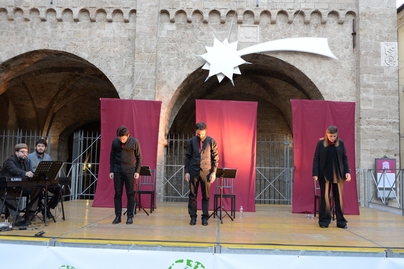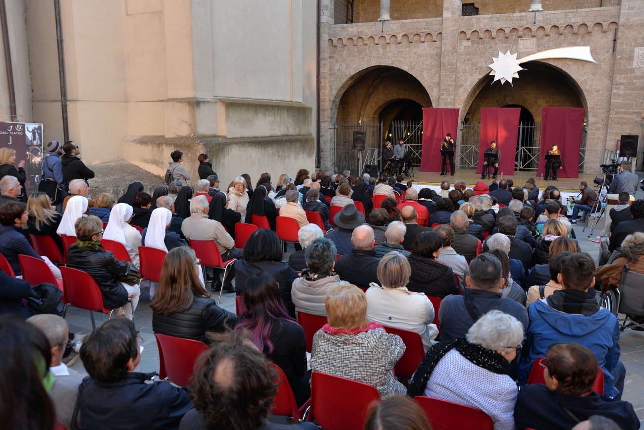 Due ore di Vangelo “in diretta” in piazza Mariano Vittori. Sono stati gli attori del Gruppo Jobel, sul palco innalzato accanto al palazzo papale, a dare voce ai versetti di Marco. Un modo suggestivo per godersi il più antico dei Vangeli sinottici dal primo all’ultimo capitolo.