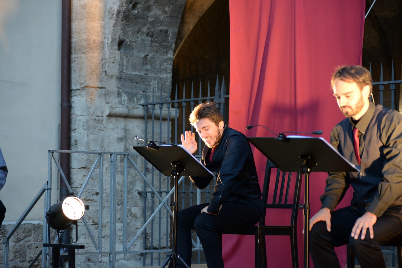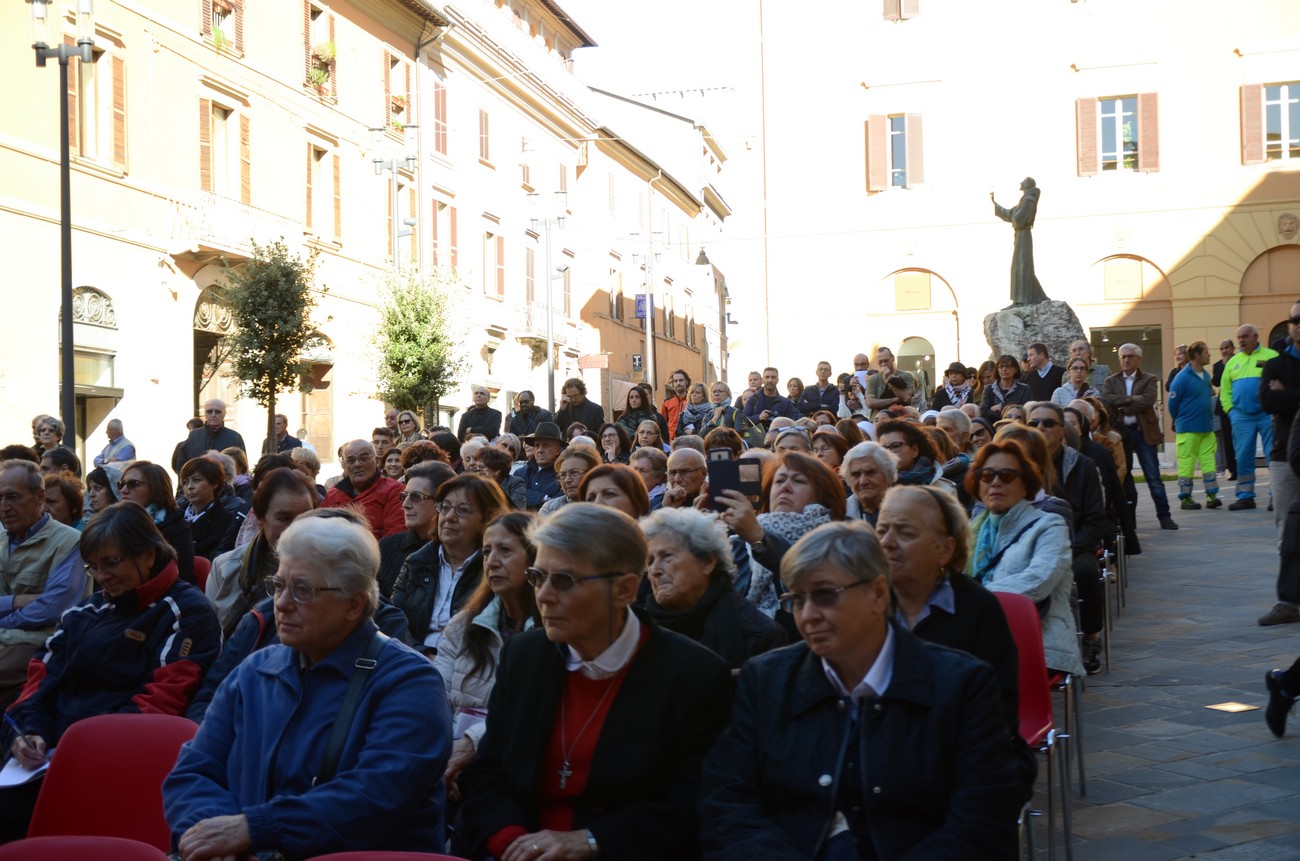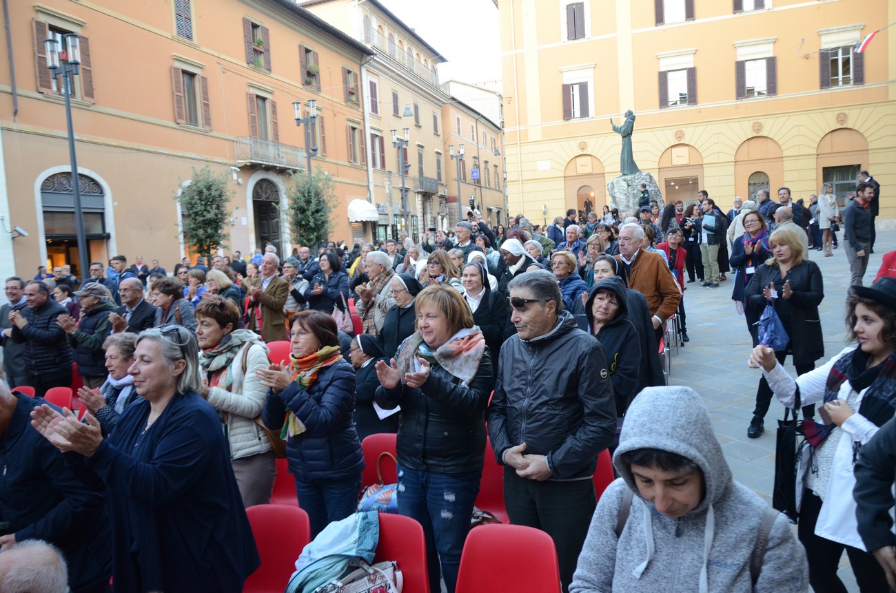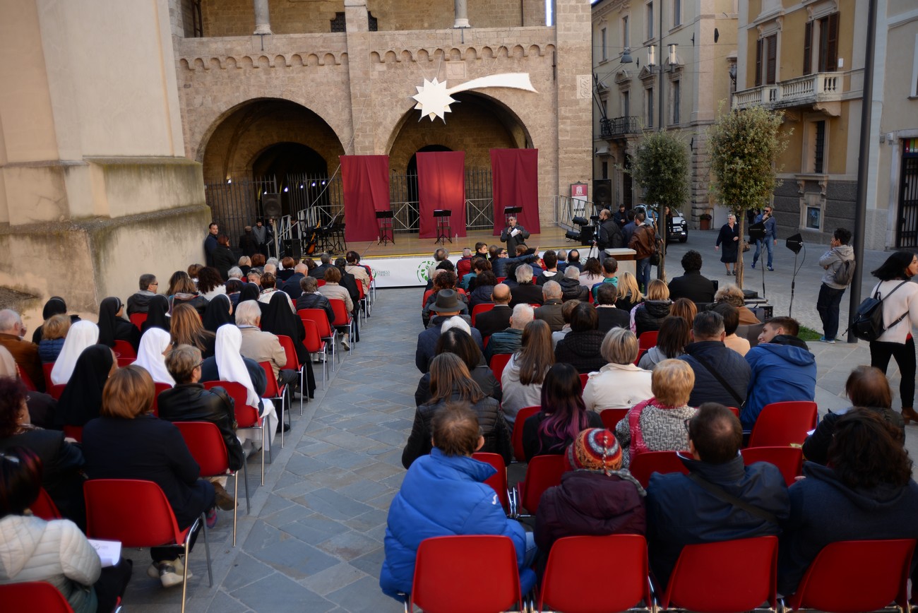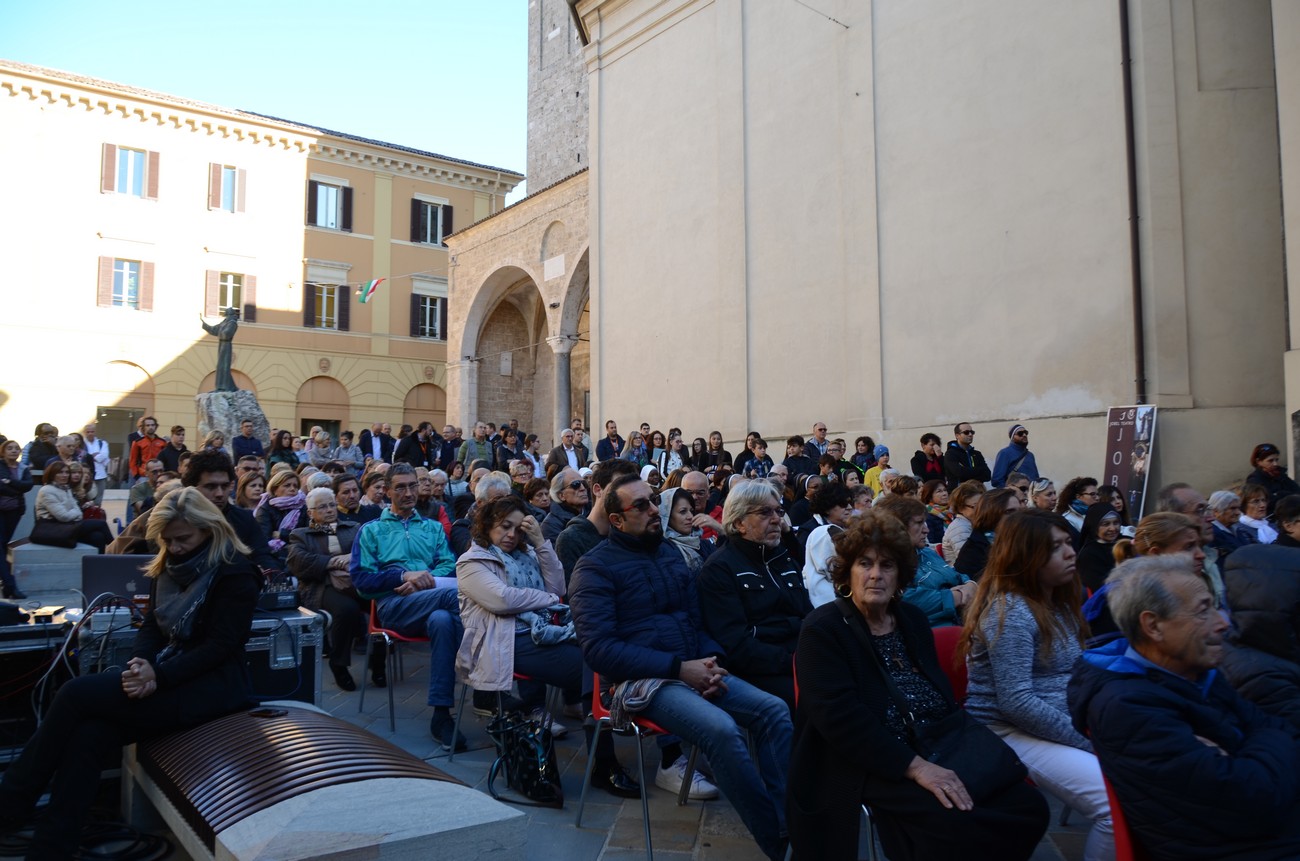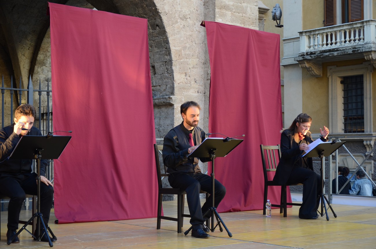 Due ore di Vangelo “in diretta” in piazza Mariano Vittori. Sono stati gli attori del Gruppo Jobel, sul palco innalzato accanto al palazzo papale, a dare voce ai versetti di Marco. Un modo suggestivo per godersi il più antico dei Vangeli sinottici dal primo all’ultimo capitolo.