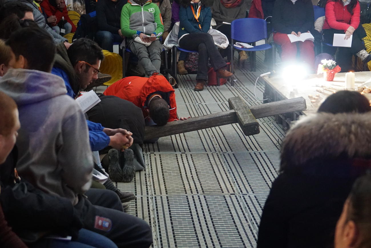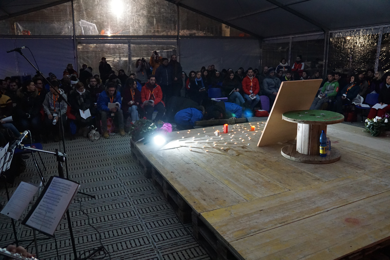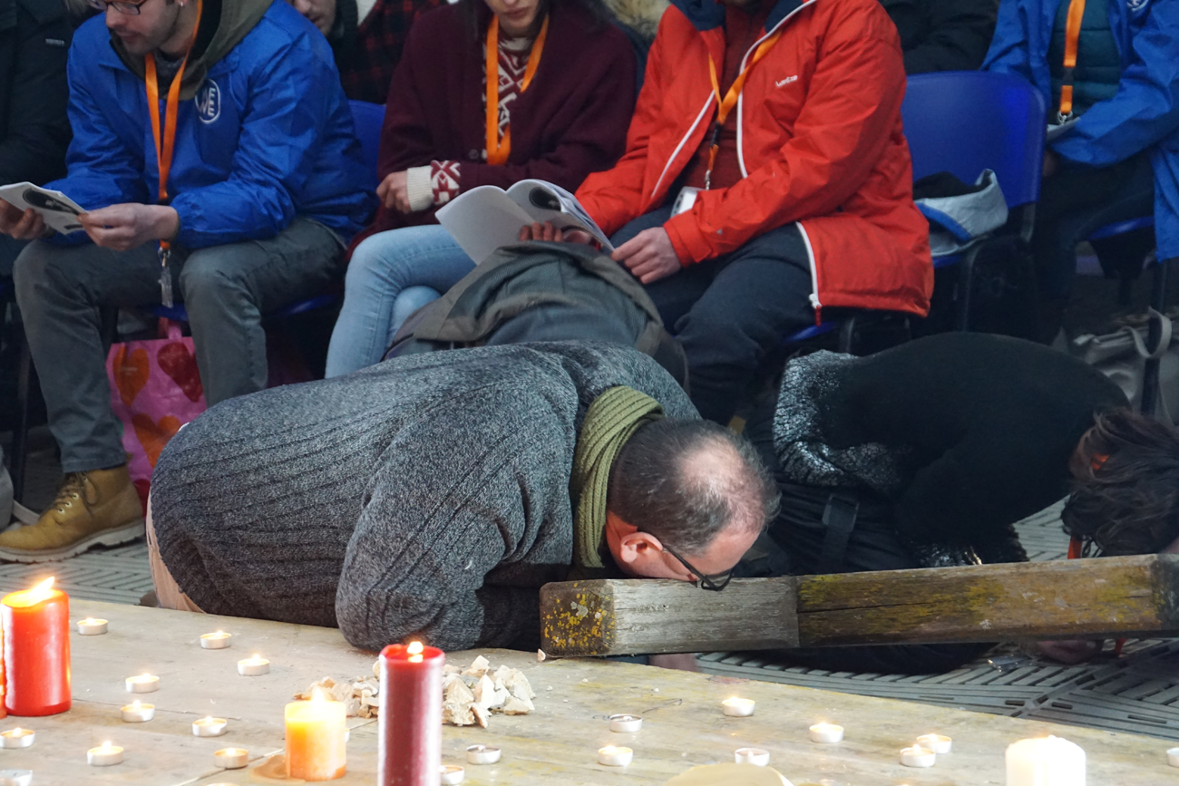 In un’atmosfera suggestiva, alla luce delle candele e quasi solleticati dalle note dolcissime dei celebri canoni, i giovani del MeWe hanno concluso il pomeriggio del secondo giorno dell’edizione 2017 con l’adorazione della croce, che si è svolta nello stile di Taizé.