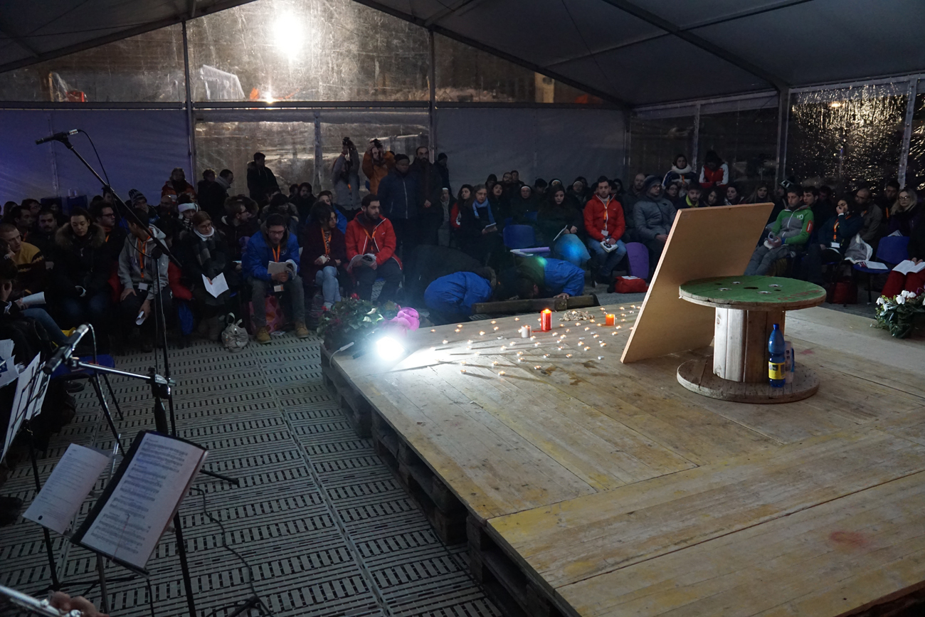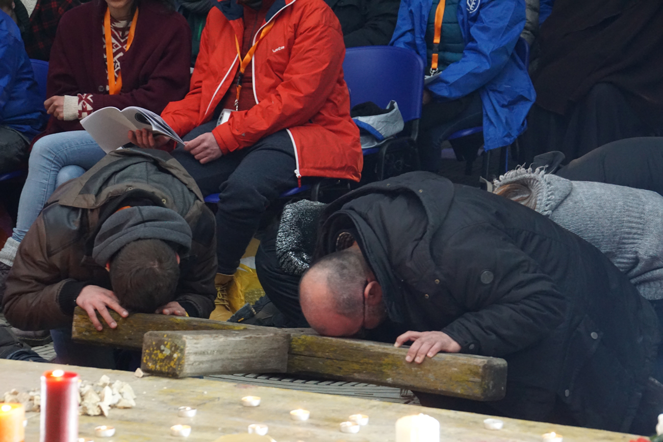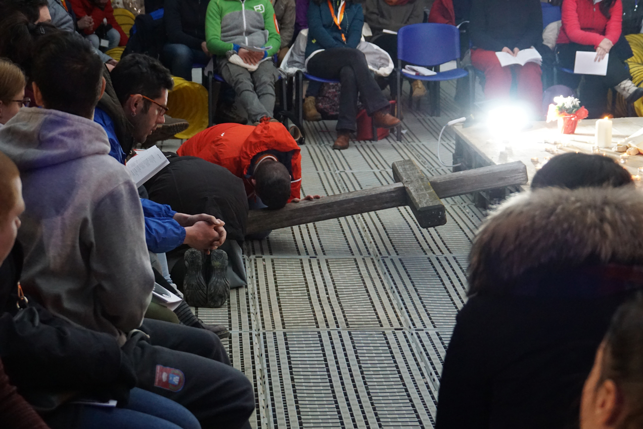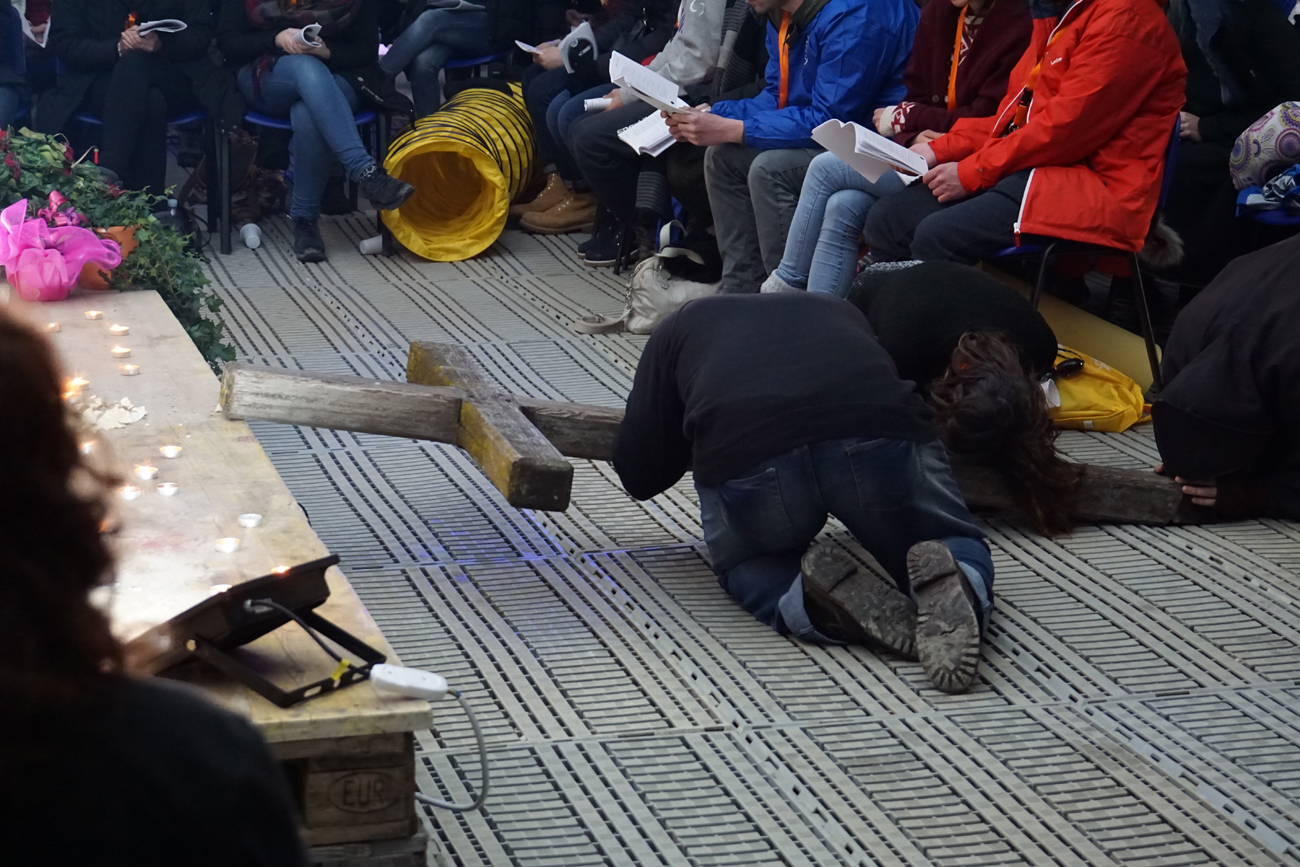 In un’atmosfera suggestiva, alla luce delle candele e quasi solleticati dalle note dolcissime dei celebri canoni, i giovani del MeWe hanno concluso il pomeriggio del secondo giorno dell’edizione 2017 con l’adorazione della croce, che si è svolta nello stile di Taizé.