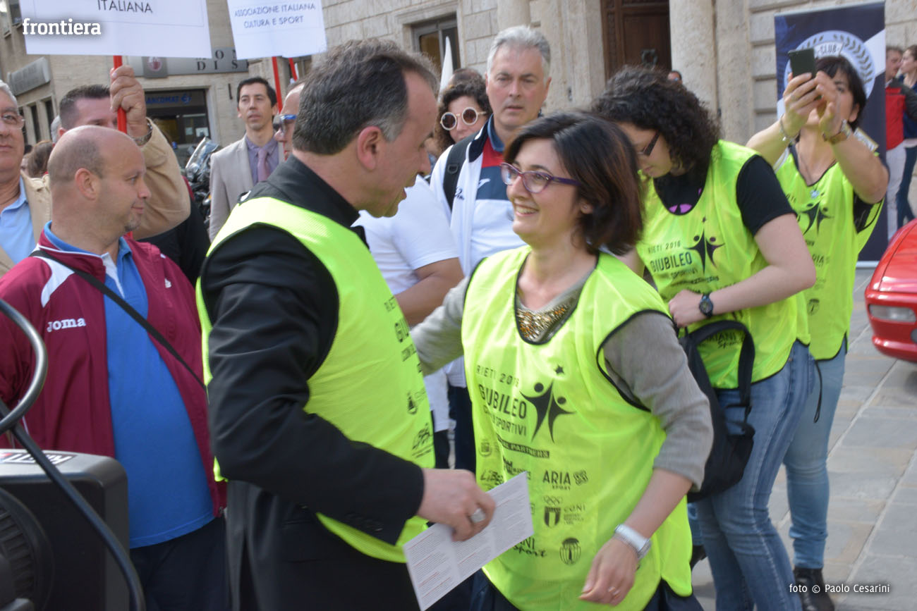 Breve e intenso il momento di preghiera proposto dal Vescovo di Rieti monsignor Domenico Pompili ai tanti presenti in piazza Vittorio Emanuele II giunti per vivere il Giubileo con gli sportivi, dopo aver attraversato la città nel colorato corteo scortato dalla Federazione Motociclistica Italiana.