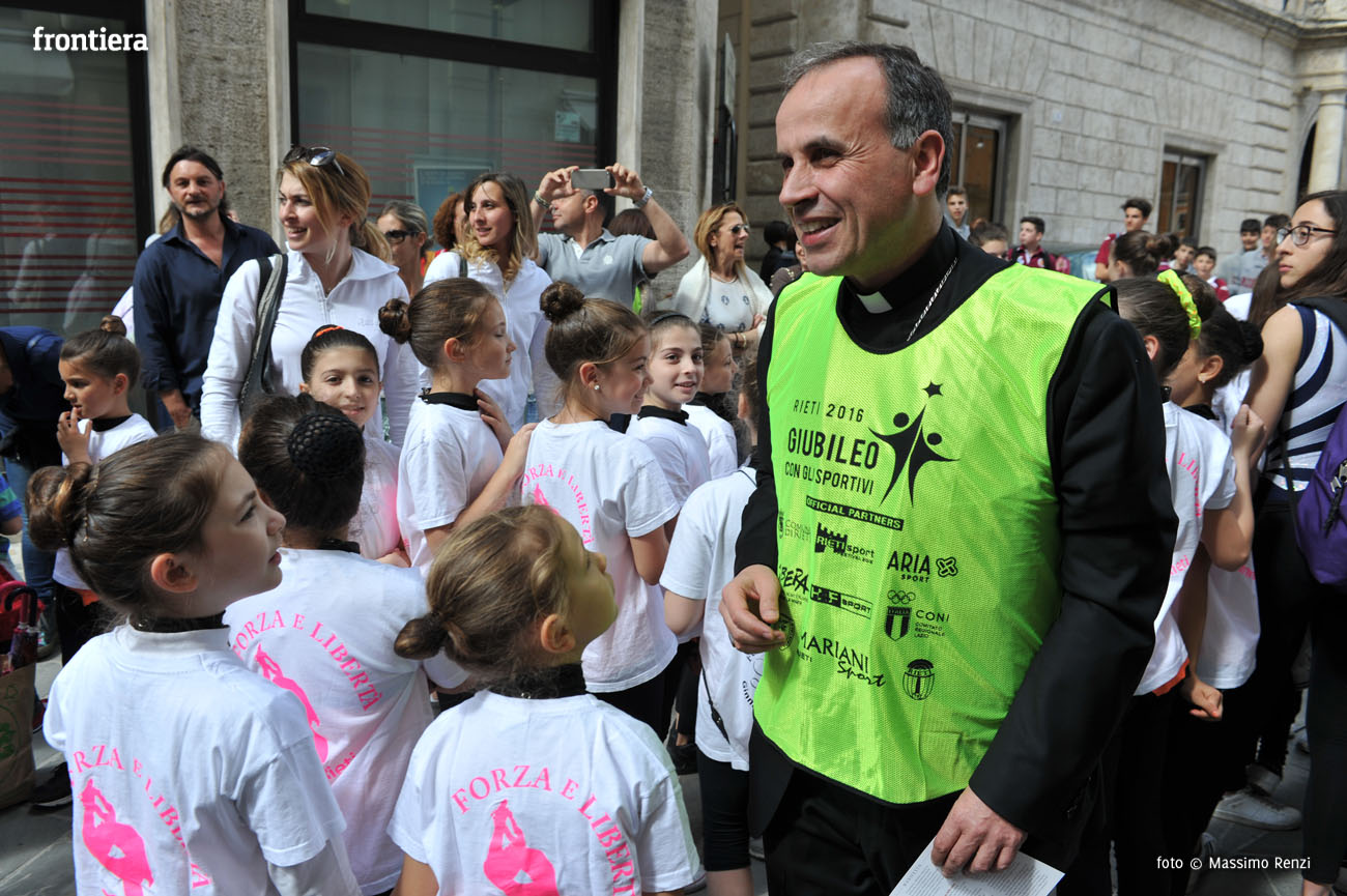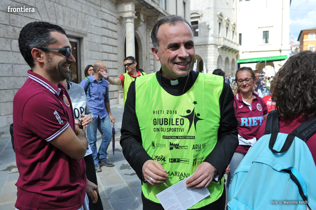 Breve e intenso il momento di preghiera proposto dal Vescovo di Rieti monsignor Domenico Pompili ai tanti presenti in piazza Vittorio Emanuele II giunti per vivere il Giubileo con gli sportivi, dopo aver attraversato la città nel colorato corteo scortato dalla Federazione Motociclistica Italiana.