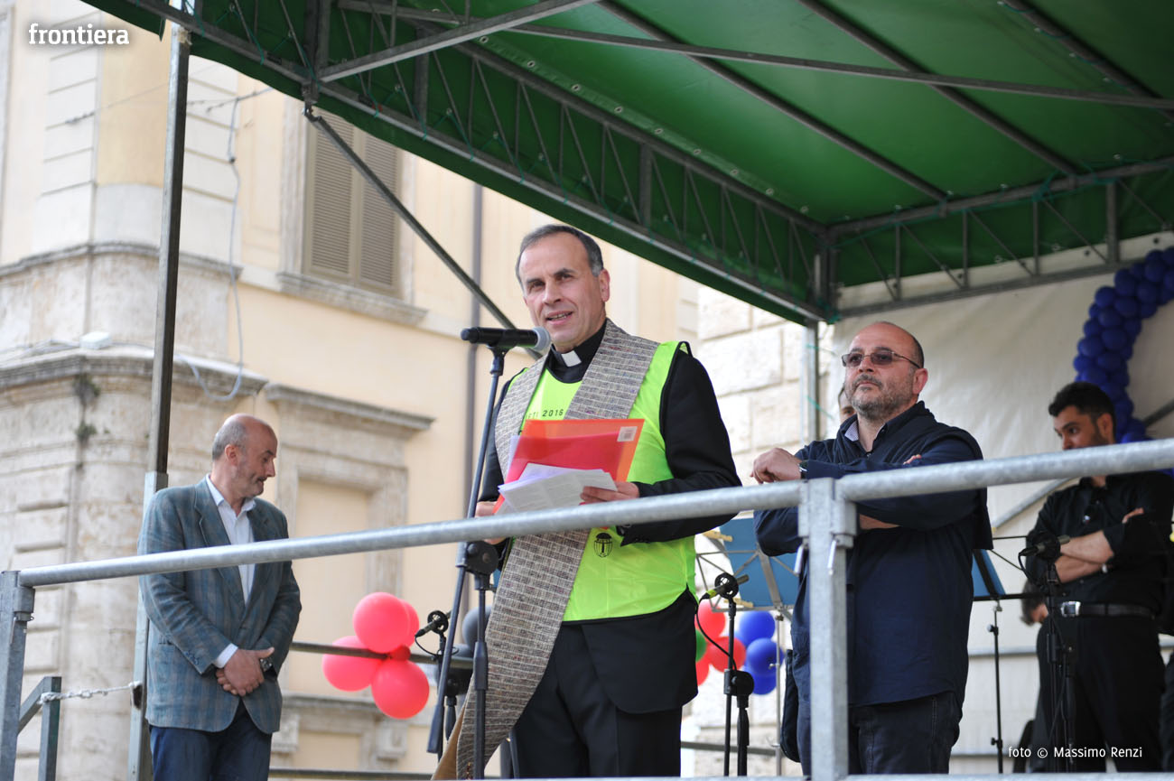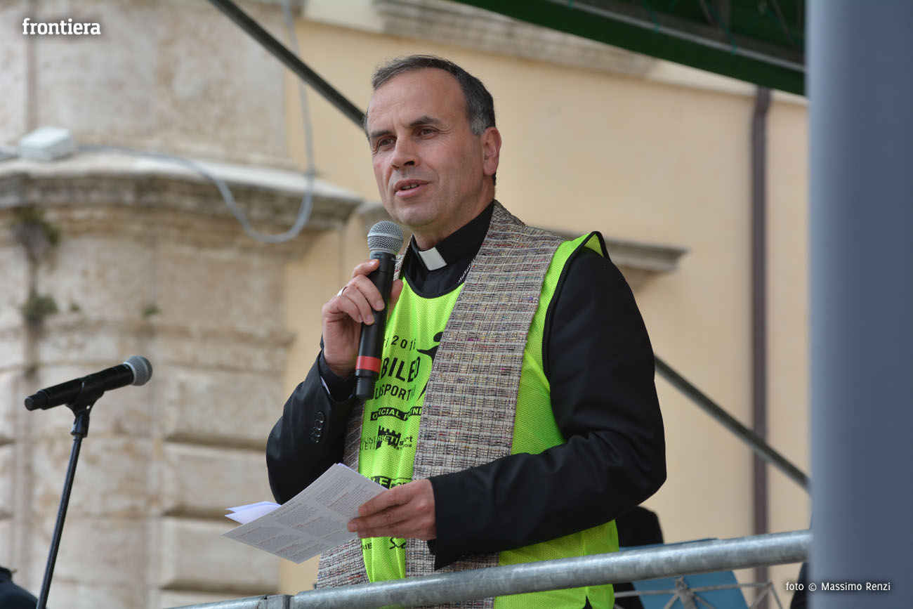 Breve e intenso il momento di preghiera proposto dal Vescovo di Rieti monsignor Domenico Pompili ai tanti presenti in piazza Vittorio Emanuele II giunti per vivere il Giubileo con gli sportivi, dopo aver attraversato la città nel colorato corteo scortato dalla Federazione Motociclistica Italiana.