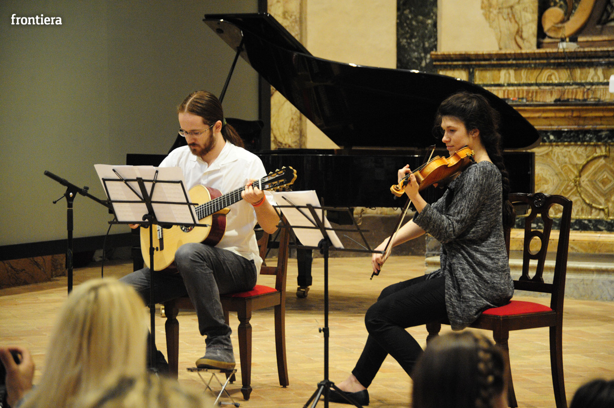 Sul palco dell’Auditorium Varrone si sono esibiti Gloria Santarelli al violino ed Edoardo Blasetti alla chitarra (Conservatorio S. Cecilia di Rieti) e gli alunni delle classi terze dell’Istituto Comprensivo di Villa Reatina diretti dal Maestro Paolo Marcelli con canti ed esecuzione di brani con il flauto dolce.