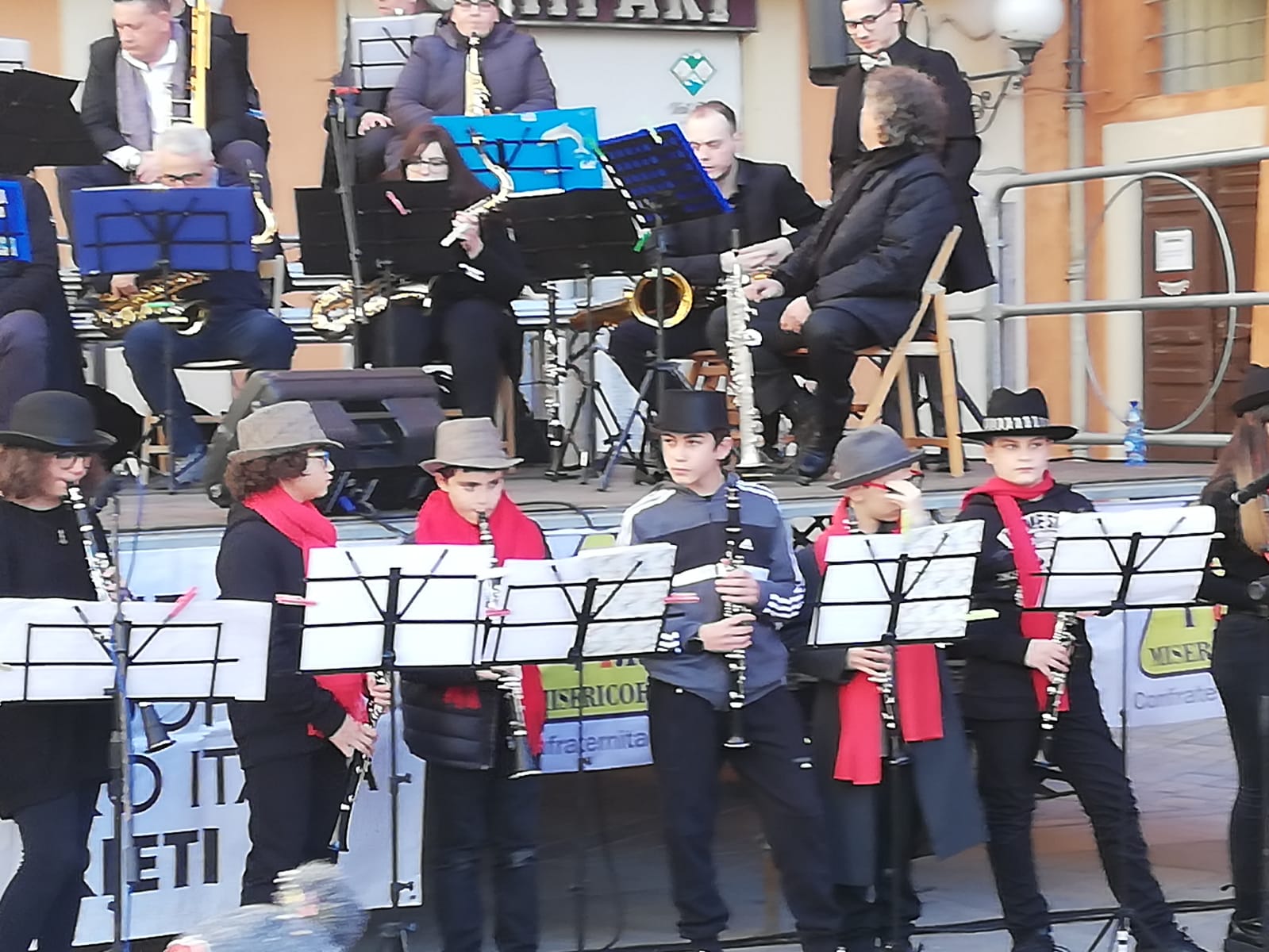 E alla conclusione, in piazza del Comune, alcuni dei fanciulli “felliniani” hanno voluto aggiungere anche il tocco musicale, onorando il centenario del maestro del neorealismo con l’esecuzione del notissimo tema di Amarcord con i clarinetti diretti dall’insegnante Paola Patacchiola.