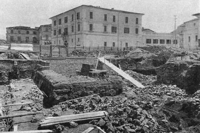 Dal cantiere sono emersi anche resti di costruzioni che appartengono, per l’appunto, alla Chiesa di S. Giovanni in Statua, arretrata nel 1774 e successivamente demolita nel 1928 per fare spazio all’Albergo Quattro Stagioni (vedi foto allegata).