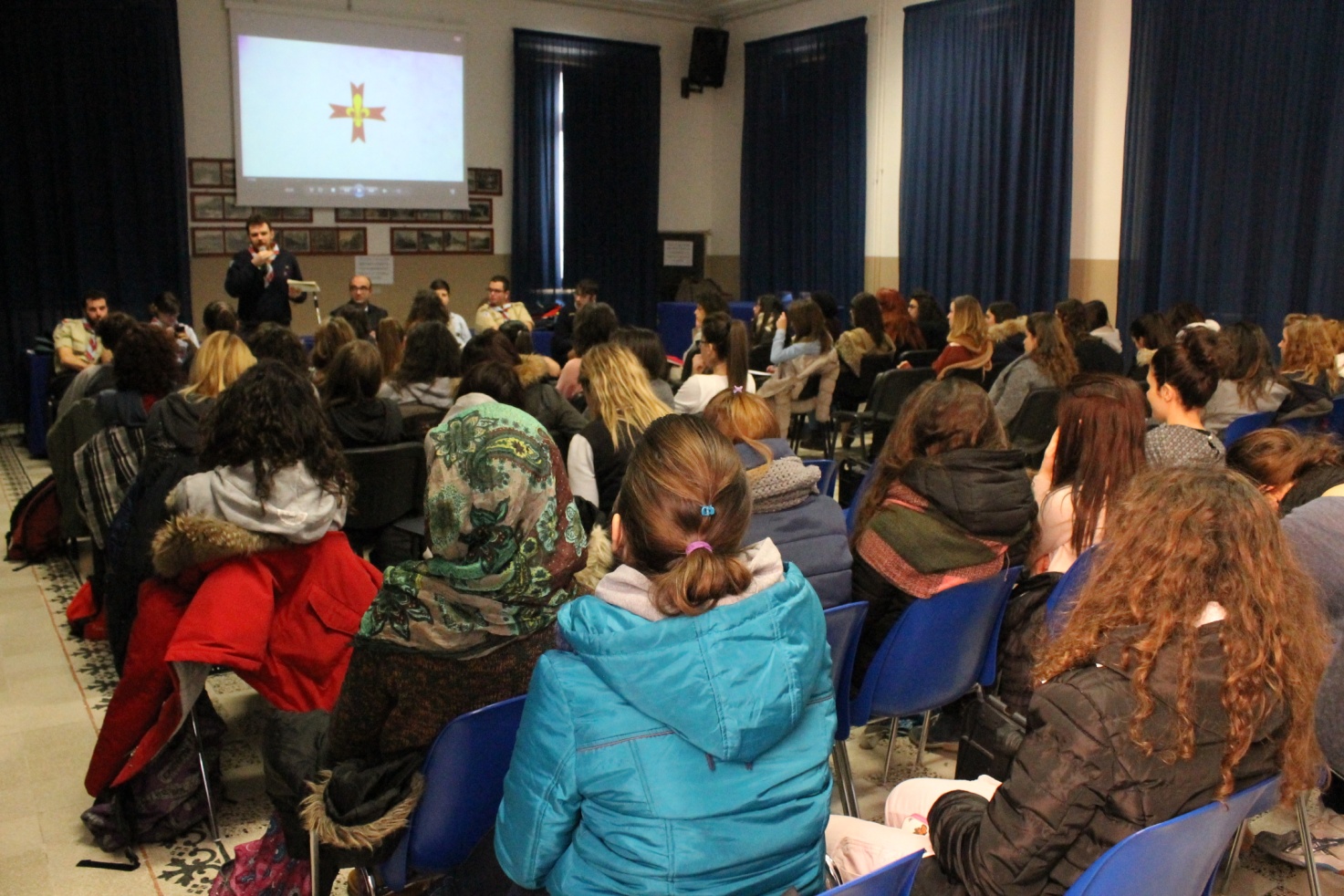 Gli studenti delle classi presenti, 4°C , 5°B e 5°C, hanno posto interessanti e inattese domande alle quali gli intervenuti non si sono sottratti, protraendo l’incontro oltre i tempi previsti. Nel corso dell’intervento sono stati ricordati i tratti più importanti della vita del fondatore dello scoutismo, Baden Powell, colui che ebbe la fortunata intuizione di formare un gruppo di ragazzi che sapessero divertirsi all’aria aperta, e non solo tra le “quattro mura” della propria casa, fortificando così il proprio carattere e imparando ad affrontare la vita con serenità e coraggio.