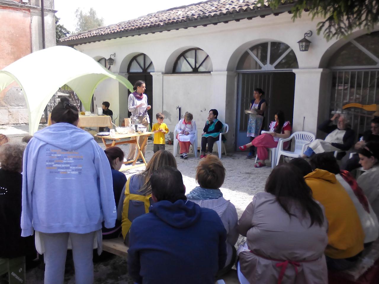 Domenica il laboratorio è proseguito con altre preparazioni e spiegazioni, si è infornato il pane nel forno a legna e più di 80 persone hanno pranzato insieme secondo la filosofia “rifiuti zero”, con i prodotti del laboratorio e dell’Azienda agricola Molino del Cantaro.