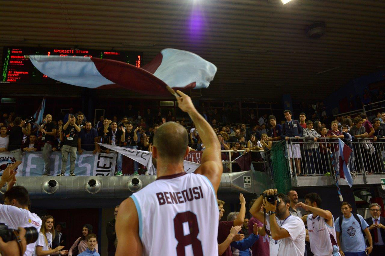 Fin dalla palla a due si è vista la grande grinta della squadra di casa – in campo con Zanelli, Di Prampero, Pepper, Sims e Chillo – che si è presto portata in vantaggio. Al primo tiro degli amarantocelesti (Pepper realizza i primi due punti della gara) dalla curva è venuta giù una pioggia di carta igienica, coriandoli di una festa già preannunciata. Treviglio che scende in campo con Marino, Marini, Nwohuocha, Sorokas e Sollazzo, si porta sull’8 pari, ma sarà l’unico momento di equità, Chillo infatti realizza da tre e comincia l’avanzata dei reatini che chiudono il quarto sul 28-17 (di cui 9 di Chillo).