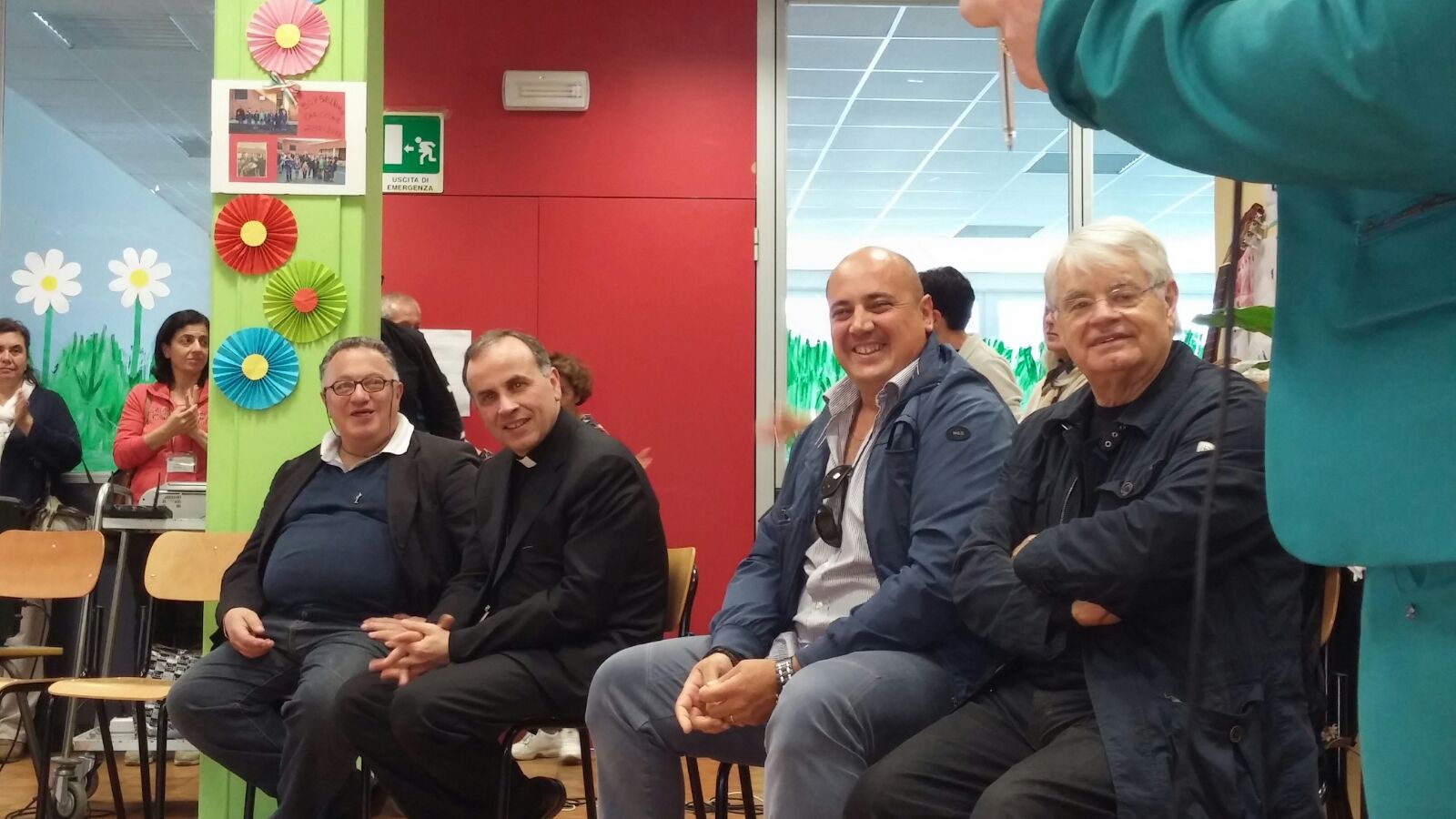 L’occasione era semplicemente un saluto per la fine anno scolastico, ormai concluso. A ricevere don Domenico tutto il corpo docente, l’immancabile don Felice, don Giovanni, parroco di piazza Tevere e, in rappresentanza della dirigenza scolastica, il presidente del consiglio d’istituto Riccardo Boi (la preside non ha potuto presenziare con molto dispiacere per motivi di salute).