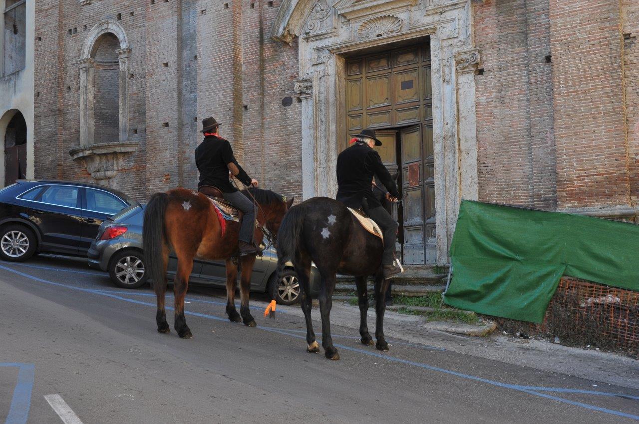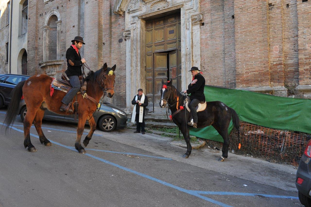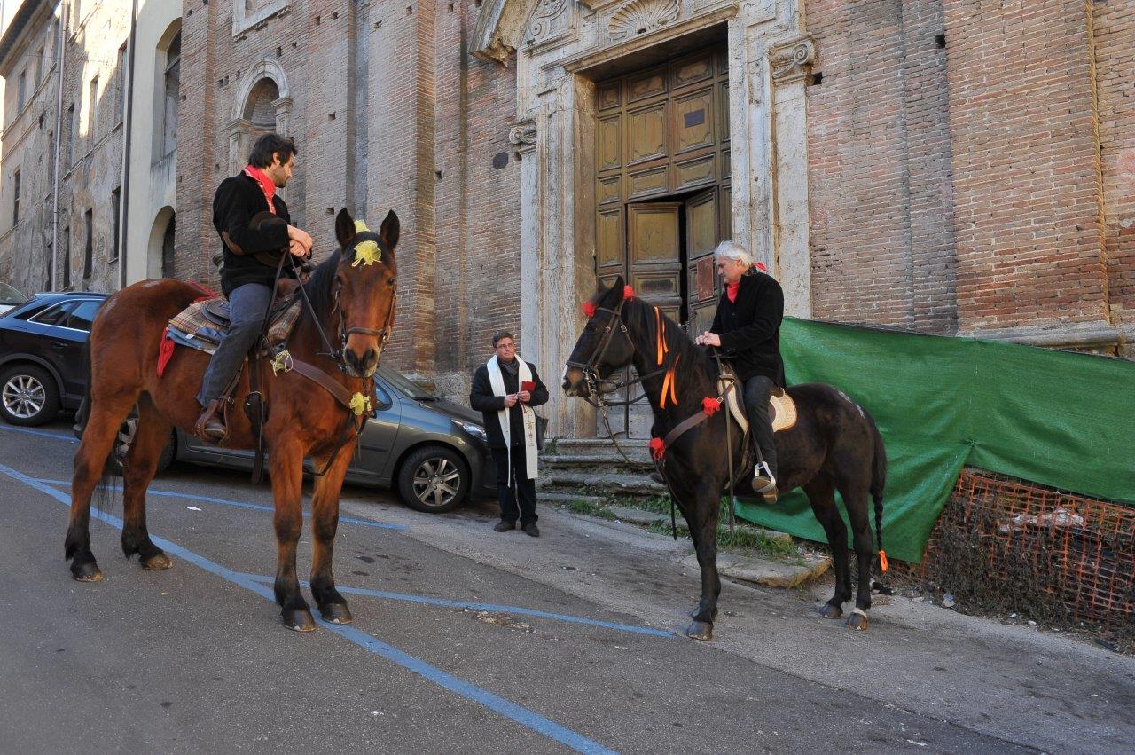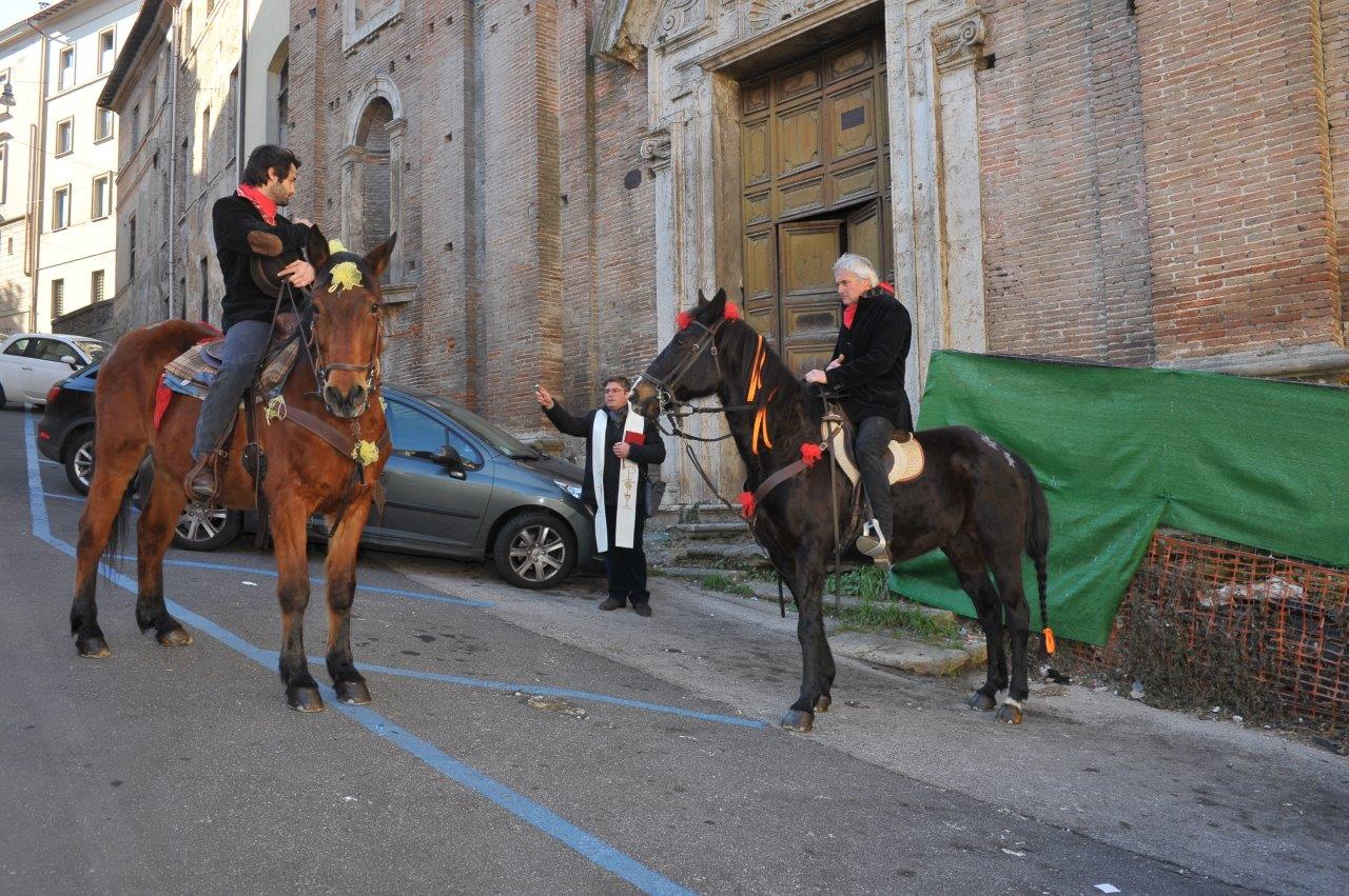Come da programma, la sfilata pomeridiana è stata preceduta, la domenica mattina, dalla rievocazione storica, con la benedizione di cavalli e cavalieri impartita da don Marco Tarquini nei pressi della chiesa di Sant’Antonio Abate.