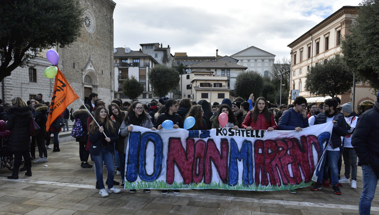 Una mattinata di primavera fortunatamente assolata dopo il maltempo delle scorse settimane ha permesso un’ottima riuscita della XXIII edizione della Giornata contro le mafie promossa dall’associazione Libera fondata da don Luigi Ciotti. Il corteo composto dalle scuole cittadine di ogni ordine e grado e dai rappresentanti del territorio è partito alle 9.30 dal piazzale della stazione per dirigersi verso la chiesa di San Domenico.