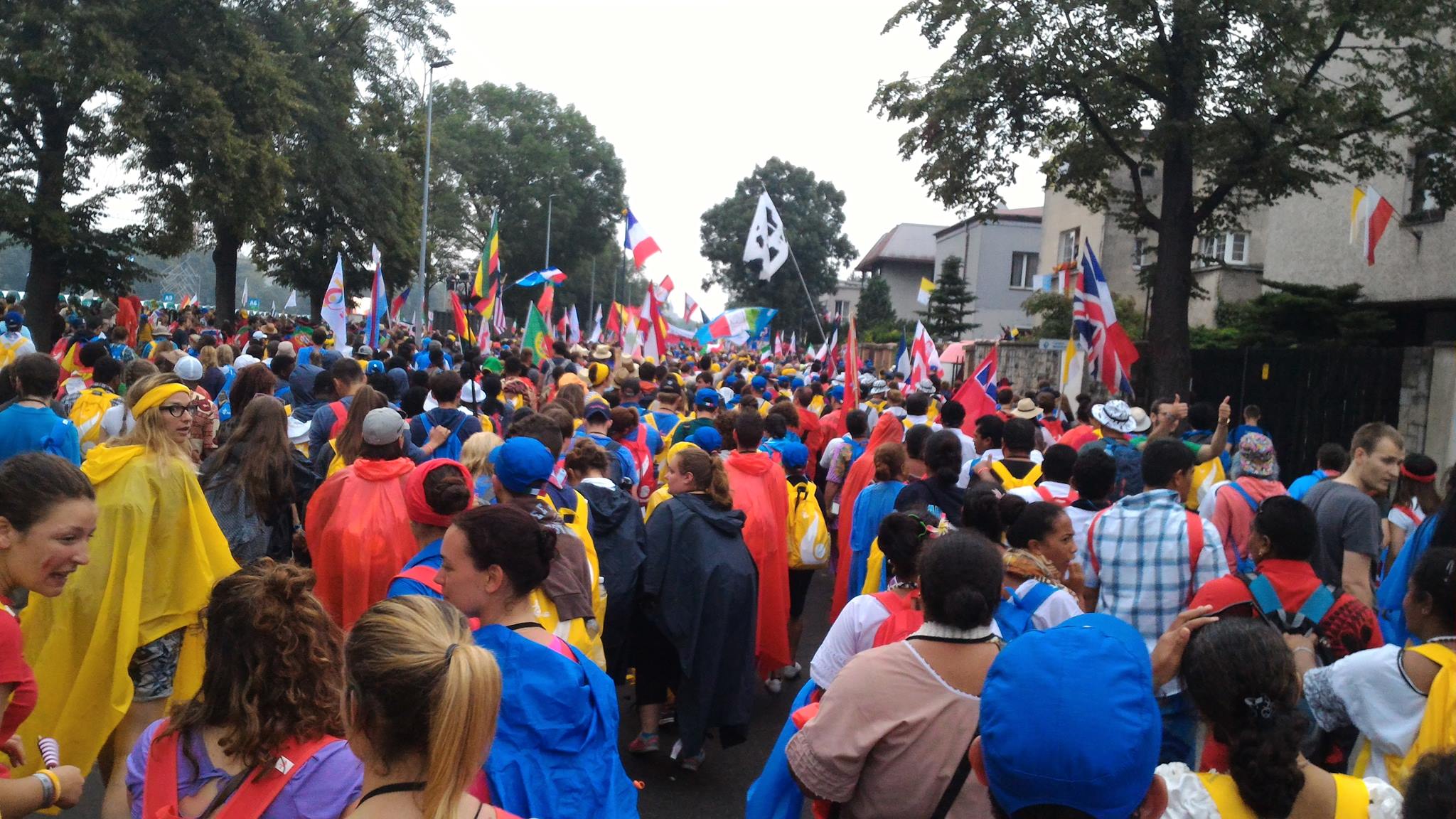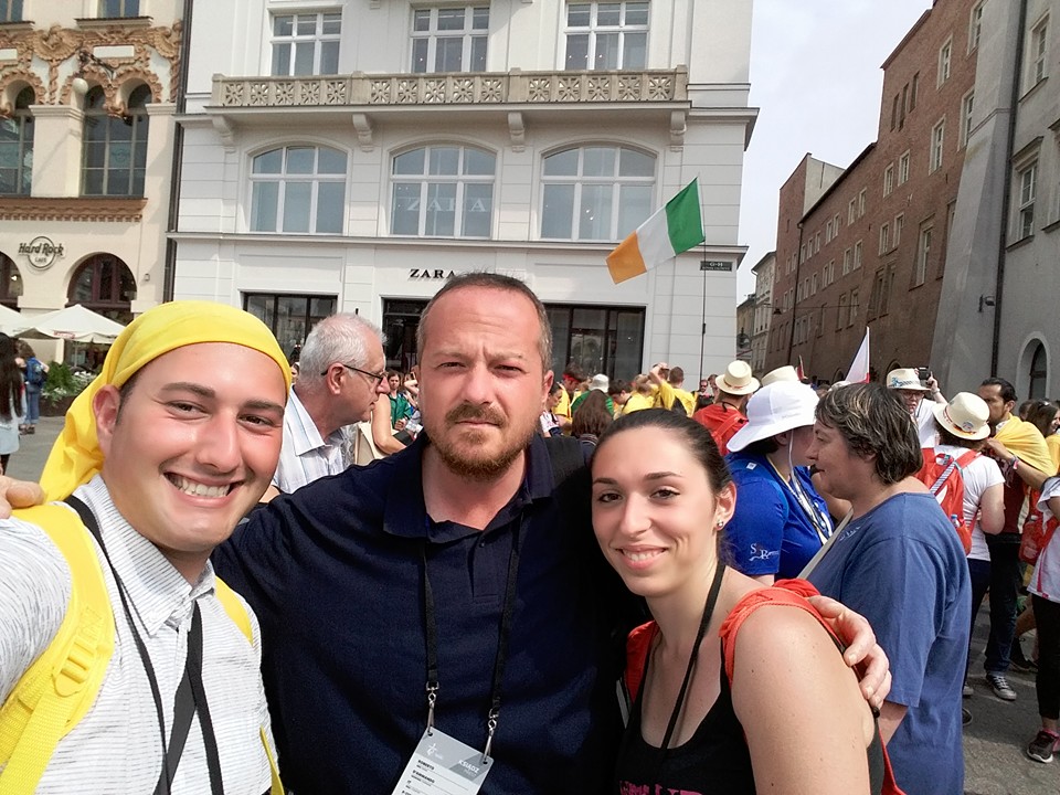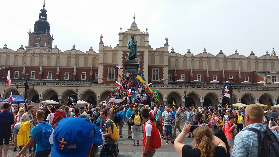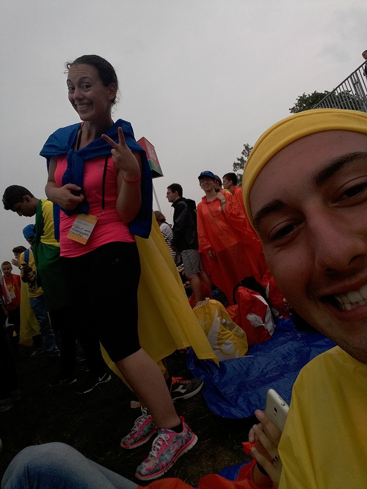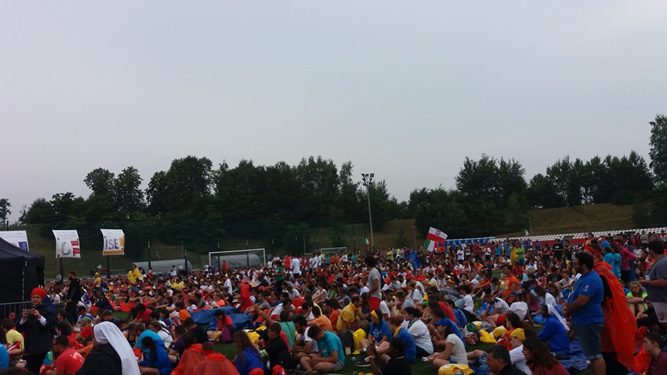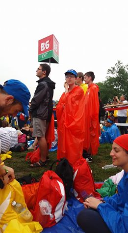 Sotto una pioggia scrosciante, che fortunatamente ha lasciato presto il posto al cielo sereno, si sono poi diretti verso la spianata di Blonia, dove hanno atteso il Santo Padre e partecipato, in un clima di preghiera e raccoglimento, alla Via Crucis.