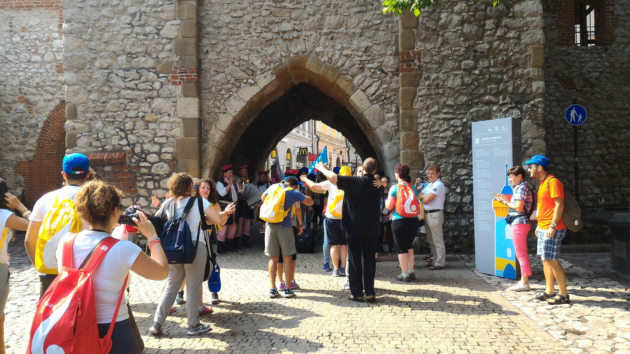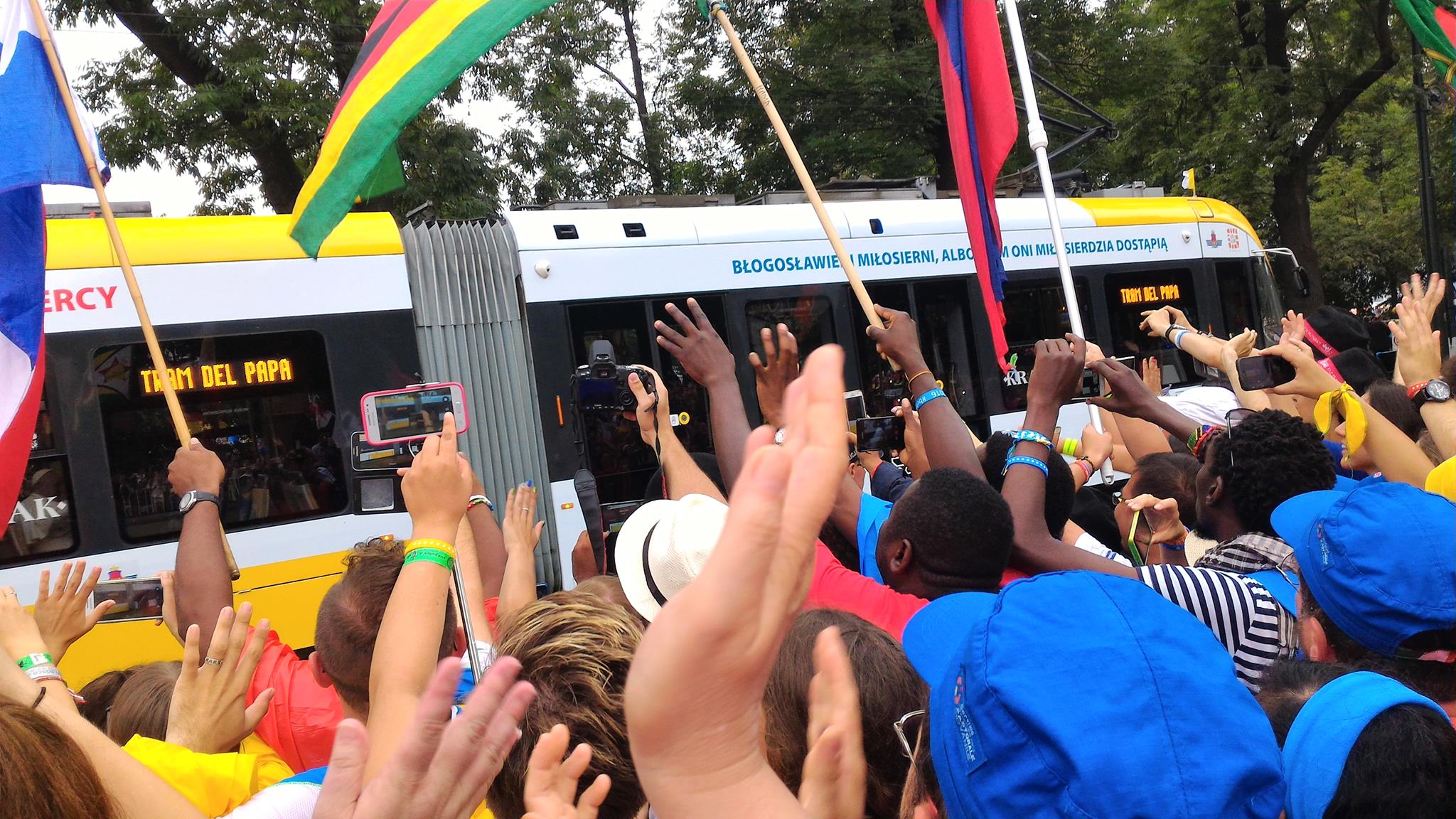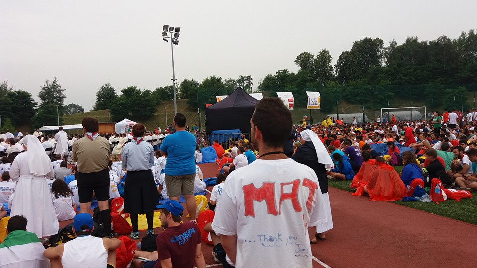 Sotto una pioggia scrosciante, che fortunatamente ha lasciato presto il posto al cielo sereno, si sono poi diretti verso la spianata di Blonia, dove hanno atteso il Santo Padre e partecipato, in un clima di preghiera e raccoglimento, alla Via Crucis.