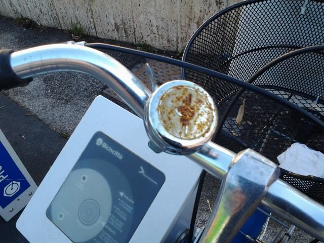 Il dubbio c’era venuto lo scorso luglio. Ci domandavamo se i mezzi a disposizione del servizio di bike sharing alla lunga non finissero con il soffrire le intemperie. Ovviamente la domanda era retorica, perché l’alternanza di sole, pioggia, neve e varia umidità non poteva che portare ad un esito scontato. Sta venendo fuori la ruggine, e alla lunga il rischio è di rimanere senza servizio.