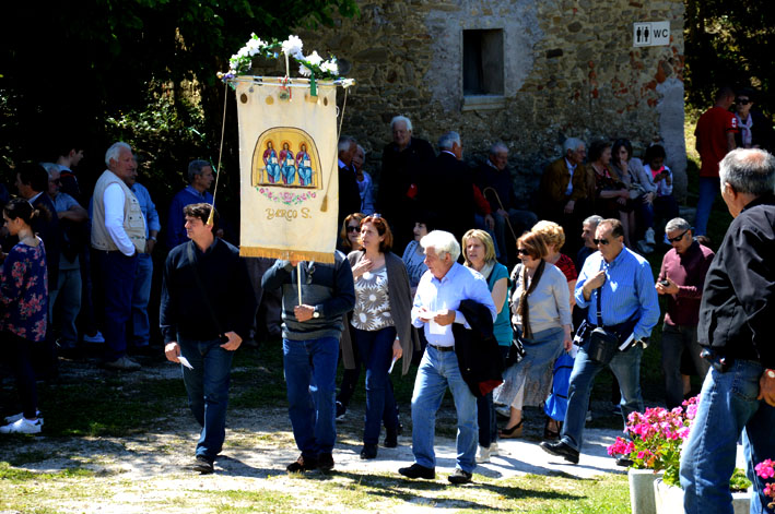 Quest’anno la ricorrenza della SS Trinità ha richiamato un folto stuolo di fedeli e di pellegrini nel piccolo Santuario dove, da secoli, si celebra la festività e si intonano i canti delle numerose compagnie. Canti la cui eco ha risuonato nella bellissima Vallata del Salto, con il suo lago. Nell’aria, come d’incanto, le melodie dei pellegrini dei vari paesi. Tra questi, Marcetelli, dalle cui strade una seconda compagnia, nelle stesse ore, si stava avvicinando al Santuario di Vallepietra di Subiaco, rinnovando, così, la millenaria tradizione del pellegrinaggio alla: Trinità lontana ed alla Trinità vicina.