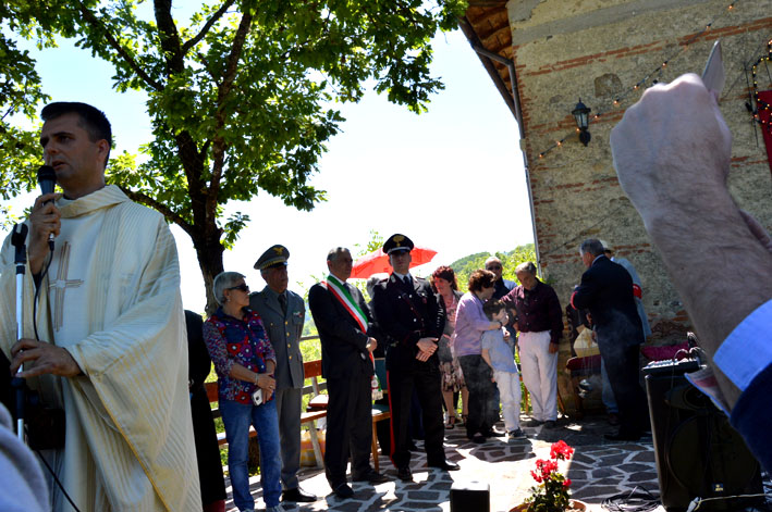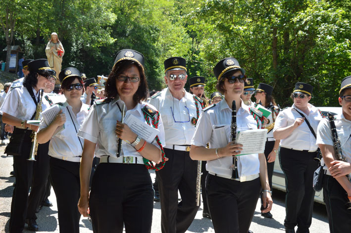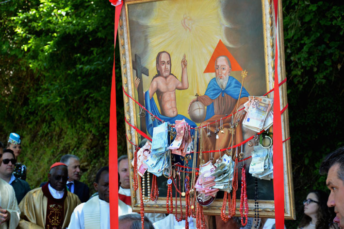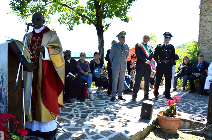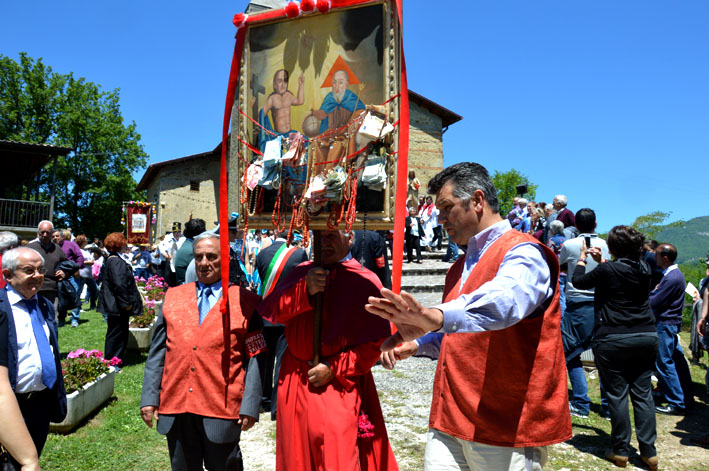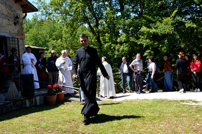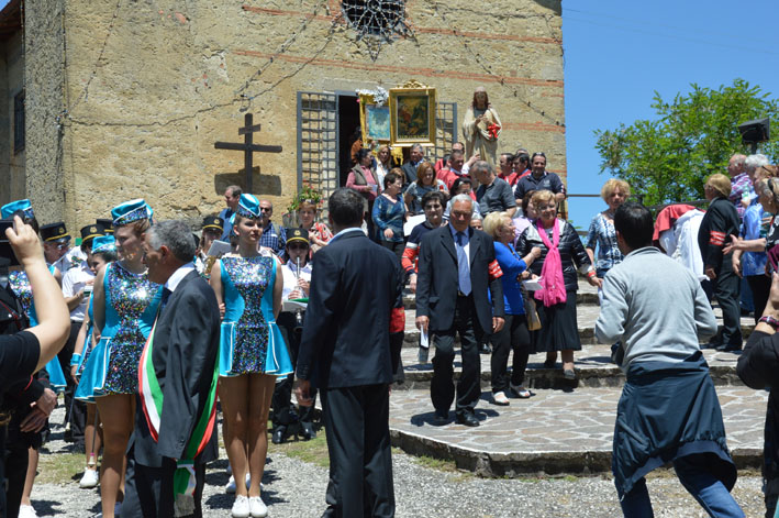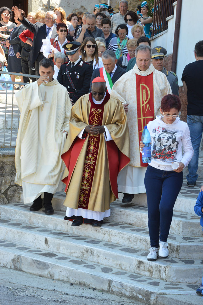 Al termine della solenne celebrazione, le compagnie dei fedeli, il cardinale, il clero e tutti i pellegrini, partendo dal piccolo santuario, hanno percorso le vie del paese in una altrettanto solenne processione, al termine della quale lo scoppio di mortaretti ha solcato il cieli blu, riflettendosi nelle acque del bacino del Salto.