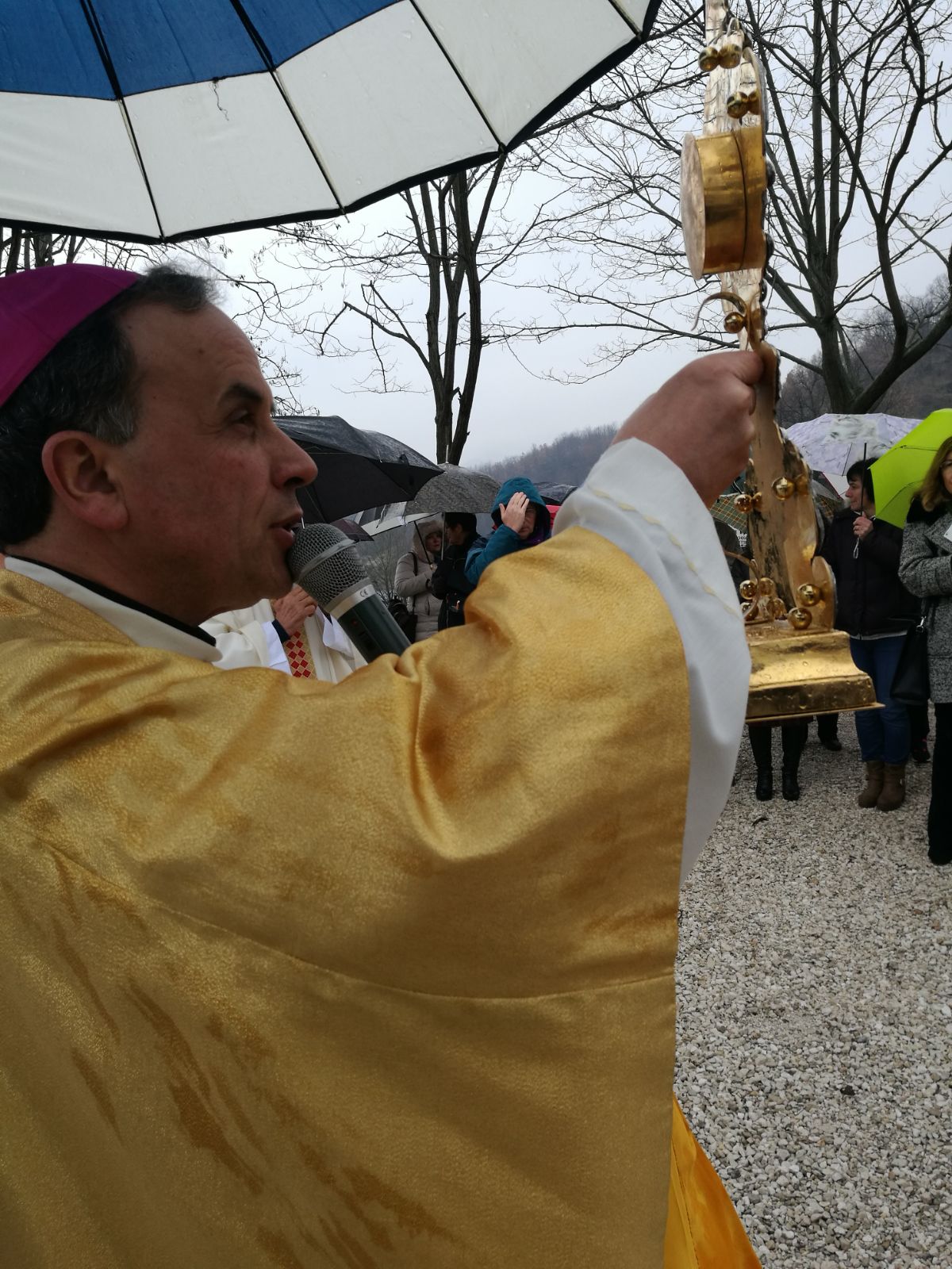 Dall’acqua della pioggia all’acqua benedetta: anche questo ci ha ricordato che nella pioggia può stare una benedizione del Creatore.