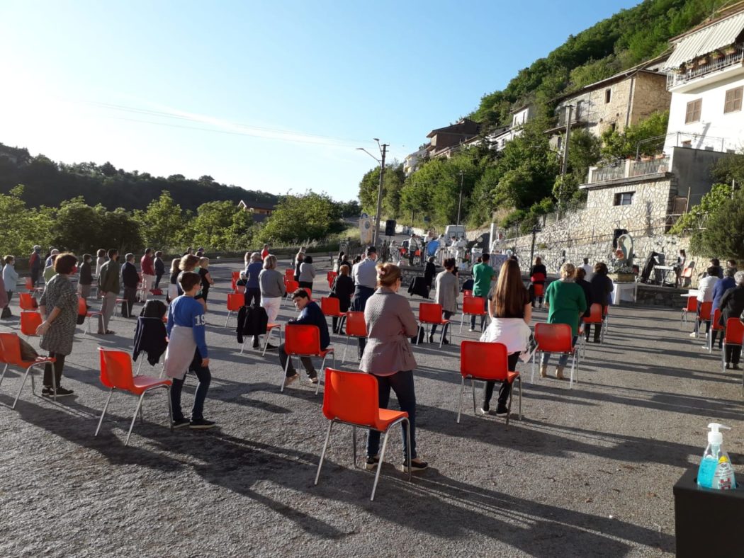 Raduno all’aperto anche per i parrocchiani di Canetra, che con entusiasmo lunedì si sono ritrovati nel cortile delle suore di Maria Bambina. Le religiose avevano ben predisposto tutto per accogliere i fedeli, «contentissimi», dice il parroco don Ferruccio, dopo il lungo periodo di stasi che però «non è stato spiritualmente vuoto, anzi ha fatto riscoprire a tanti la preghiera in famiglia: molte donne mi hanno confidato che i loro mariti sono tornati alla preghiera, entusiasti di recitare ogni sera il Rosario in collegamento col vescovo in Cattedrale». Negli altri paesi della parrocchia che comprende il territorio di Castel Sant’Angelo, così come a Posta e Cittareale (tutta la zona è seguita da don Ferruccio, che nel fine settimana viene aiutato da don Luciano e da un religioso che giunge da Roma, fra Claudio), le Messe festive o prefestive saranno sempre all’aperto laddove le chiese risultassero troppo piccole, mentre nei paesini in cui c’è poca gente sarà più facile restare all’interno degli edifici sacri mantenendo il distanziamento.