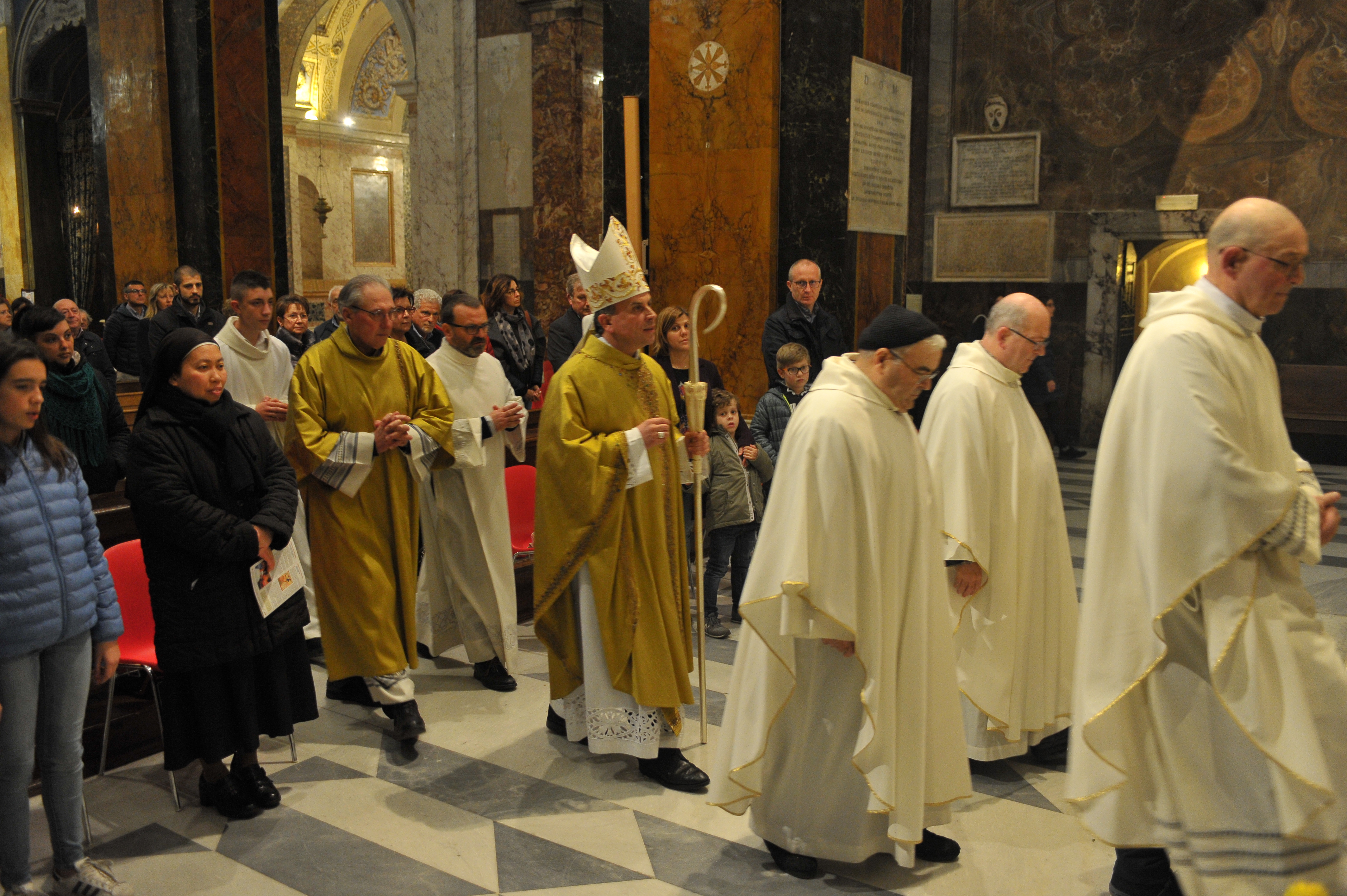 Le parole del vescovo Domenico, nell’omelia della Messa “in Coena Domini” celebrata in Cattedrale in serata dopo che nel pomeriggio era stato all’hospice, hanno richiamato l’attenzione su quel gesto clamoroso con cui Gesù, nell’ultima cena, spiazza i discepoli: quella lavanda dei piedi che lui stesso, subito dopo, ha ripetuto lavando i piedi ad alcuni parrocchiani di S. Maria e S. Lucia.