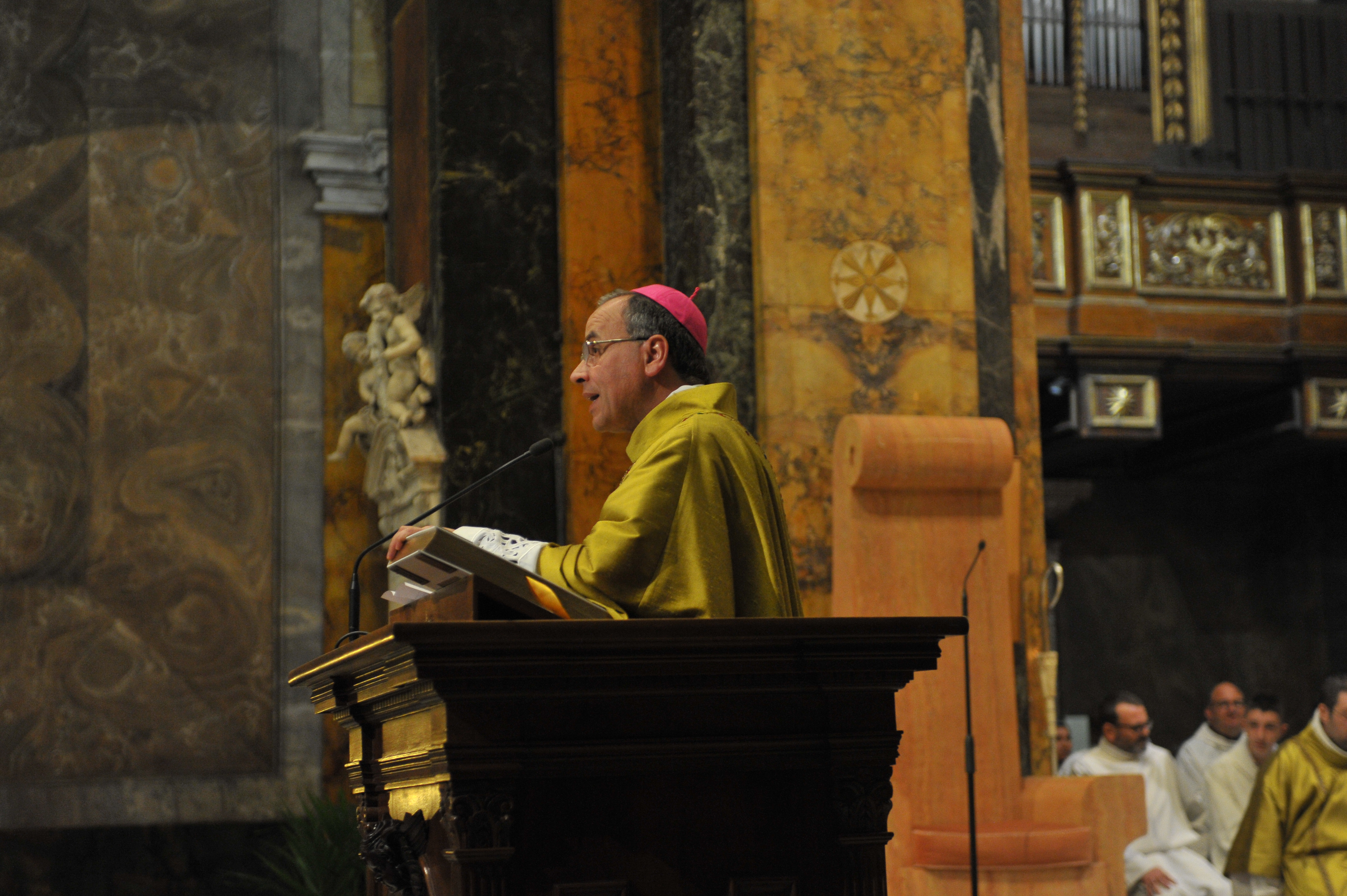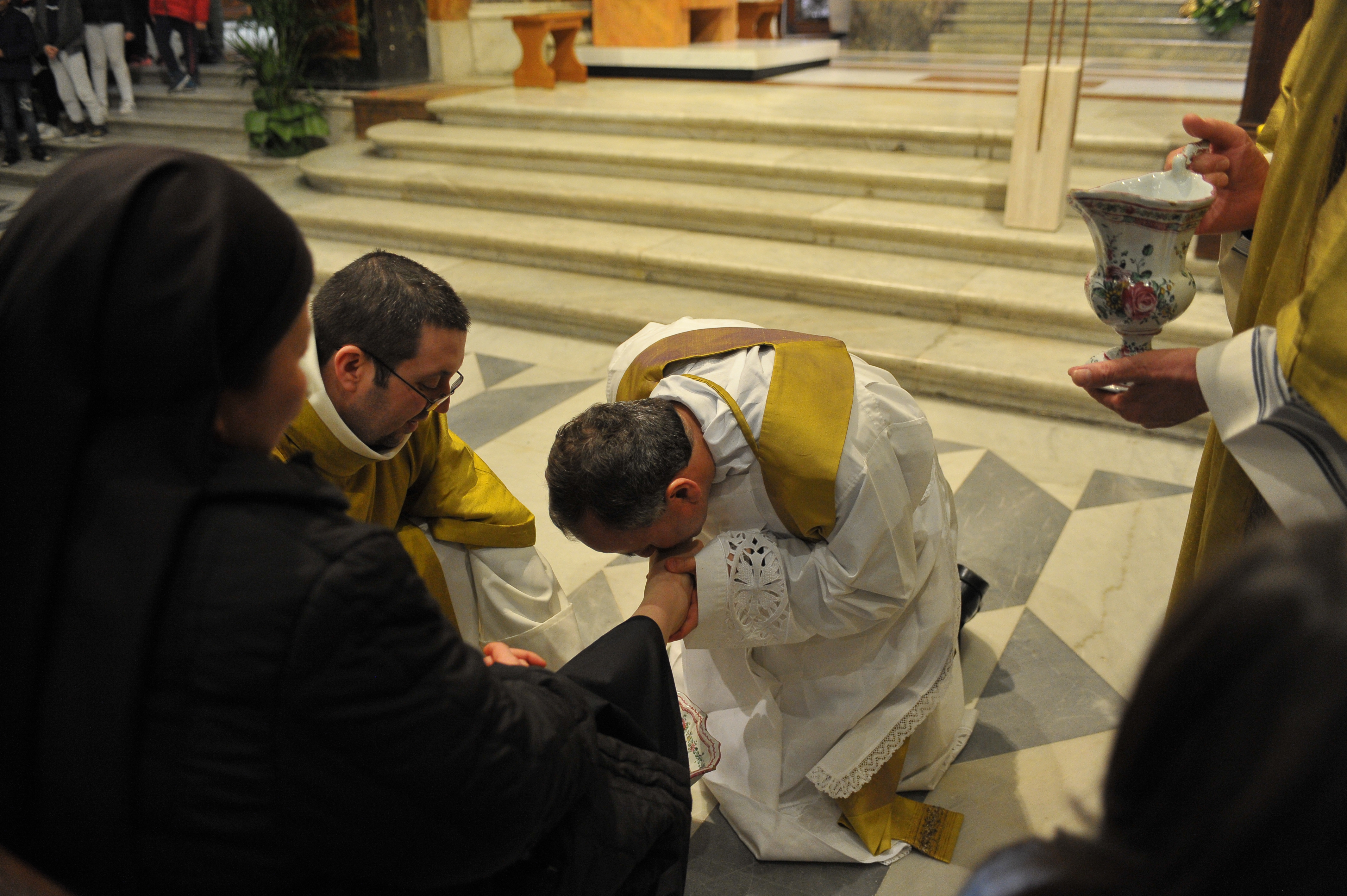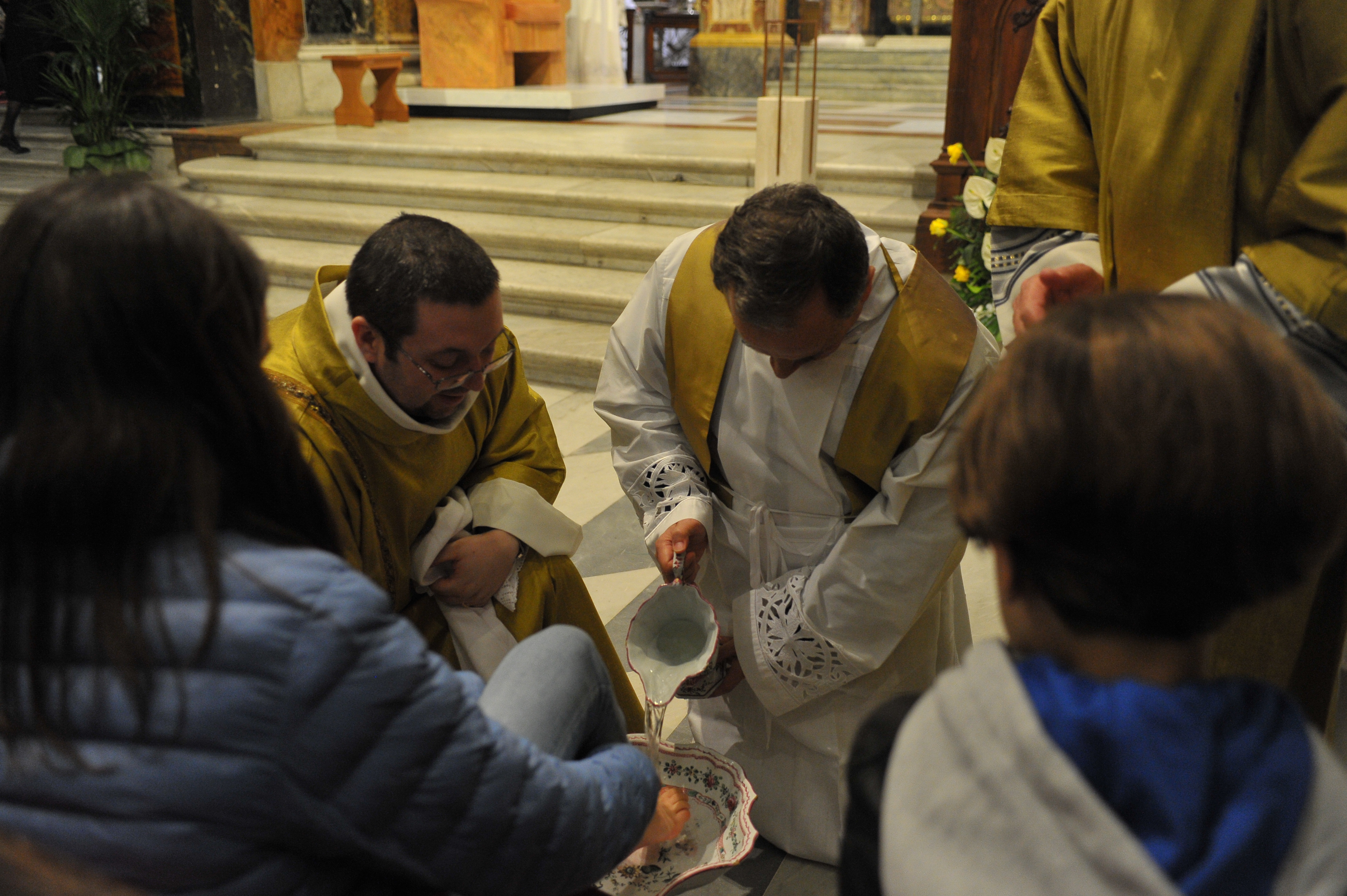 Un gesto, ha precisato don Domenico, che non va banalizzato: «non si è trattato di un semplice gesto di umiltà, piuttosto un segno profetico che anticipa nel segno ciò che avverrà di lì a poco, la sua morte e risurrezione. Ed è un gesto che spiazza letteralmente i suoi discepoli, tanto che Pietro, che ha sempre il cuore sulla lingua, dice di no, ma Gesù fa capire che quel gesto spiega la purezza dell’amore. L’amore soltanto è puro perché va oltre la giustizia, oltre ciò che è dovuto, e perciò si innesta nei sentieri di ciò che è eccedente, di ciò che è gratuito».