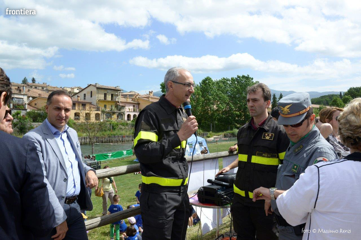 Alla manifestazione erano presenti Il Vice Prefetto Vicario Paolo Giovanni Grieco, il Presidente della Provincia Giuseppe Rinaldi, l’Assessore all’Ambiente, Il Generale Comandante Scuola NBC il Comandante Provinciale del C.F.S, il Comandante dei Vigili del Fuoco del Comando di Rieti,. I Vigili per l’occasione hanno eseguito delle dimostrazioni con il motoscafo e tecniche di salvataggio in acqua con le speciali attrezzature in dotazione. L’arrivo del l’elicottero della Forestale messo a disposizione dalla Base elicotteri del C.F.S. di Rieti, ha fatto il suo ingresso con uno “sgancio” d’acqua sul fiume per poi atterrare tra gli applausi degli astanti.