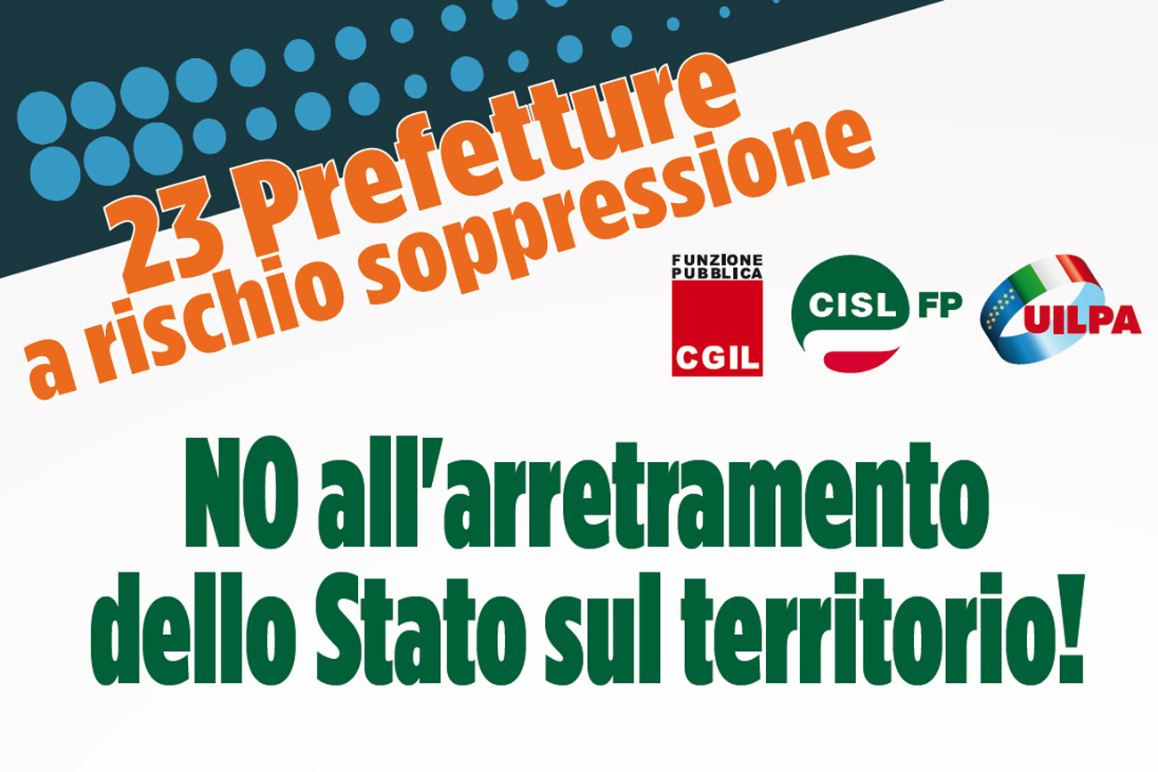 “A dispetto degli annunci, nei fatti questo governo adotta misure di vero e proprio ridimensionamento dei presidi di legalità e sicurezza sul territorio. Disinteressandosi completamente dei lavoratori delle Prefetture, dei quali nello schema di Dpr non si parla minimamente, ma soprattutto dei cittadini e delle comunità locali, che saranno lasciati più soli, con più disagi e più costi da sostenere”. Per le federazioni di categoria di Cgil Cisl e Uil, “la riorganizzazione dei servizi sul territorio non si fa smantellando lo Stato e lasciando nell’incertezza il personale che serve a garantire coesione sociale, integrazione e convivenza civile”.