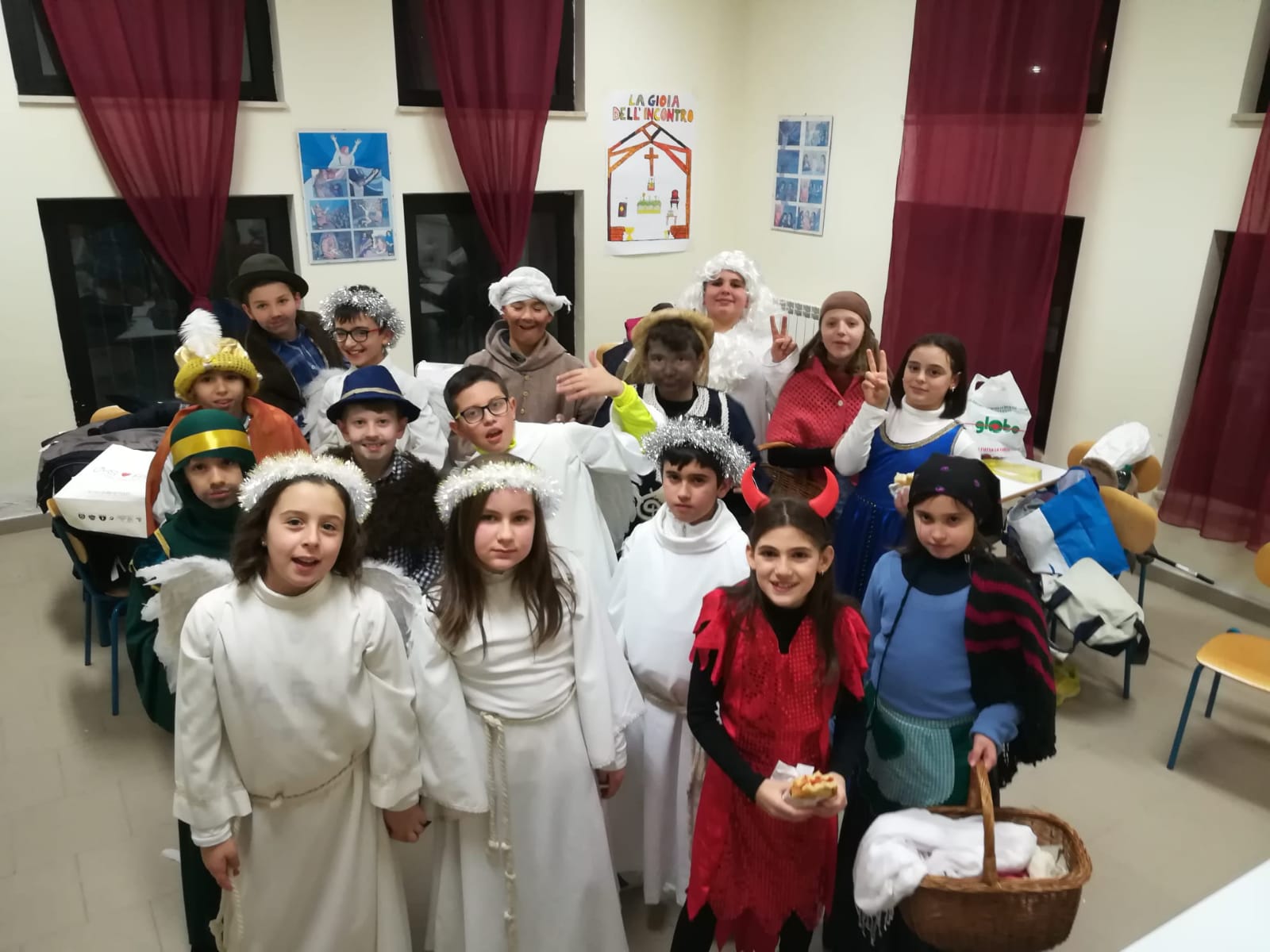 La serata si è svolta con la messa in opera della piece teatrale “L’Angelo Gabriele”, arricchita dalla scenografia di balli e canti natalizi .