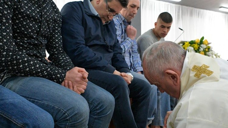 Il Papa ha celebrato la Messa in Coena Domini del Giovedì santo nel carcere di Velletri lavando i piedi a 12 detenuti di diverse nazionalità. Servitevi gli uni gli altri, ha detto Gesù e Francesco raccomanda: che il nostro cuore abbia sempre al centro il servizio.