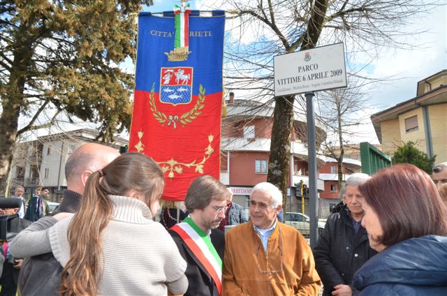 Dal 6 aprile, il parco di via Liberato di Benedetto si chiama “Parco vittime 6 aprile 2009″. La targa, scoperta dal sindaco Petrangeli nel pomeriggio, fa memoria di Luca Lunari, Michela Rossi e Argenis Valentina Orlandi, vittime reatine del terremoto dell’Aquila.
