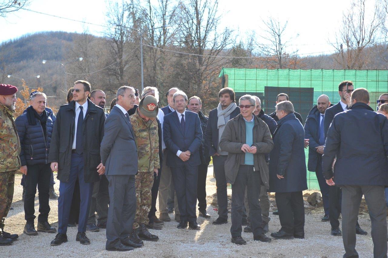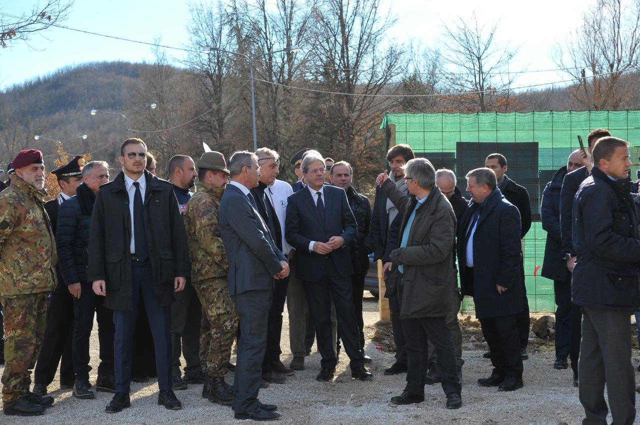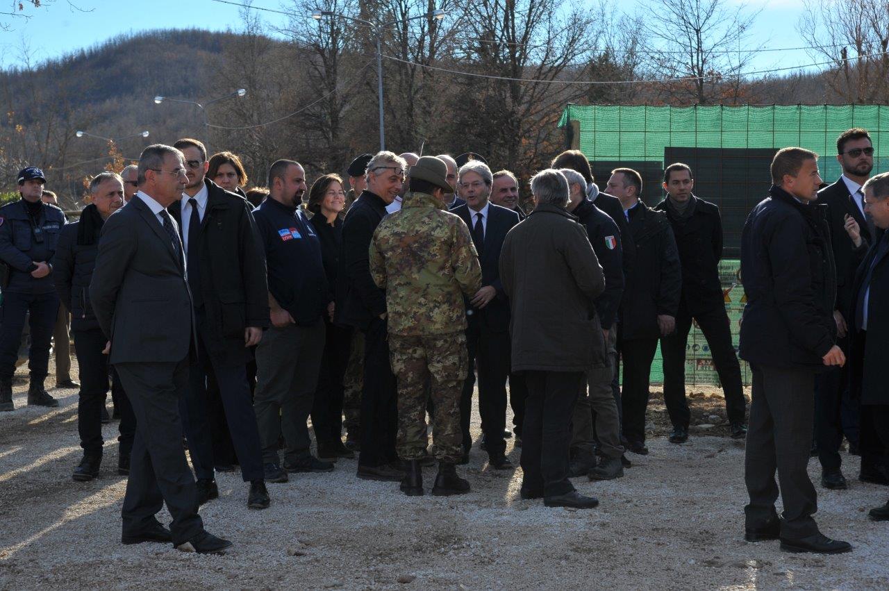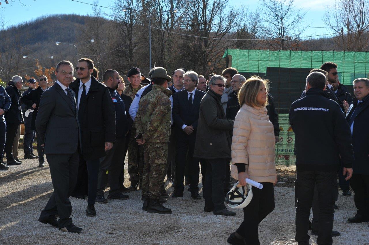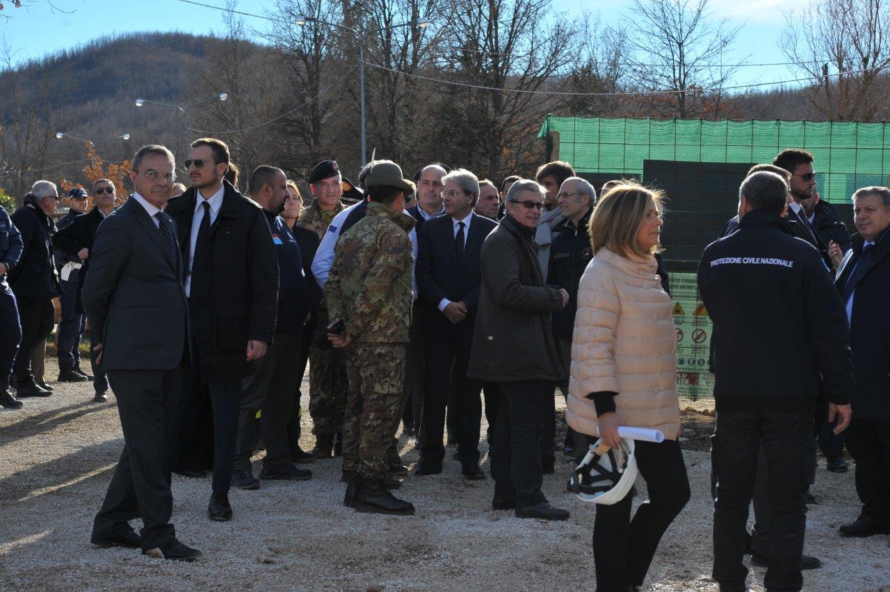 La visita al cantiere delle Soluzioni Abitative d’Emergenza, ha visto Gentiloni in compagnia del commissario alla ricostruzione Vasco Errani, del Capo Dipartimento della Protezione Civile, Fabrizio Curcio, del Presidente della Regione Lazio, Nicola Zingaretti, e del vescovo Domenico Pompili.