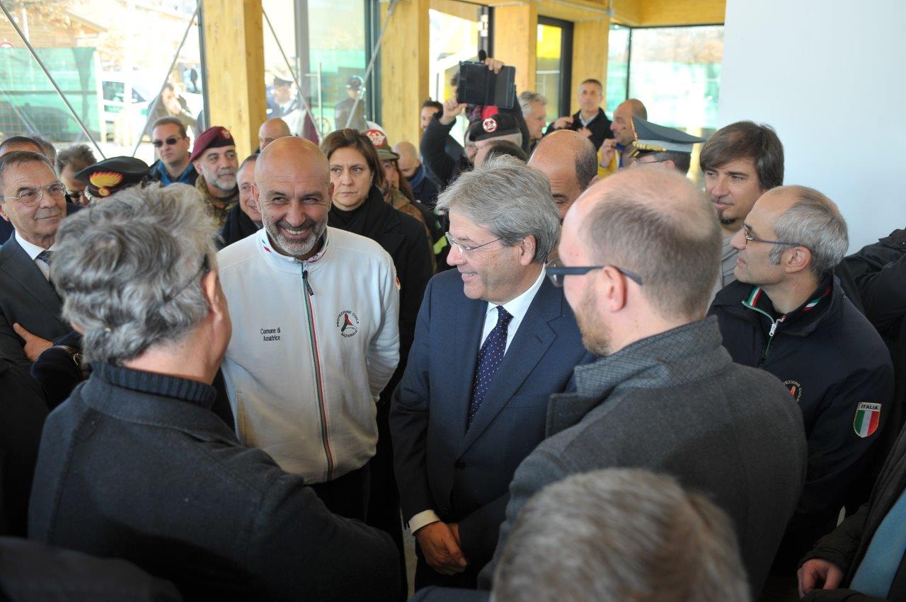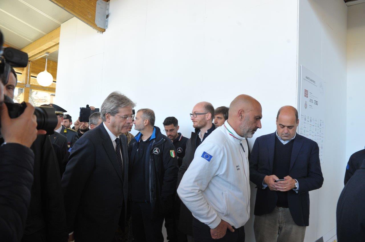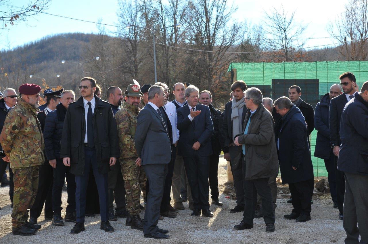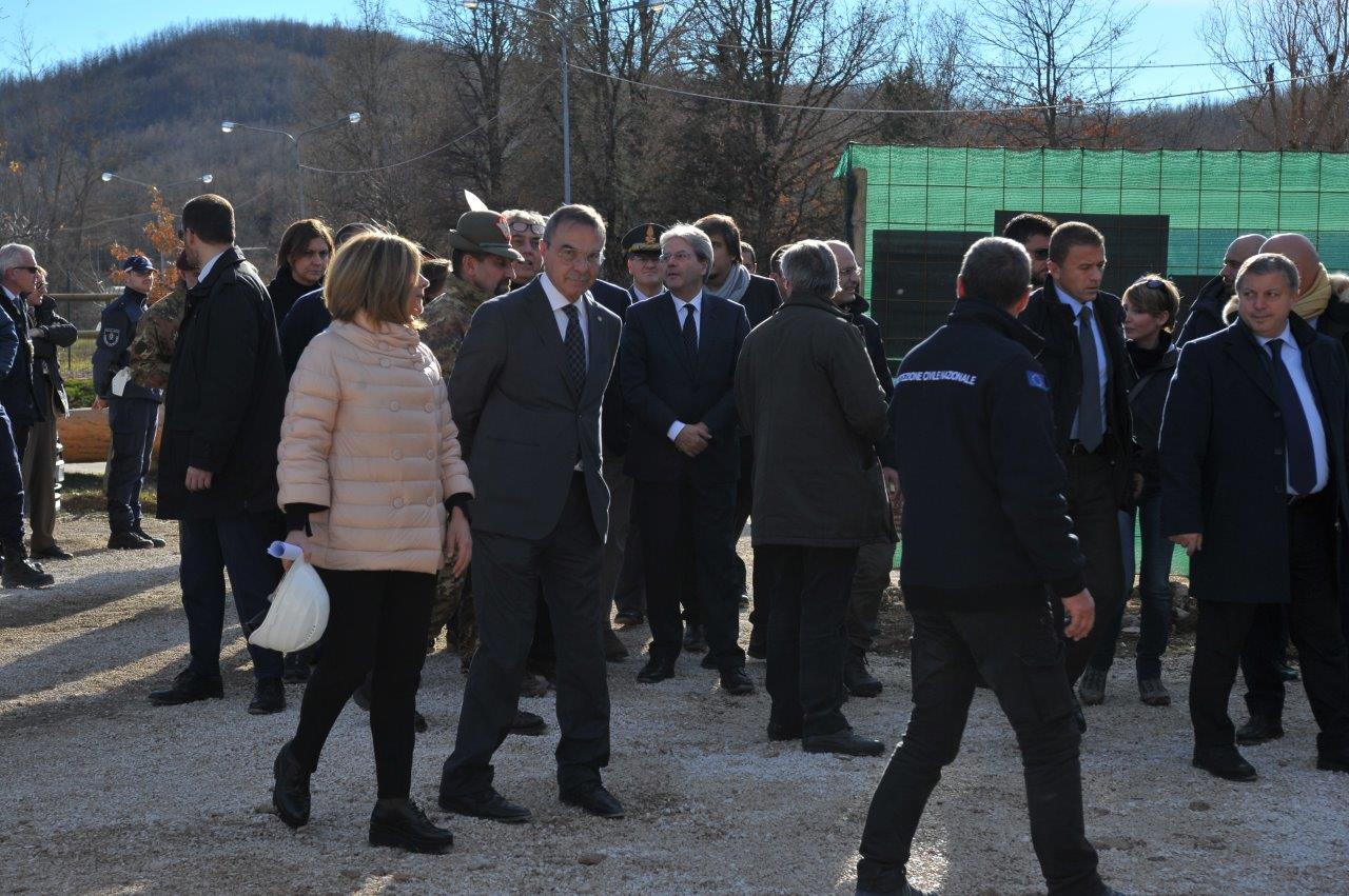 La visita al cantiere delle Soluzioni Abitative d’Emergenza, ha visto Gentiloni in compagnia del commissario alla ricostruzione Vasco Errani, del Capo Dipartimento della Protezione Civile, Fabrizio Curcio, del Presidente della Regione Lazio, Nicola Zingaretti, e del vescovo Domenico Pompili.
