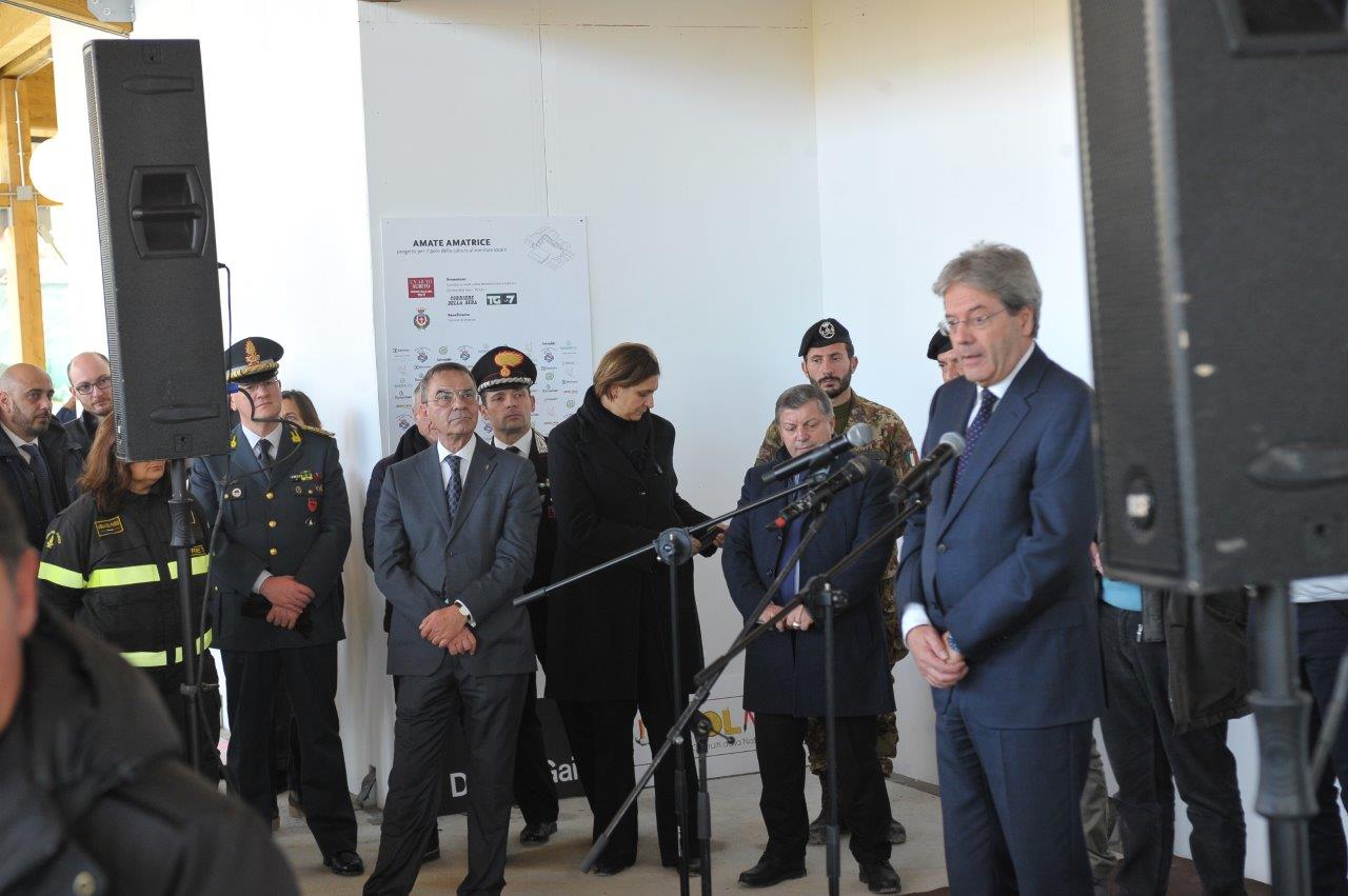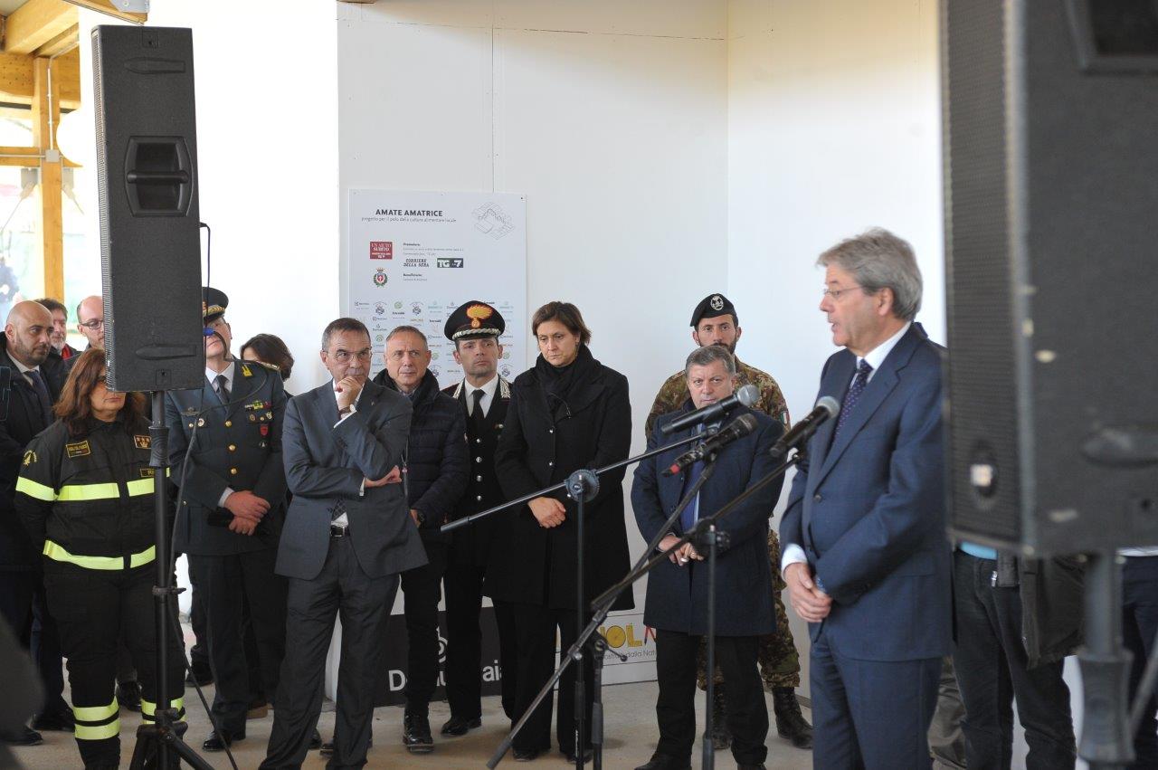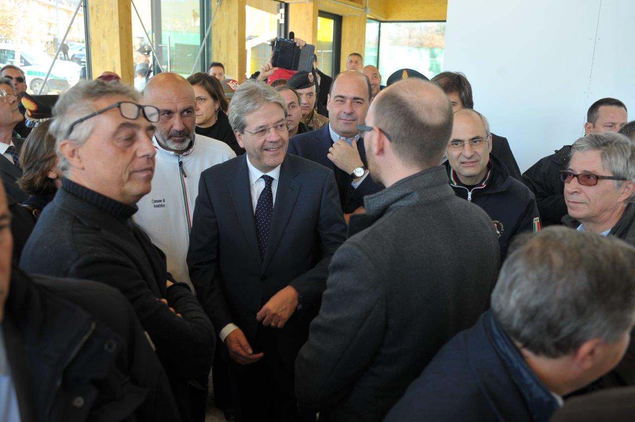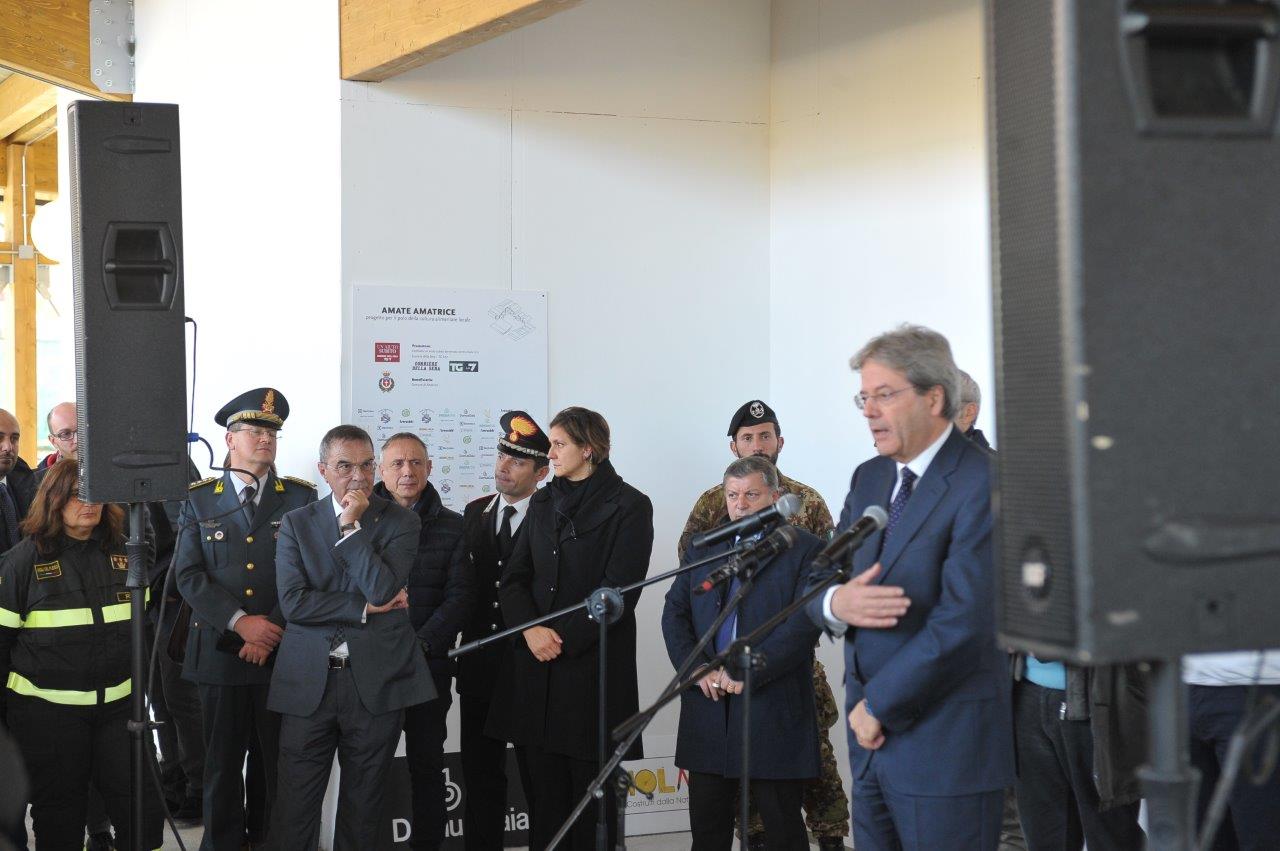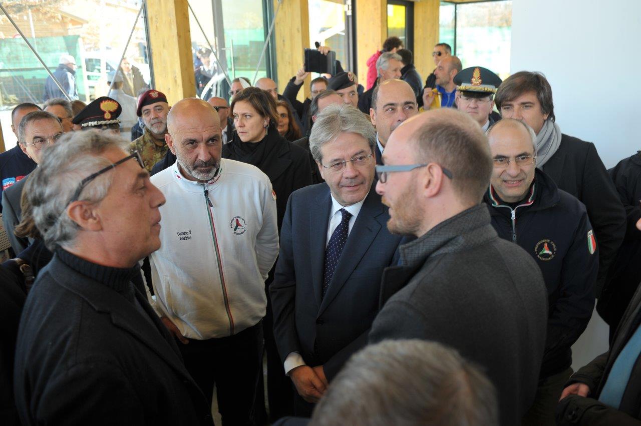 La visita al cantiere delle Soluzioni Abitative d’Emergenza, ha visto Gentiloni in compagnia del commissario alla ricostruzione Vasco Errani, del Capo Dipartimento della Protezione Civile, Fabrizio Curcio, del Presidente della Regione Lazio, Nicola Zingaretti, e del vescovo Domenico Pompili.