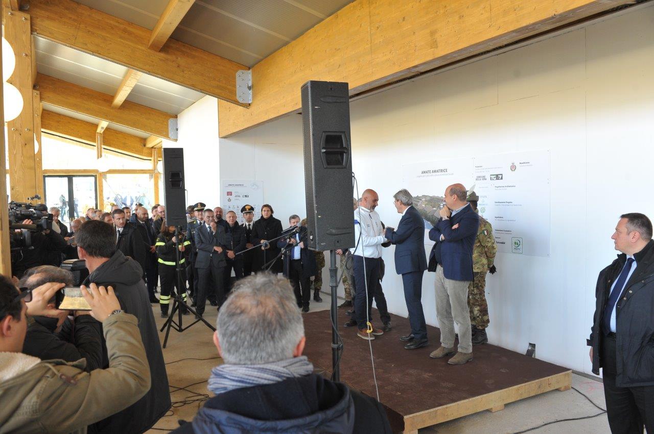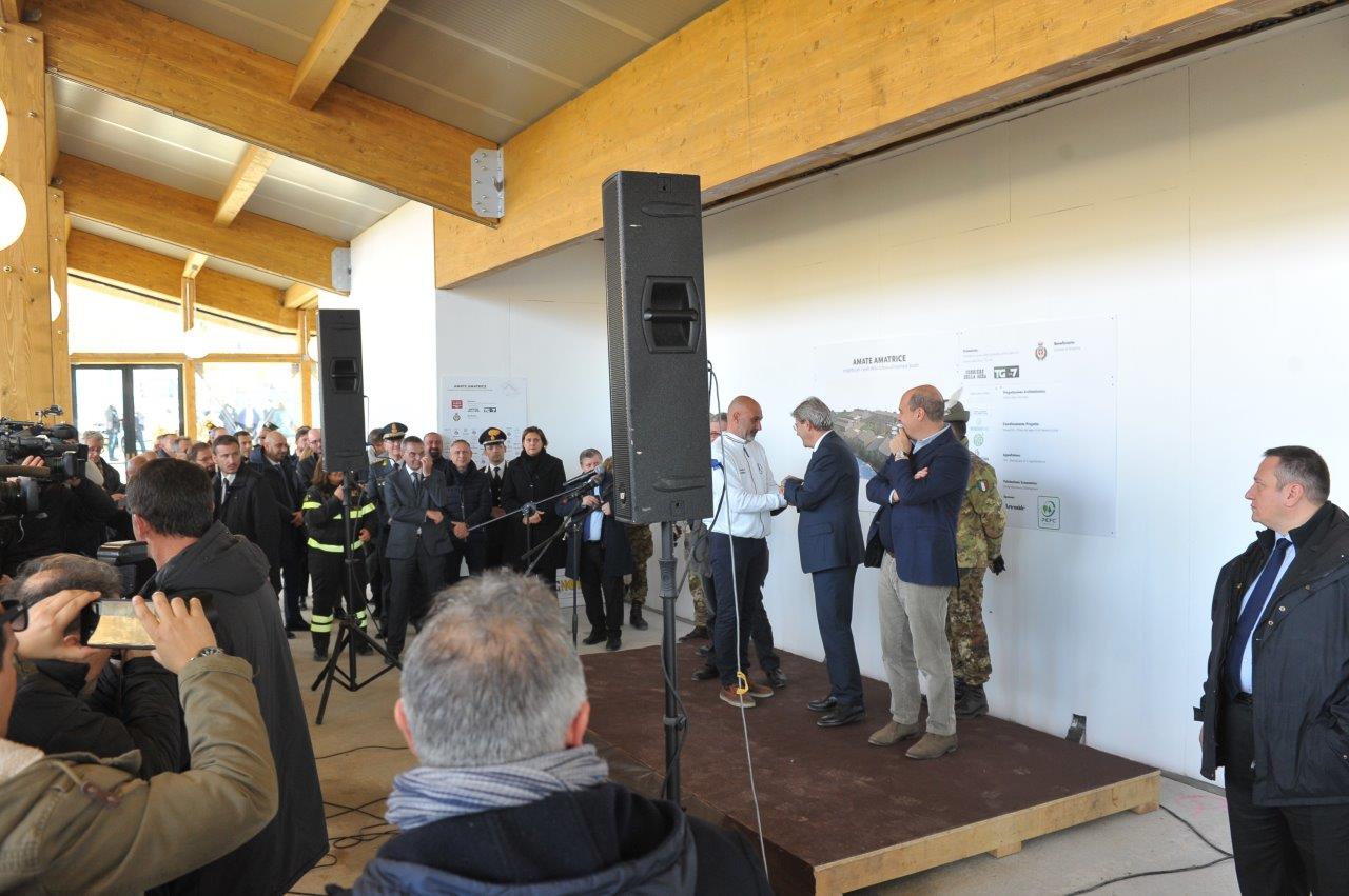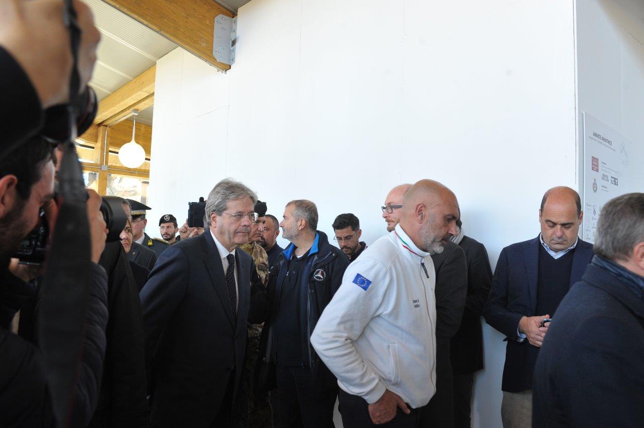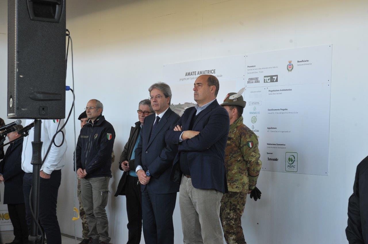 La visita al cantiere delle Soluzioni Abitative d’Emergenza, ha visto Gentiloni in compagnia del commissario alla ricostruzione Vasco Errani, del Capo Dipartimento della Protezione Civile, Fabrizio Curcio, del Presidente della Regione Lazio, Nicola Zingaretti, e del vescovo Domenico Pompili.