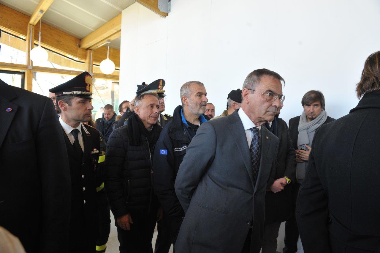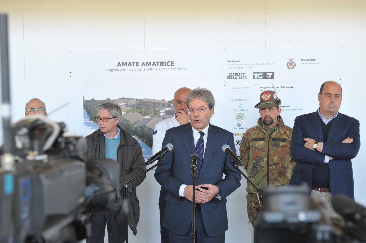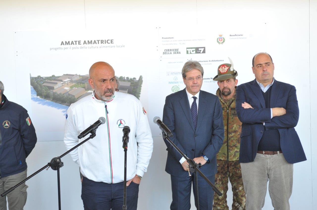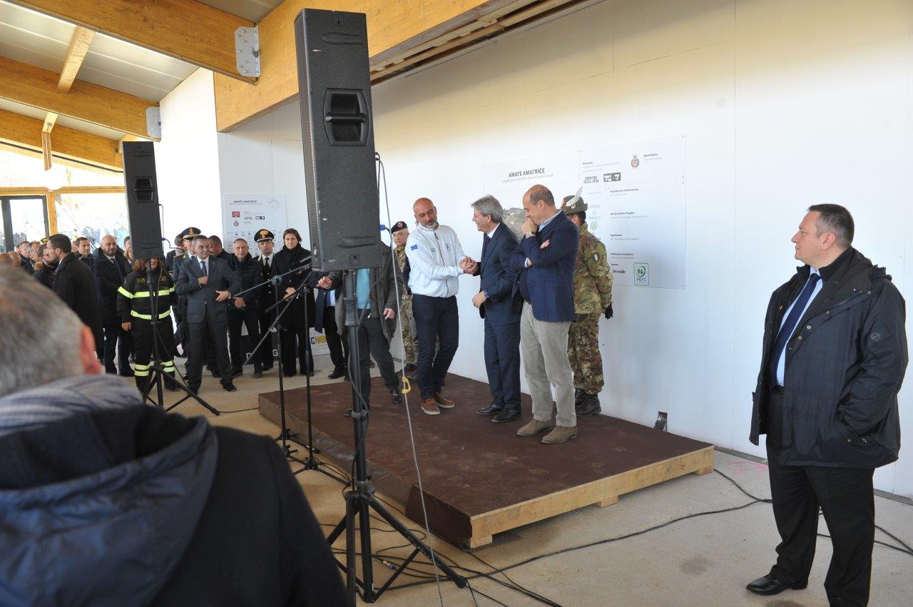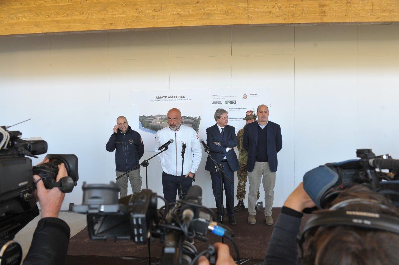 La visita al cantiere delle Soluzioni Abitative d’Emergenza, ha visto Gentiloni in compagnia del commissario alla ricostruzione Vasco Errani, del Capo Dipartimento della Protezione Civile, Fabrizio Curcio, del Presidente della Regione Lazio, Nicola Zingaretti, e del vescovo Domenico Pompili.