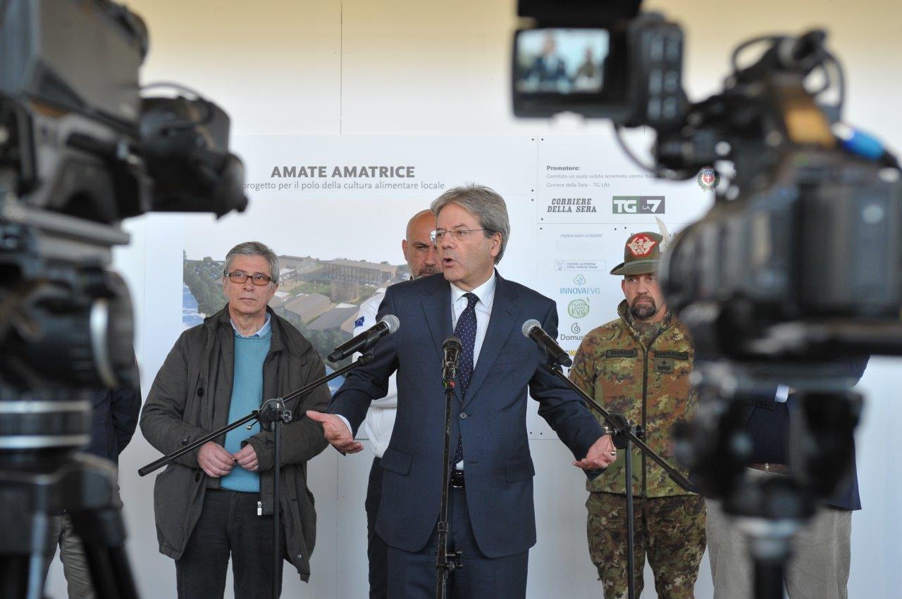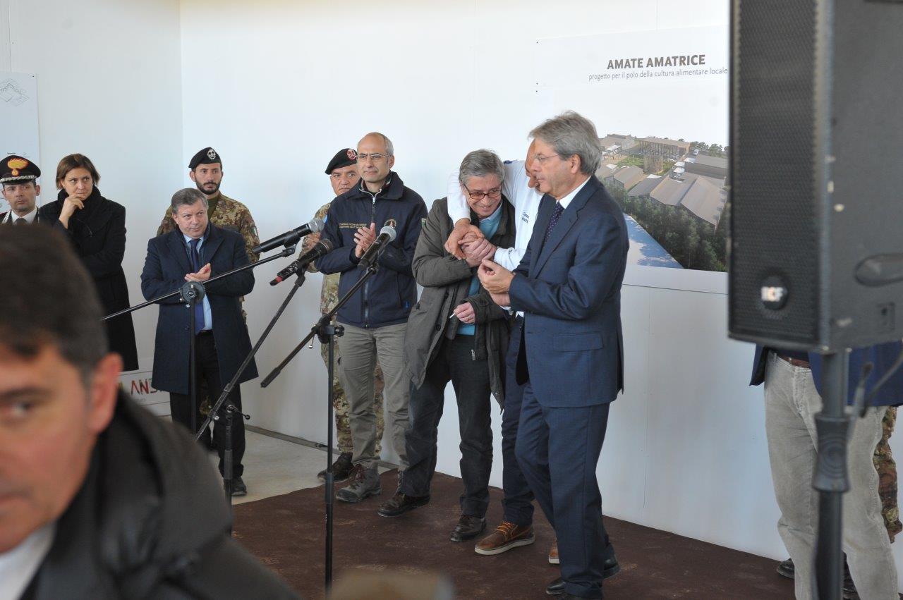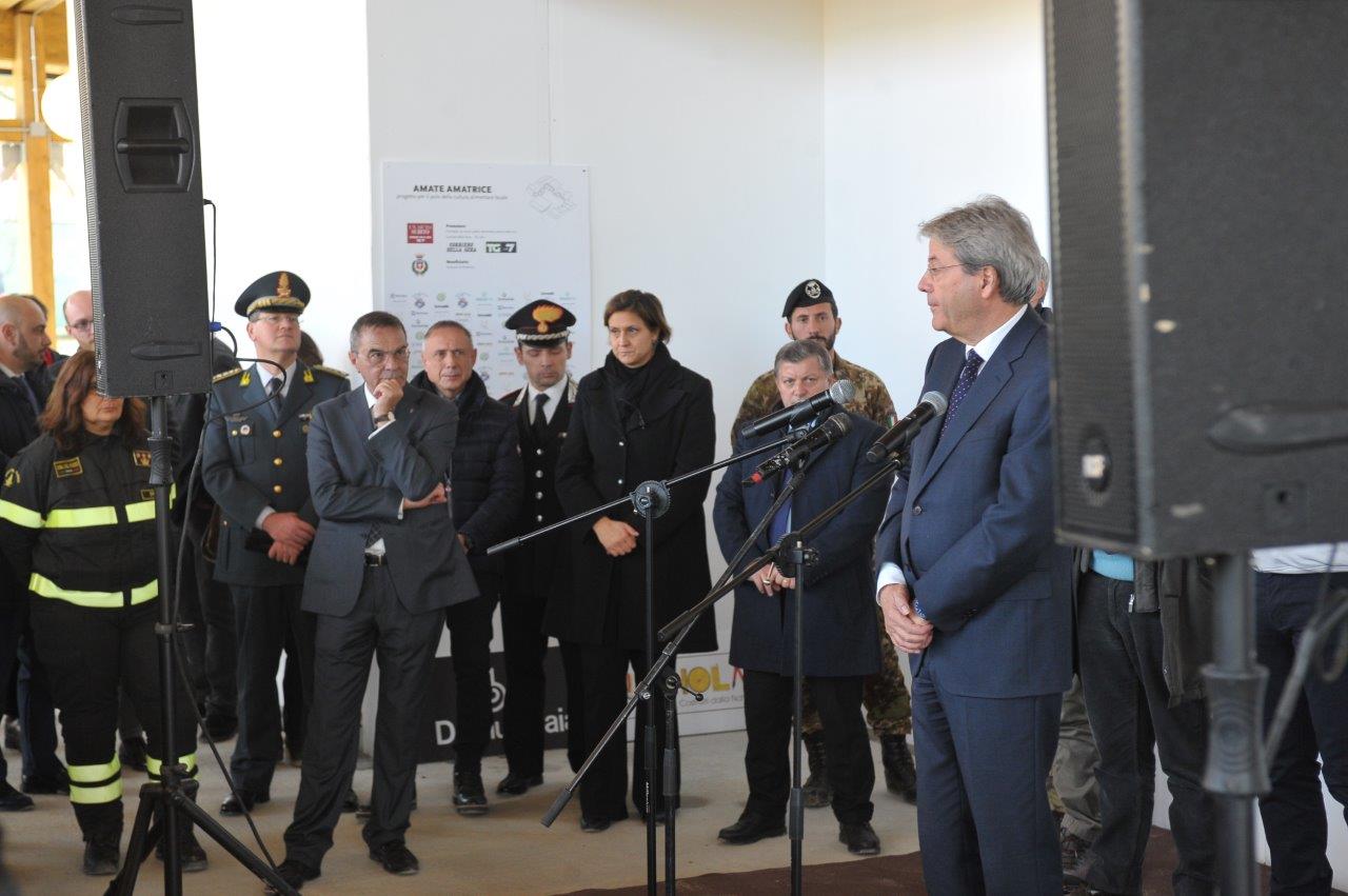 Un cantiere che il Presidente Gentiloni ha visitato subito dopo la preghiera al monumento per le 237 vittime amatriciane del terremoto, presso il quale ha sostato in raccoglimento in compagnia della moglie e del sindaco di Amatrice.