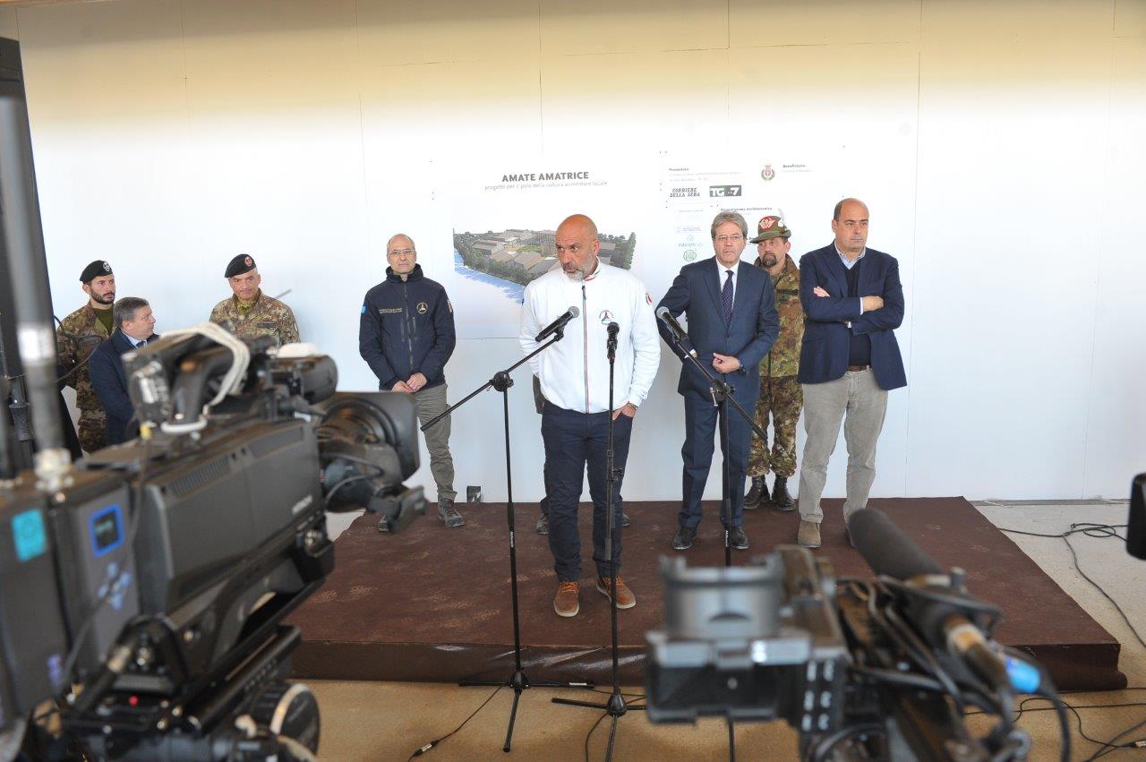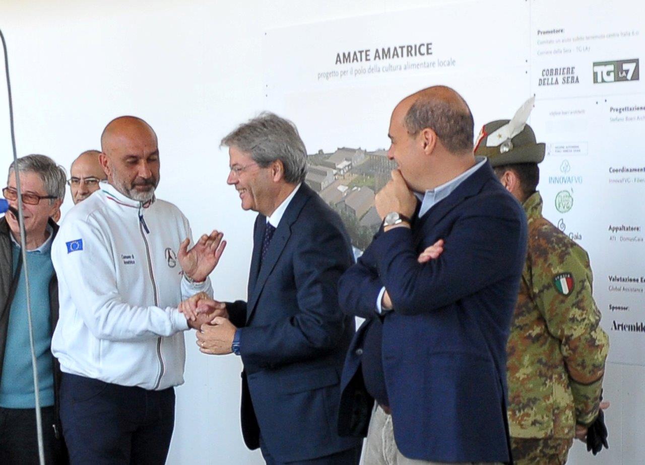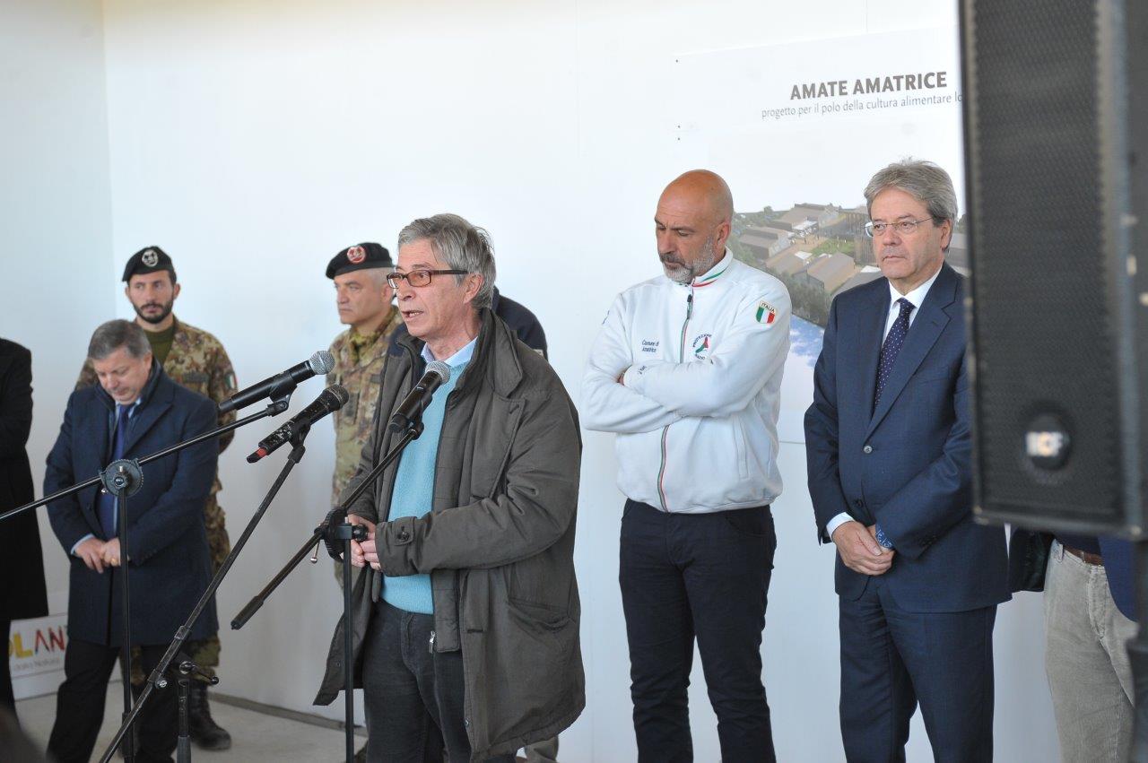 Un cantiere che il Presidente Gentiloni ha visitato subito dopo la preghiera al monumento per le 237 vittime amatriciane del terremoto, presso il quale ha sostato in raccoglimento in compagnia della moglie e del sindaco di Amatrice.