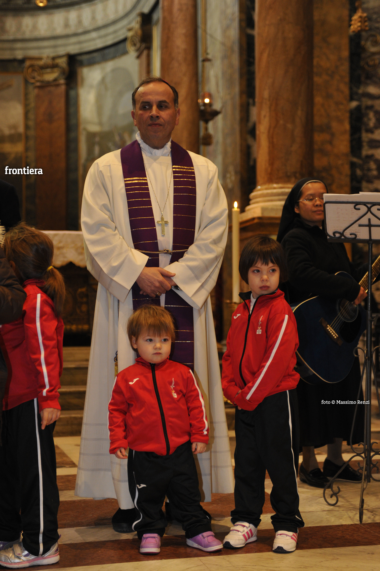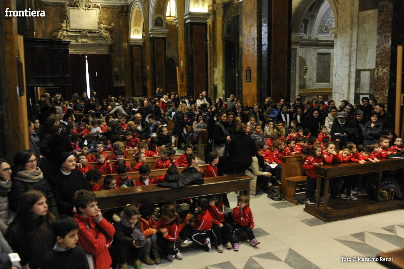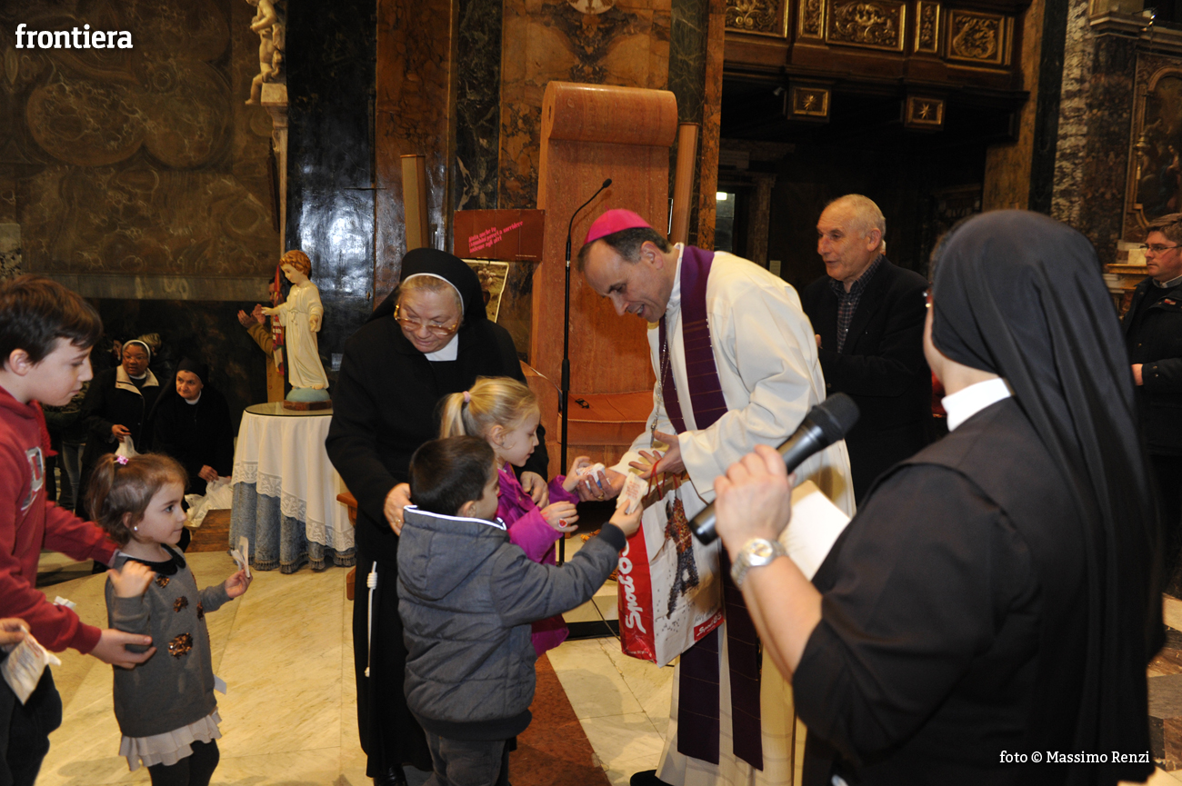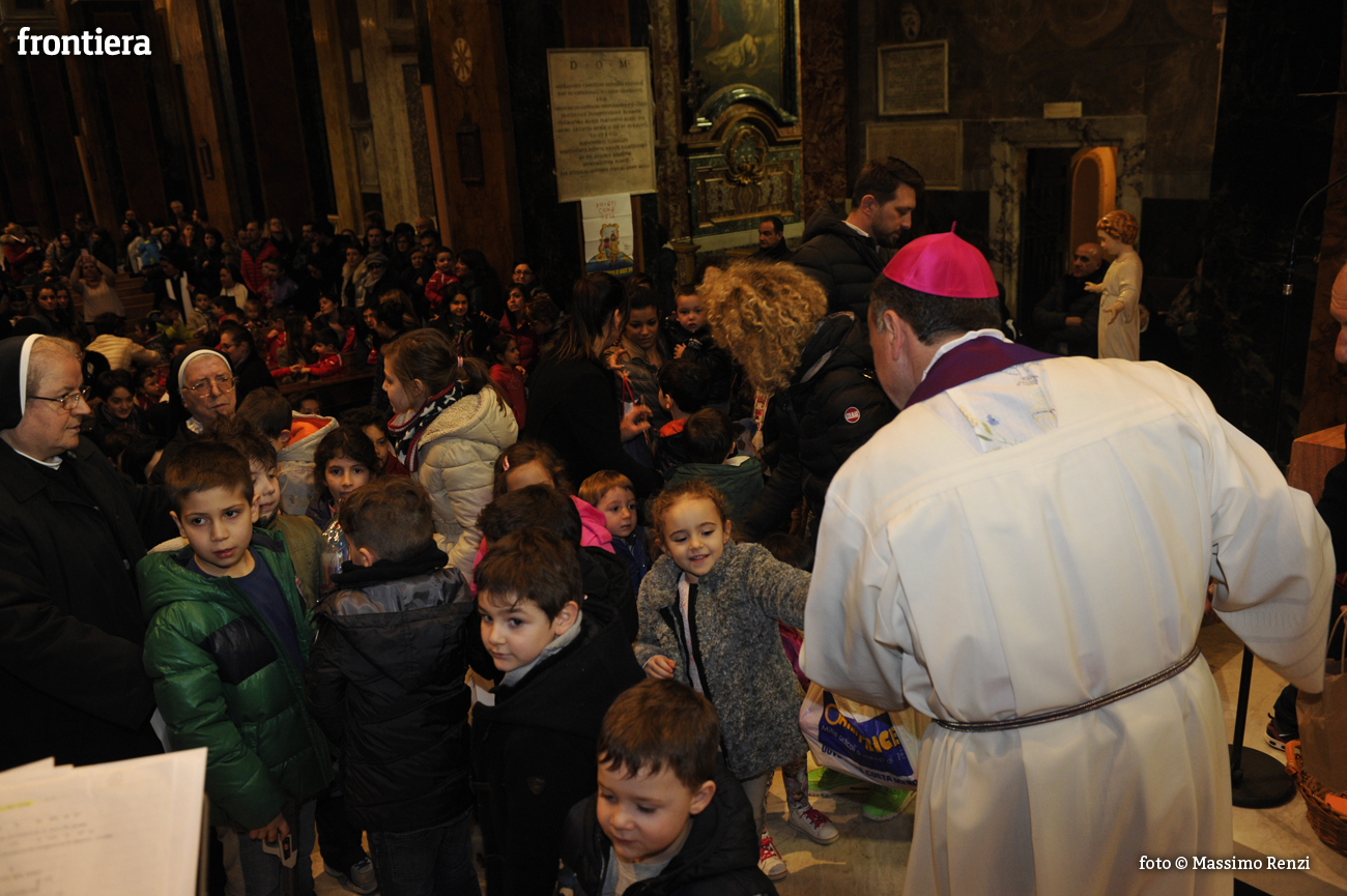 A loro le offerte in denaro e gli impegni di sostegno a distanza, mentre i pacchi con giocattoli e materiale didattico (che sarebbe troppo costoso spedire nel Terzo mondo) vengono indirizzati a bimbi bisognosi del posto. Li hanno presentati nelle mani del vescovo, accompagnati da un piccolo pensiero letto dinanzi a tutti, i gruppi delle scuole cattoliche (Istituto Bambin Gesù, Divino Amore, S. Lucia, Maestre Pie Venerini e Maraini di Rieti, oltre alla materna S. Chiara di Santa Rufina) e le rappresentanze di alcune parrocchie (Regina Pacis, Sacro Cuore, S. Michele Arcangelo).