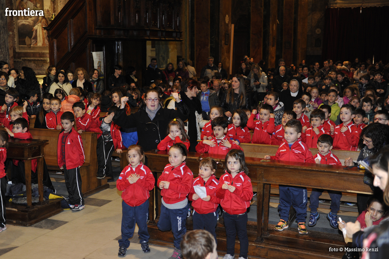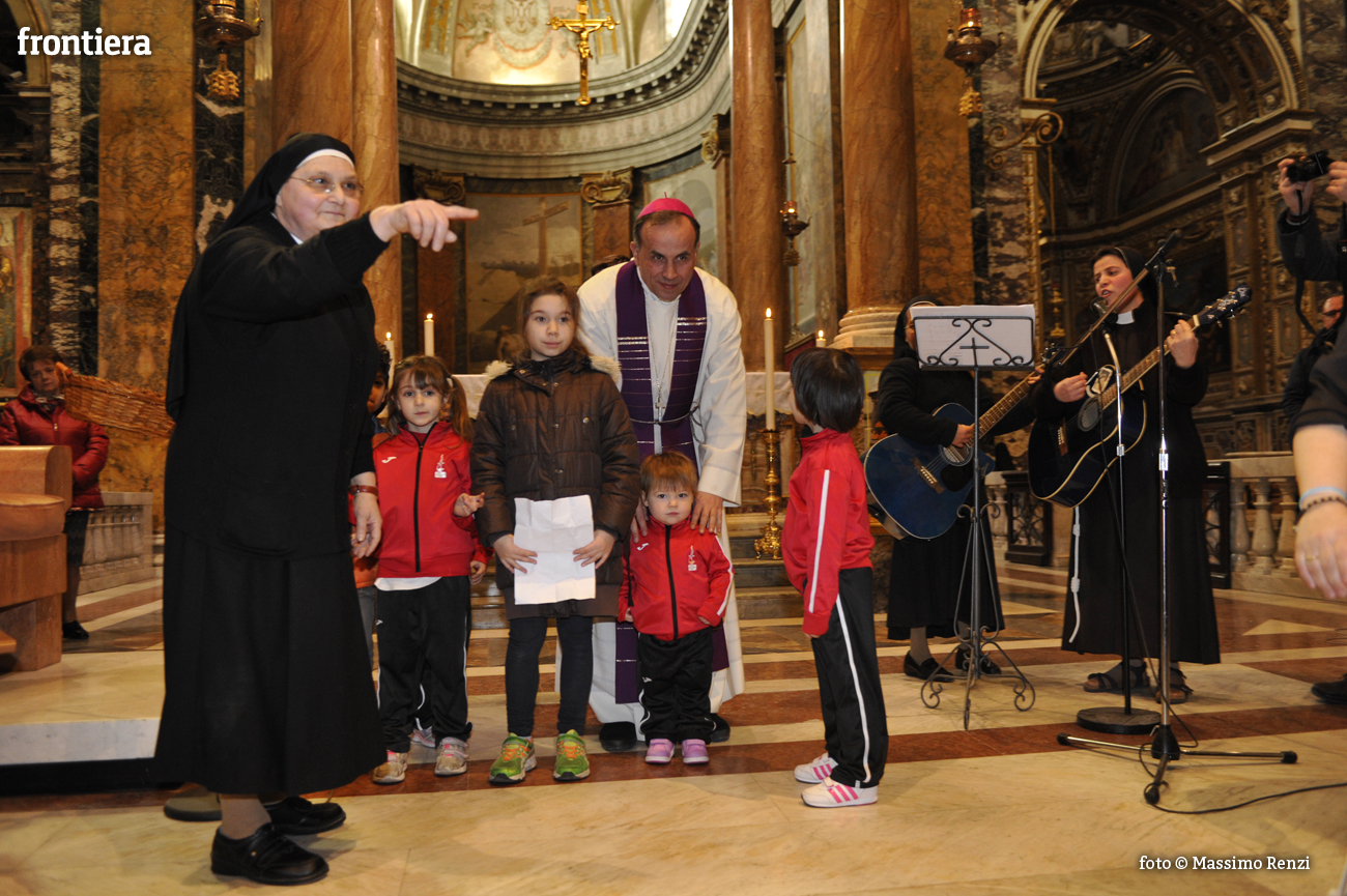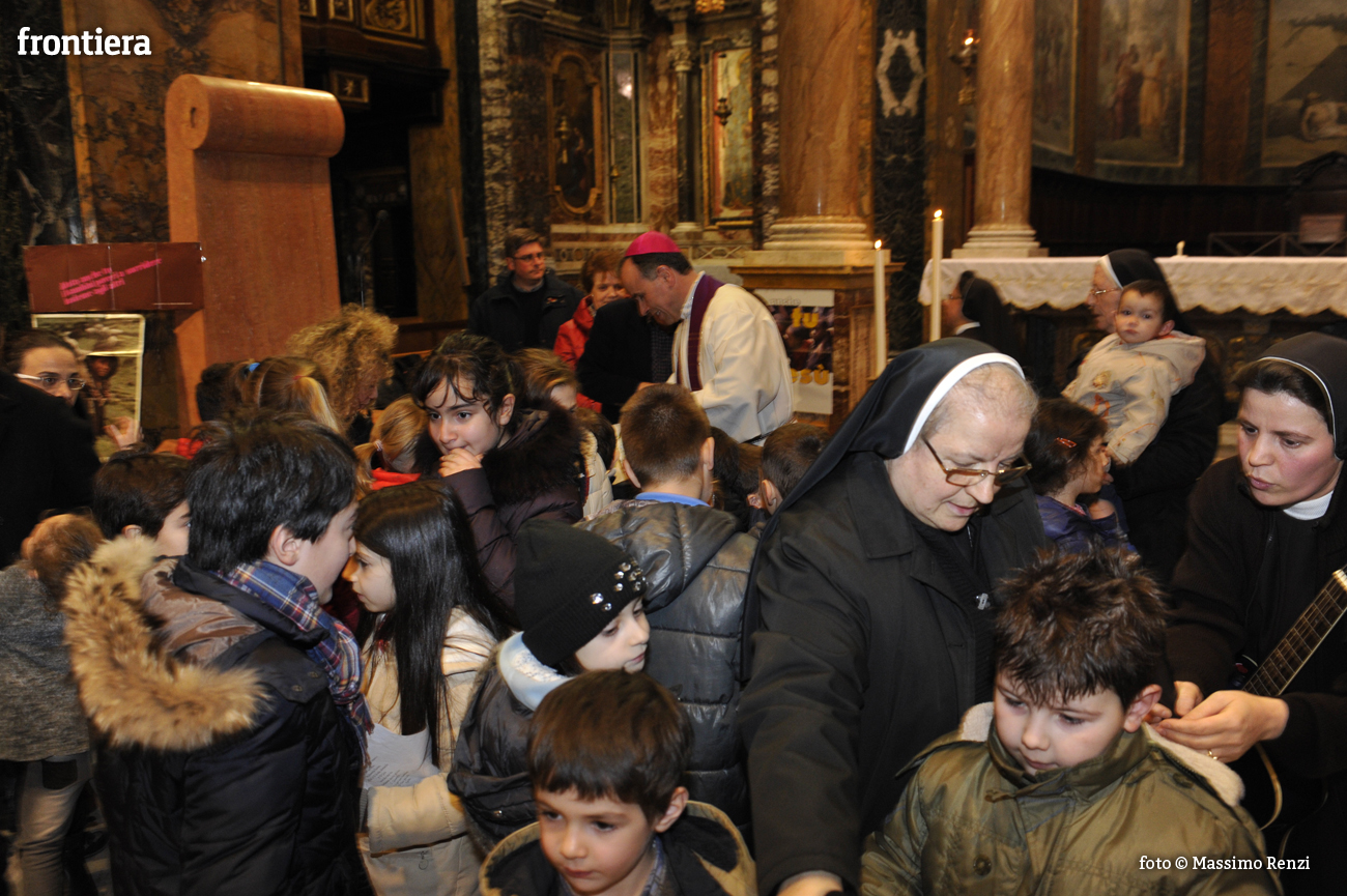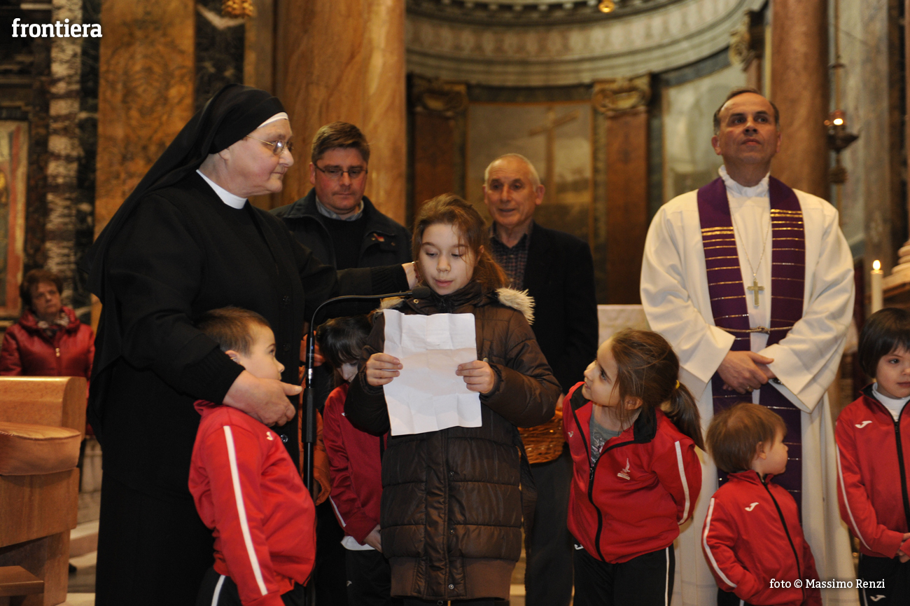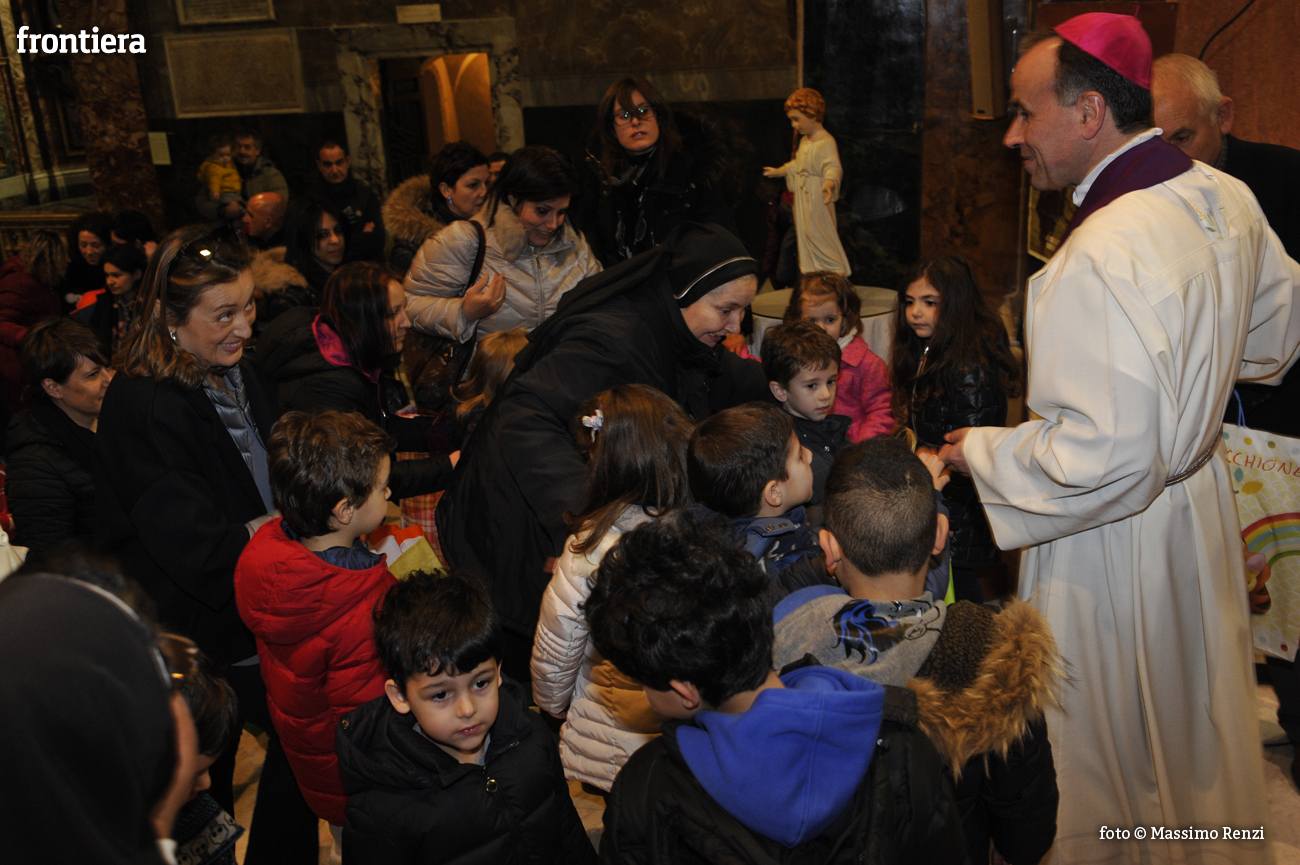 A loro le offerte in denaro e gli impegni di sostegno a distanza, mentre i pacchi con giocattoli e materiale didattico (che sarebbe troppo costoso spedire nel Terzo mondo) vengono indirizzati a bimbi bisognosi del posto. Li hanno presentati nelle mani del vescovo, accompagnati da un piccolo pensiero letto dinanzi a tutti, i gruppi delle scuole cattoliche (Istituto Bambin Gesù, Divino Amore, S. Lucia, Maestre Pie Venerini e Maraini di Rieti, oltre alla materna S. Chiara di Santa Rufina) e le rappresentanze di alcune parrocchie (Regina Pacis, Sacro Cuore, S. Michele Arcangelo).