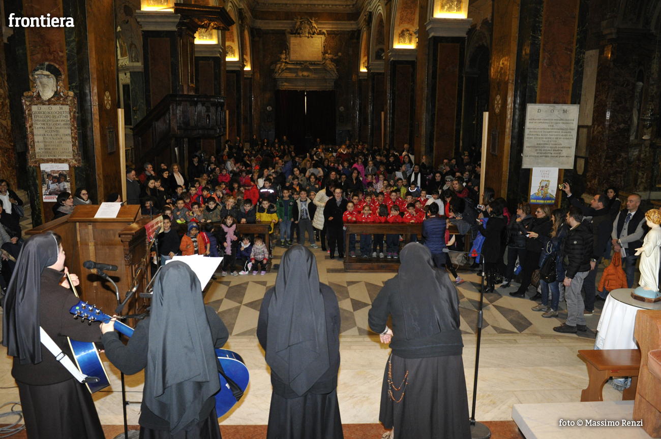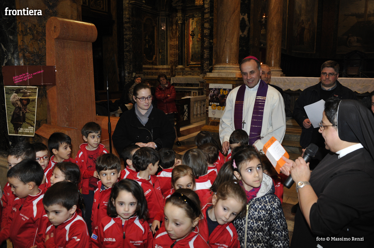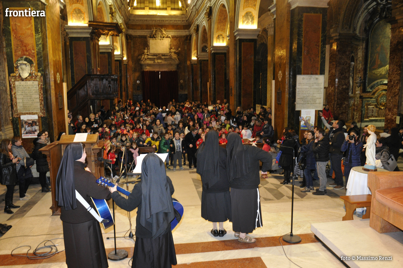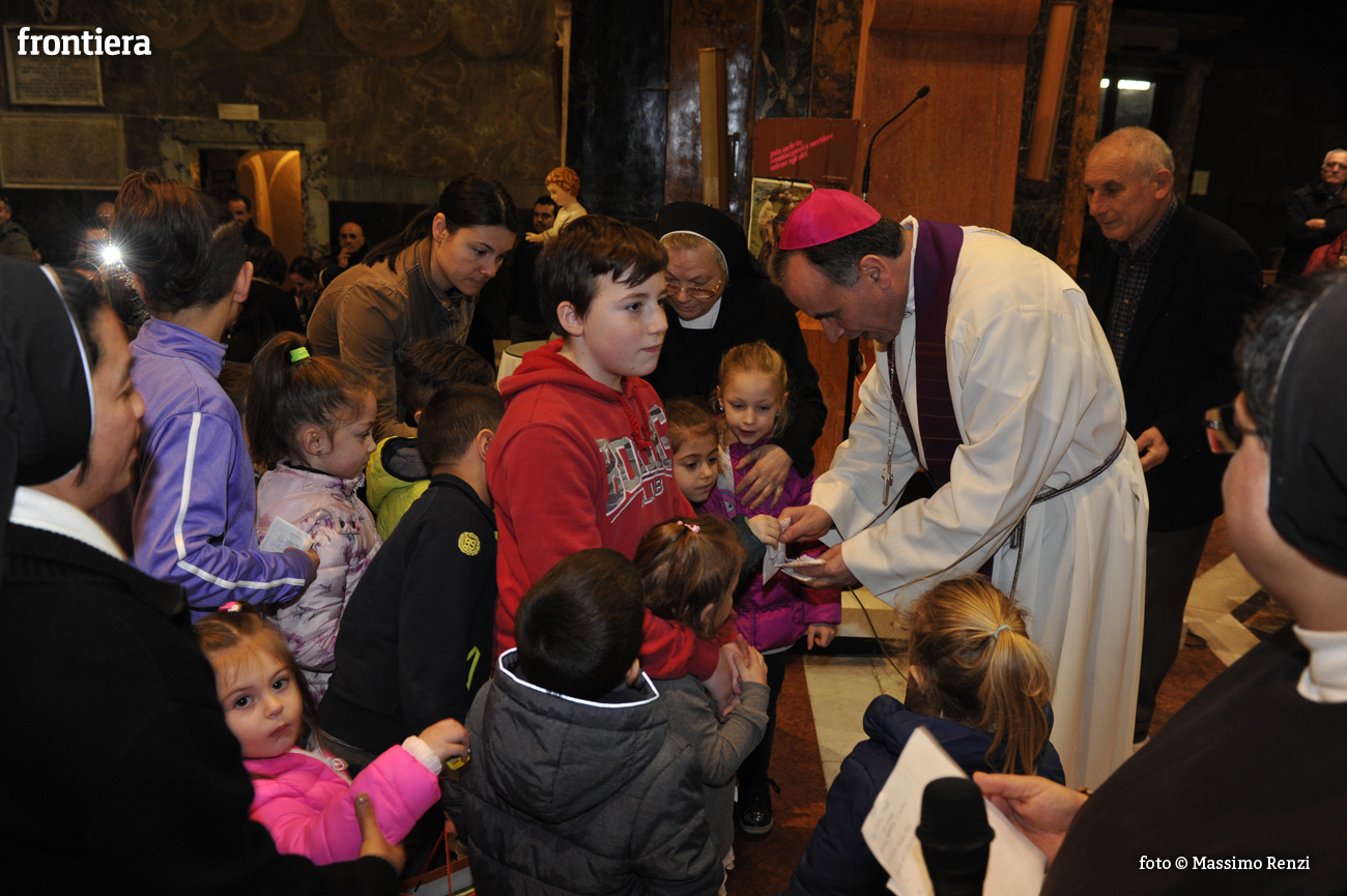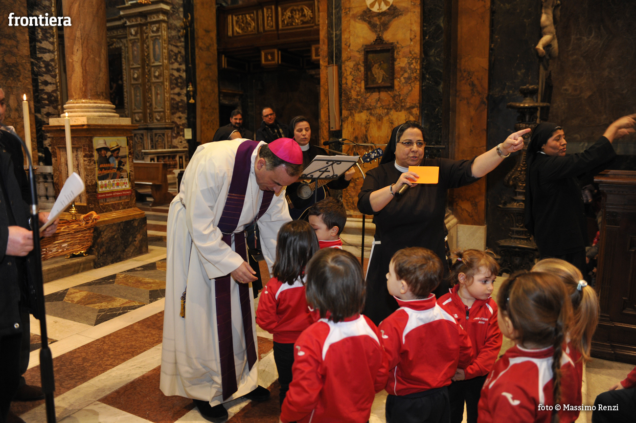 A loro le offerte in denaro e gli impegni di sostegno a distanza, mentre i pacchi con giocattoli e materiale didattico (che sarebbe troppo costoso spedire nel Terzo mondo) vengono indirizzati a bimbi bisognosi del posto. Li hanno presentati nelle mani del vescovo, accompagnati da un piccolo pensiero letto dinanzi a tutti, i gruppi delle scuole cattoliche (Istituto Bambin Gesù, Divino Amore, S. Lucia, Maestre Pie Venerini e Maraini di Rieti, oltre alla materna S. Chiara di Santa Rufina) e le rappresentanze di alcune parrocchie (Regina Pacis, Sacro Cuore, S. Michele Arcangelo).