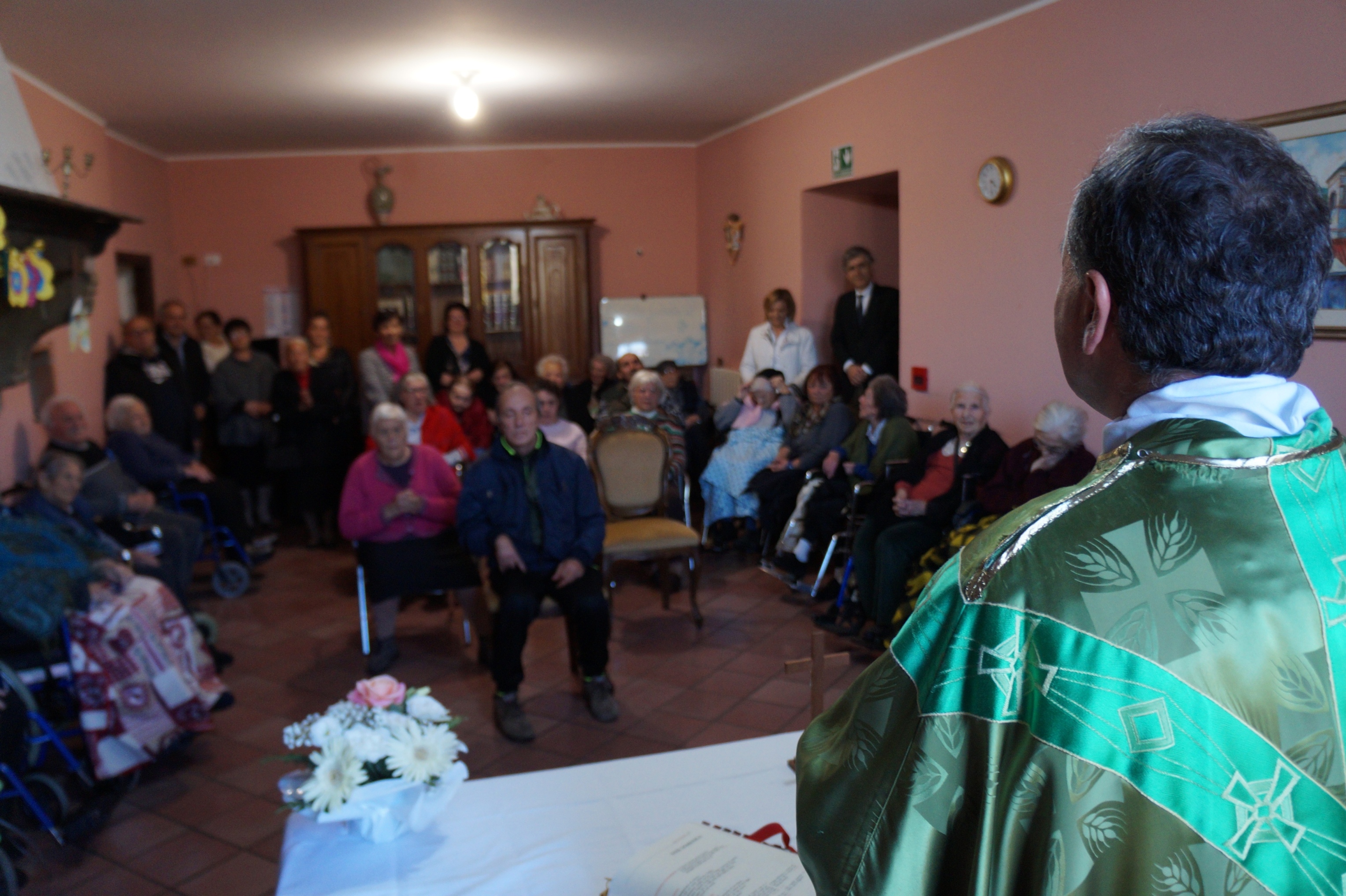 Dopo la messa il vescovo ha regalato a tutti i fedeli un rosario. Don Domenico ha poi partecipato al rinfresco e condiviso gioie, ricordi e dolori con gli anziani che, come quando si sta davanti ad un camino acceso d’inverno, portano storie e consiglio a chi si ferma anche solo un po’ con loro.