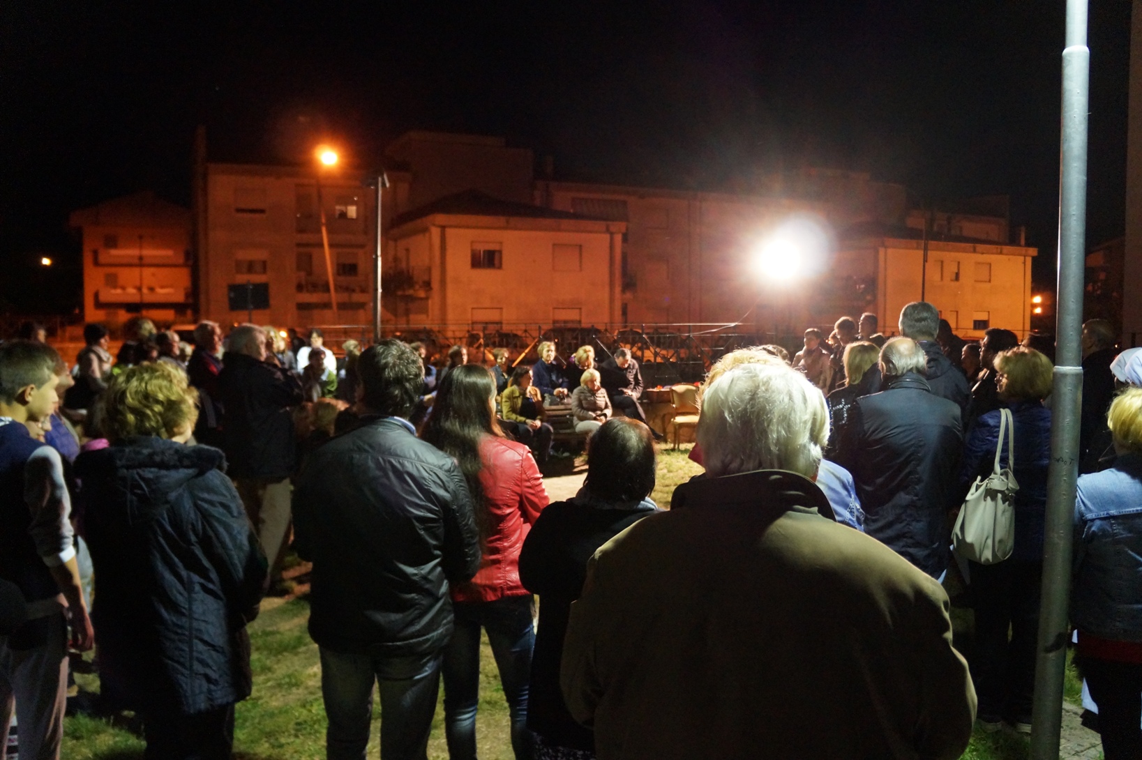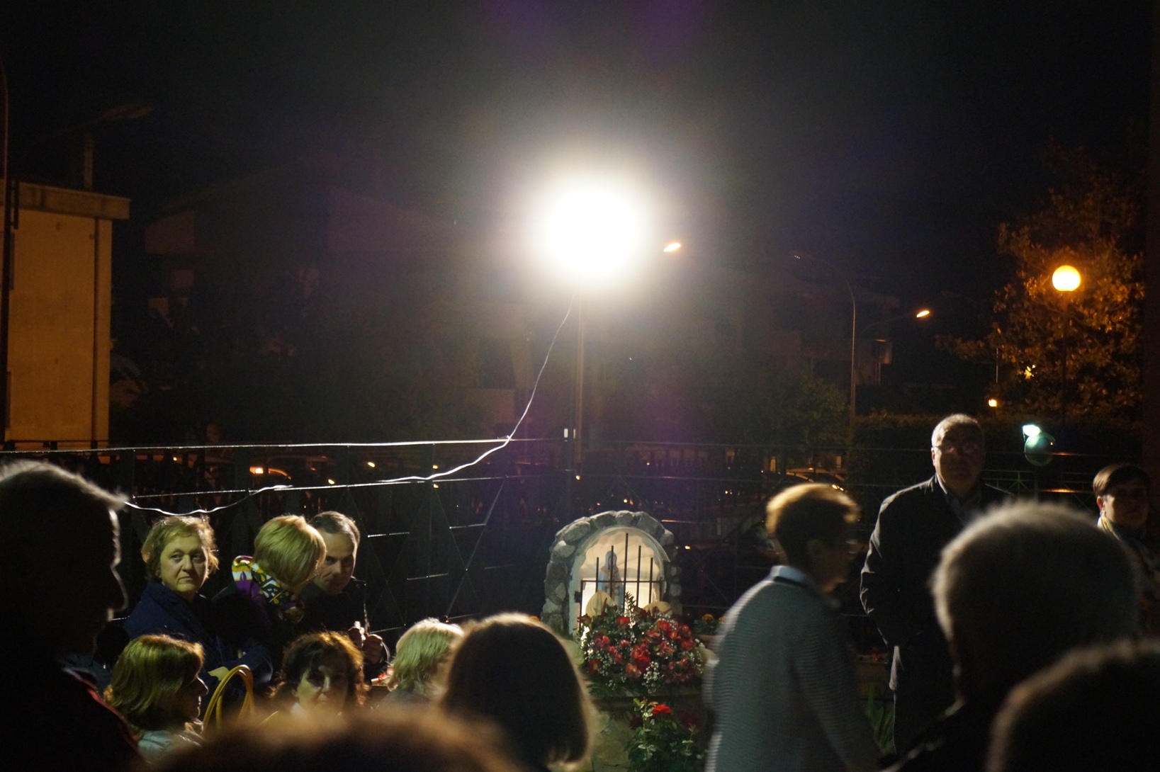 Al termine della preghiera il vescovo ha ricordato come durante le Nozze di Cana (uno dei Misteri luminosi) «Maria è in azione» quando chiede a Gesù di risolvere il problema della fine del vino. «È come se lo generasse alla vita di Messia». Poi è tornato sul tema dello sguardo: «Maria ci dimostra che lo sguardo verso Dio non distoglie dalla realtà». E lo stesso vale per la preghiera «che rende più capaci di capire e più coraggiosi». Le parole amplificate provocavano un’eco nello spazio aperto ma possiamo immaginare che anche nell’animo dei presenti quelle stesse parole abbiano lasciato un’eco duratura.