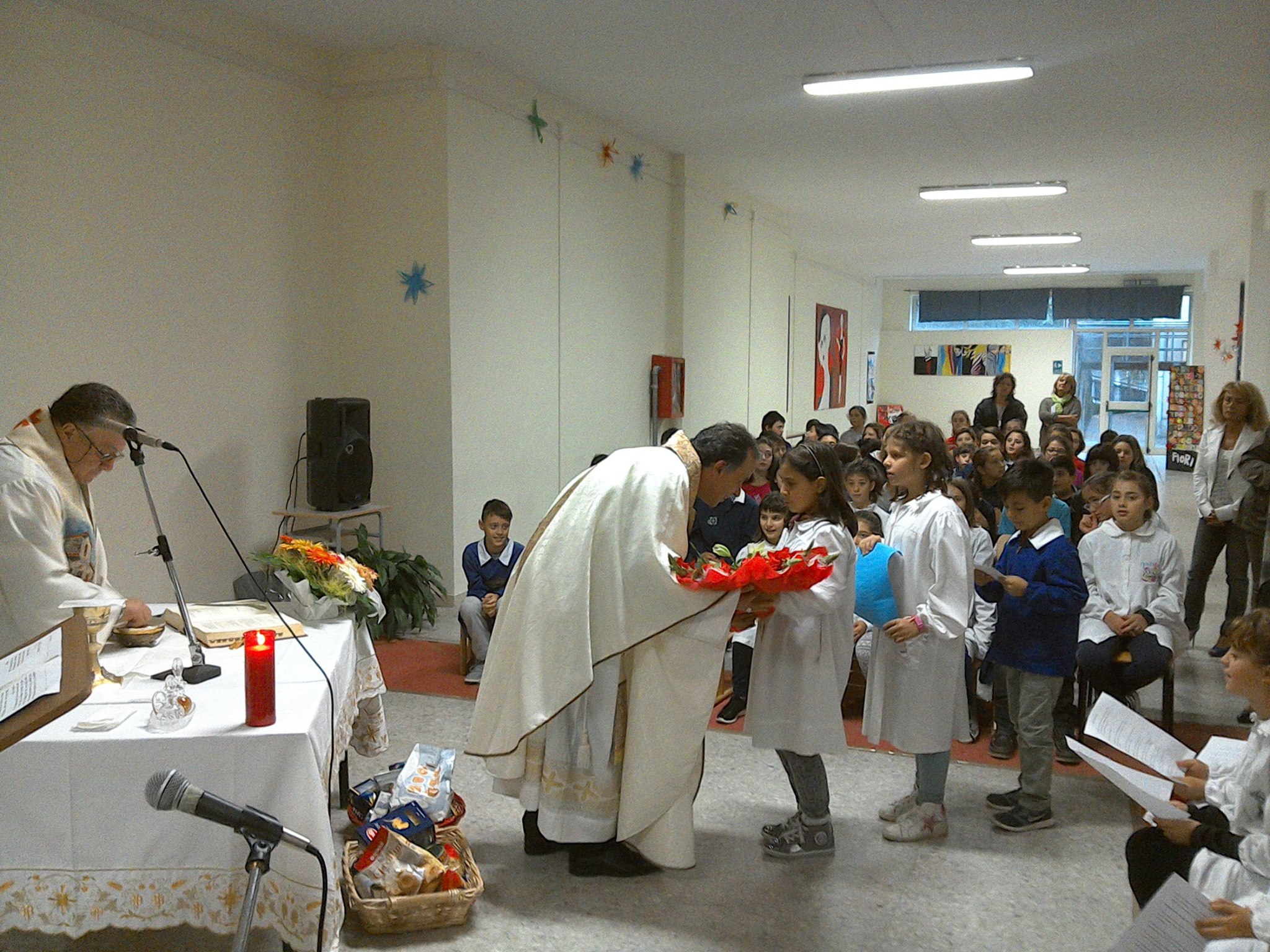 Messa alla scuola Giovanni Pascoli per l’inizio dell’anno scolastico per il vescovo Pompili.