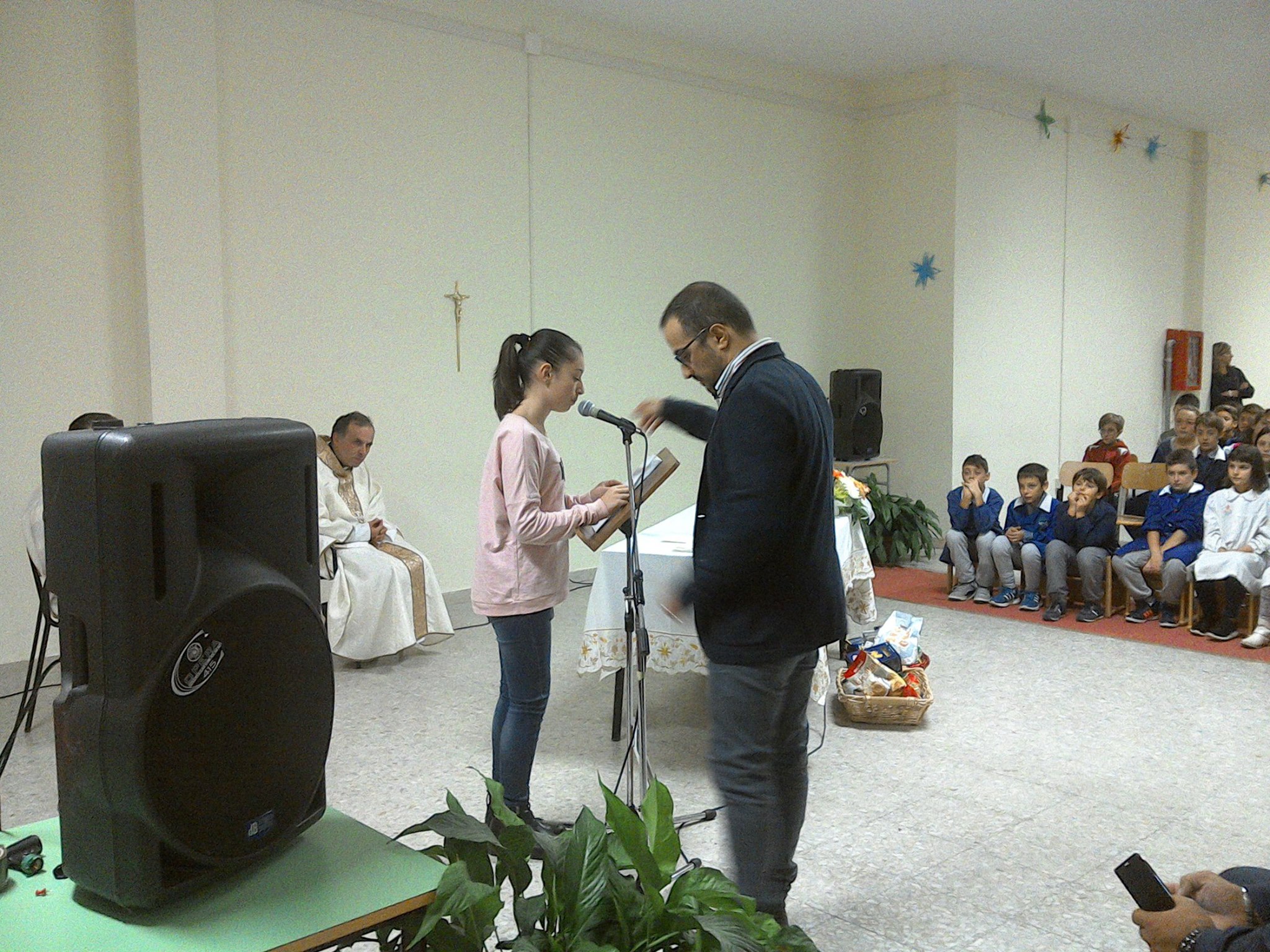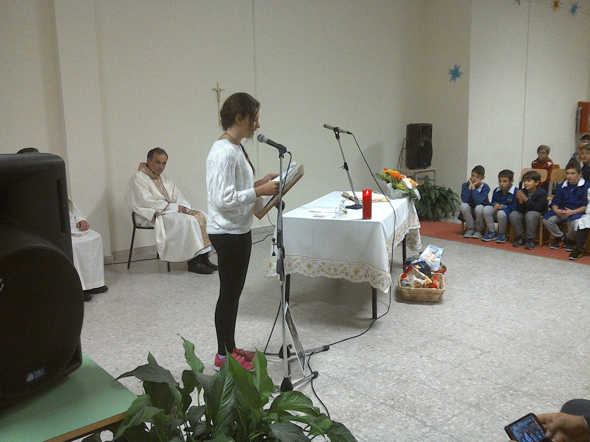 «Collodi si sarebbe ispirato proprio a questa figura scostante, collerica, vendicativa per le sue avventure di Pinocchio. Di chi è simbolo Giona? Del credente che non accetta Dio che è misericordioso e lento all’ira e che non distrugge la grande città di Ninive. Al contrario di Giona che se ne infischia di tutta quella gente e si intenerisce solo per una pianticella di ricino che nella calura gli fa ombra e lo ristora. Giona siamo noi quando ci guardiamo allo specchio e ci scopriamo distratti, presi da noi stessi, incuranti di quello che accade fuori dal nostro giro. Il contrario di Giona è Maria, la madre di Gesù che risponde all’angelo: ”Eccomi!”. Cioè ci sono, sono pronta, sono a disposizione e così comincia la storia della salvezza a beneficio di tutti» ha spiegato don Domenico che ai bambini ha chiesto: «Che cosa volete diventare da grandi? Dipende se seguirete Giona o Maria?»