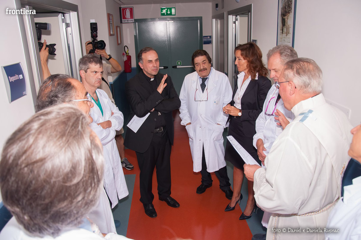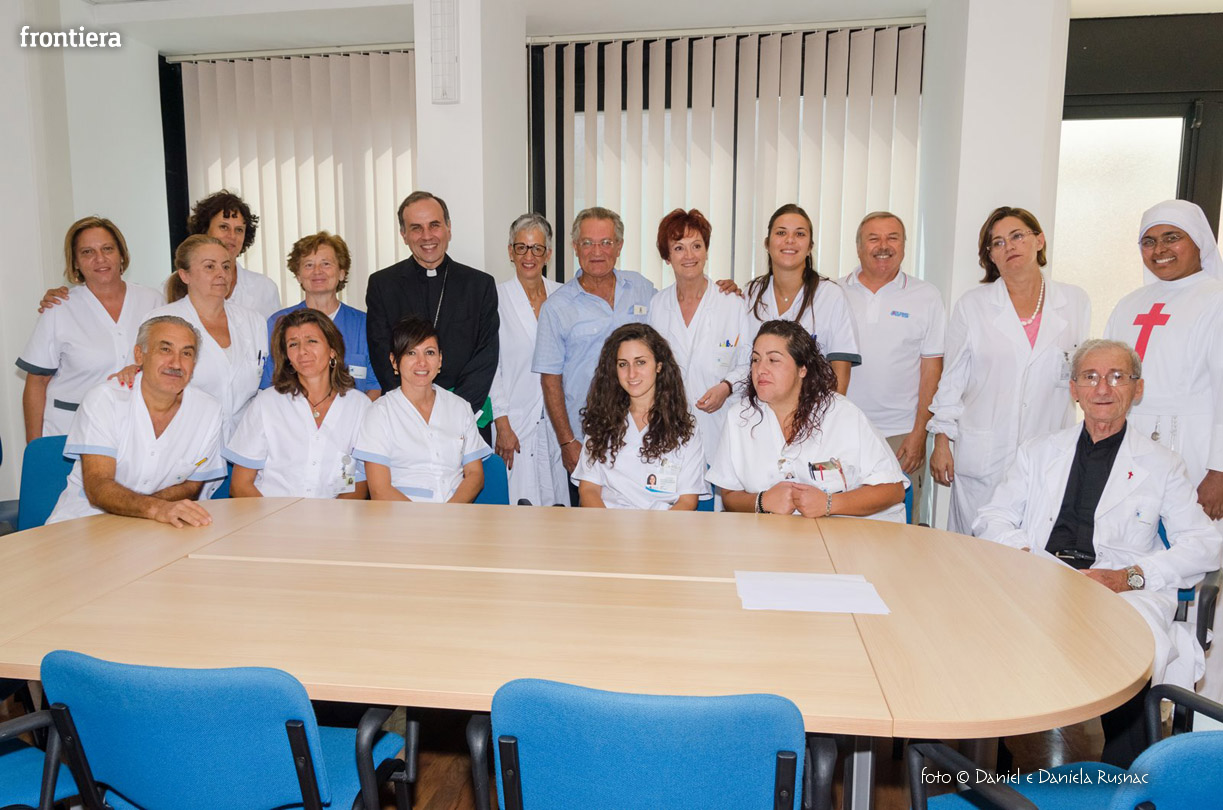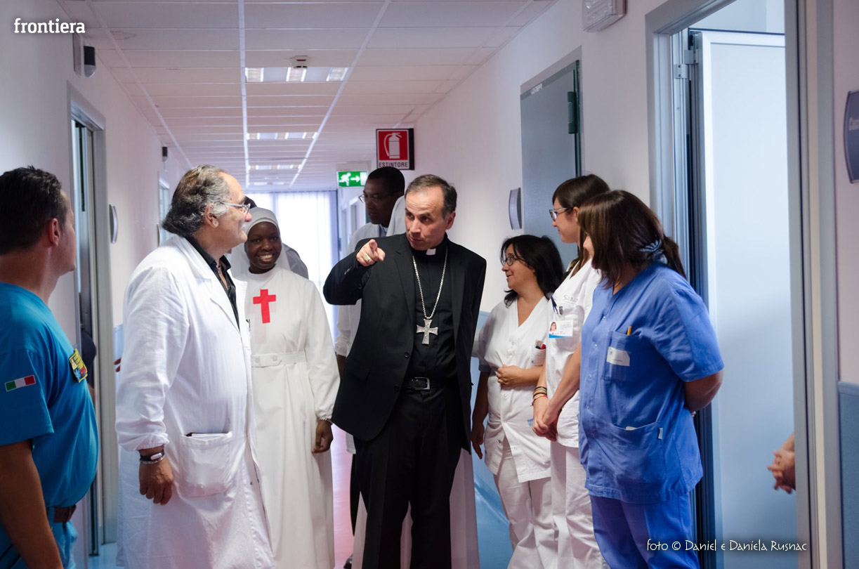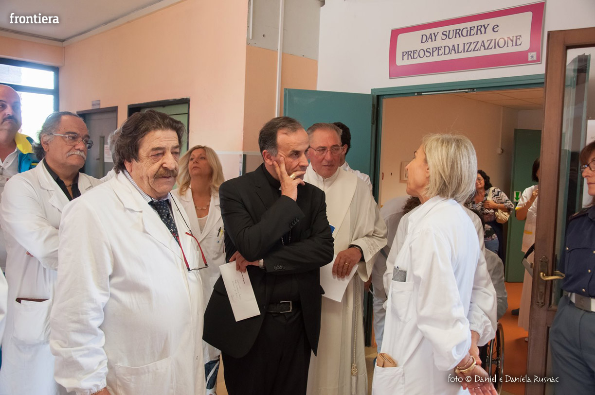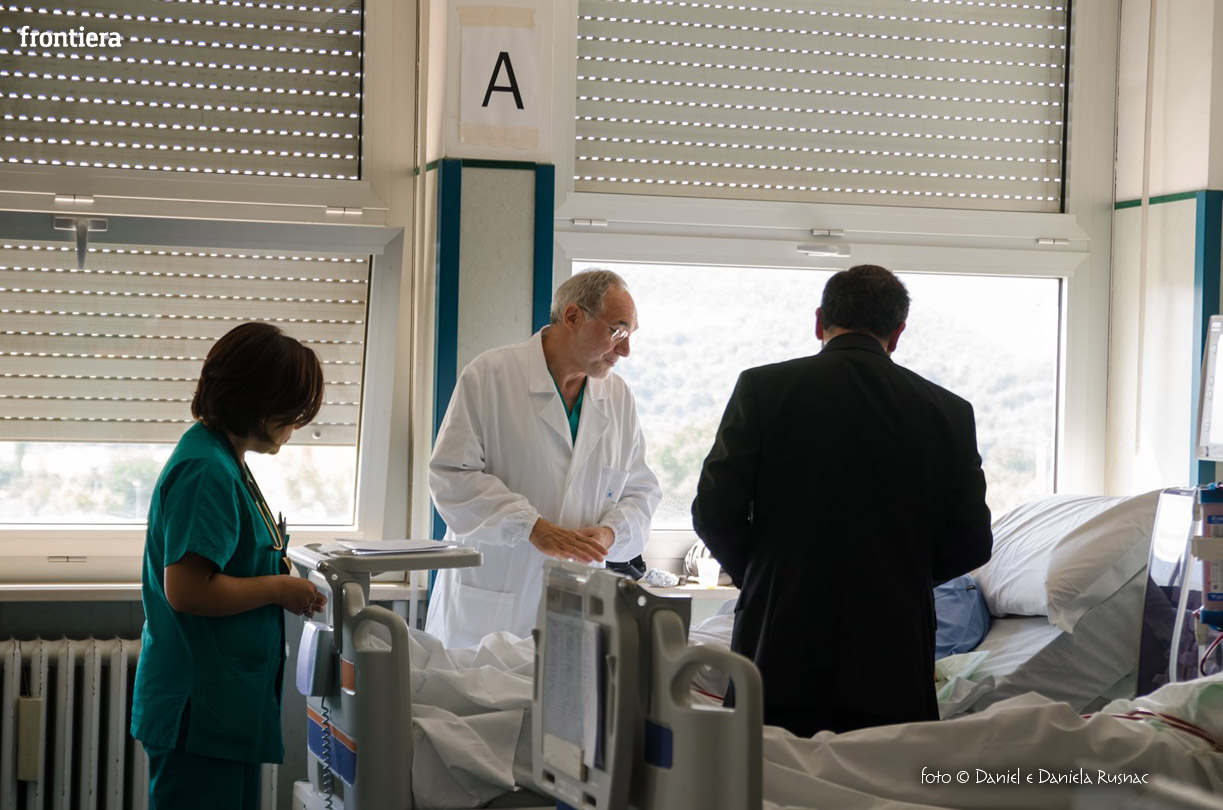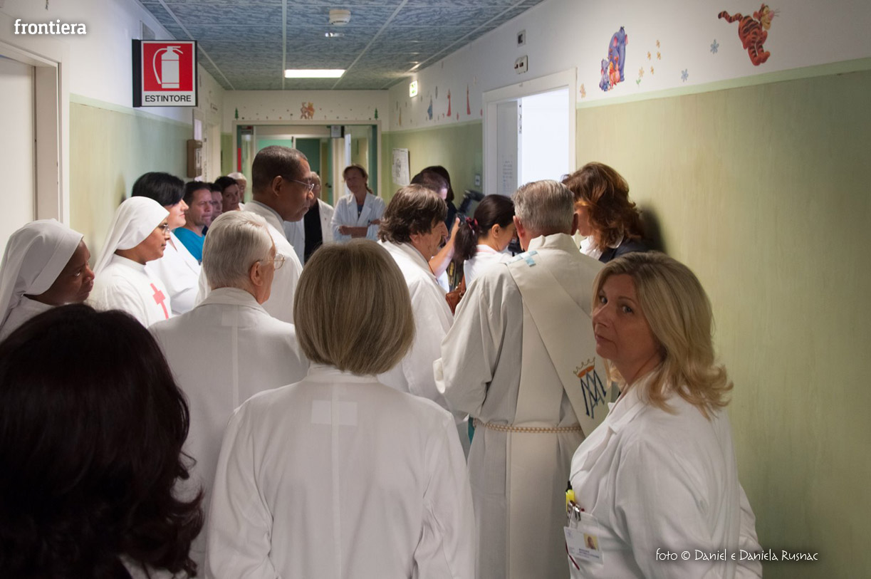 Un momento di preghiera che ha preceduto la visita pastorale ai malati ricoverati al San Camillo de Lellis. Un passaggio nei vari reparti «di indicibile tenerezza» – per usare le parole del diacono Nazzareno Iacopini, responsabile di quella che il vescovo ha chiamato la “Pastorale della Cura” – che ha visto il presule entrare a contatto con le realtà di Emodinamica-Utic, Dialisi, Oncologia, Pediatria, Week Surgery, Ortopedia, Centro trasfusionale e Radioterapia.